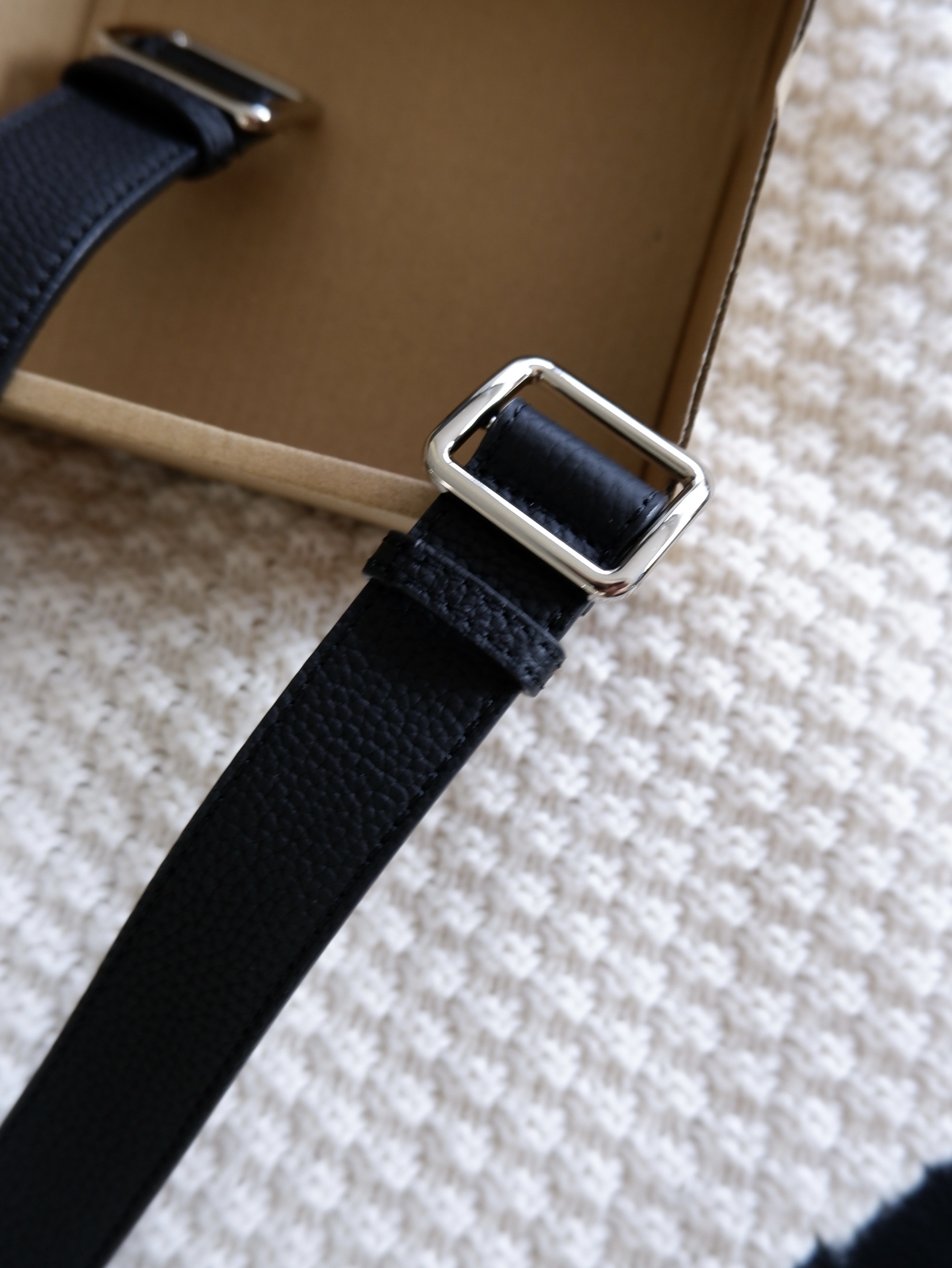 日字形带扣,粗旷的大荔枝纹皮质带条。