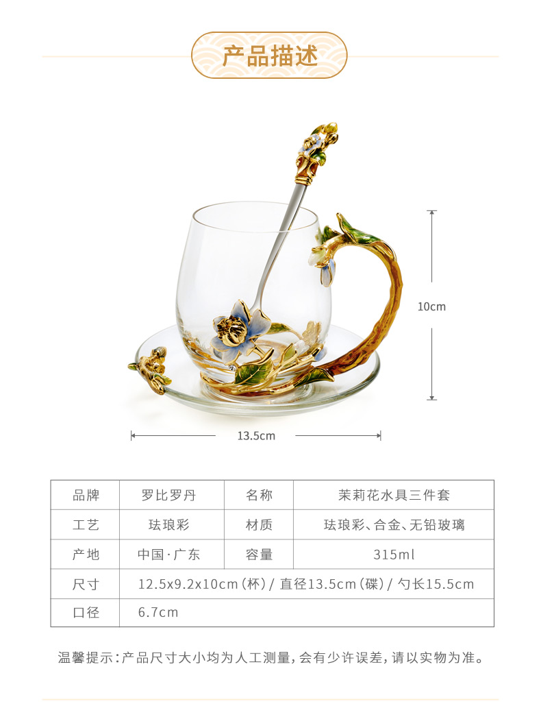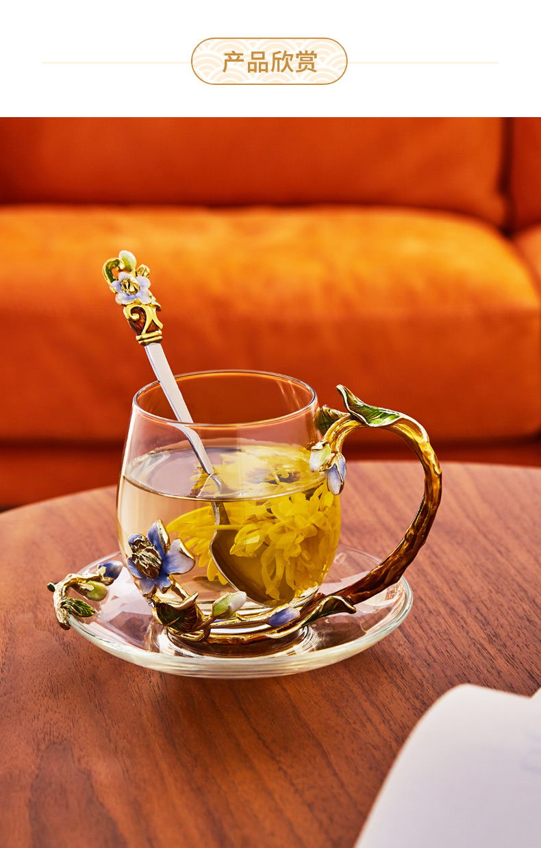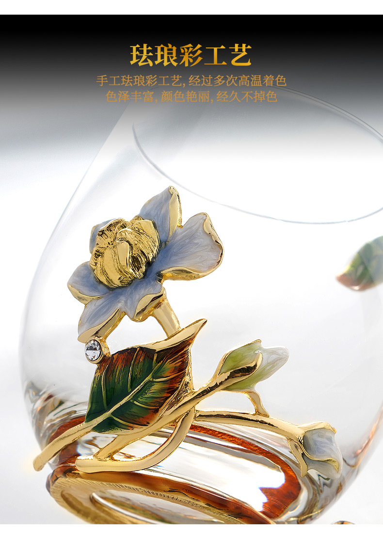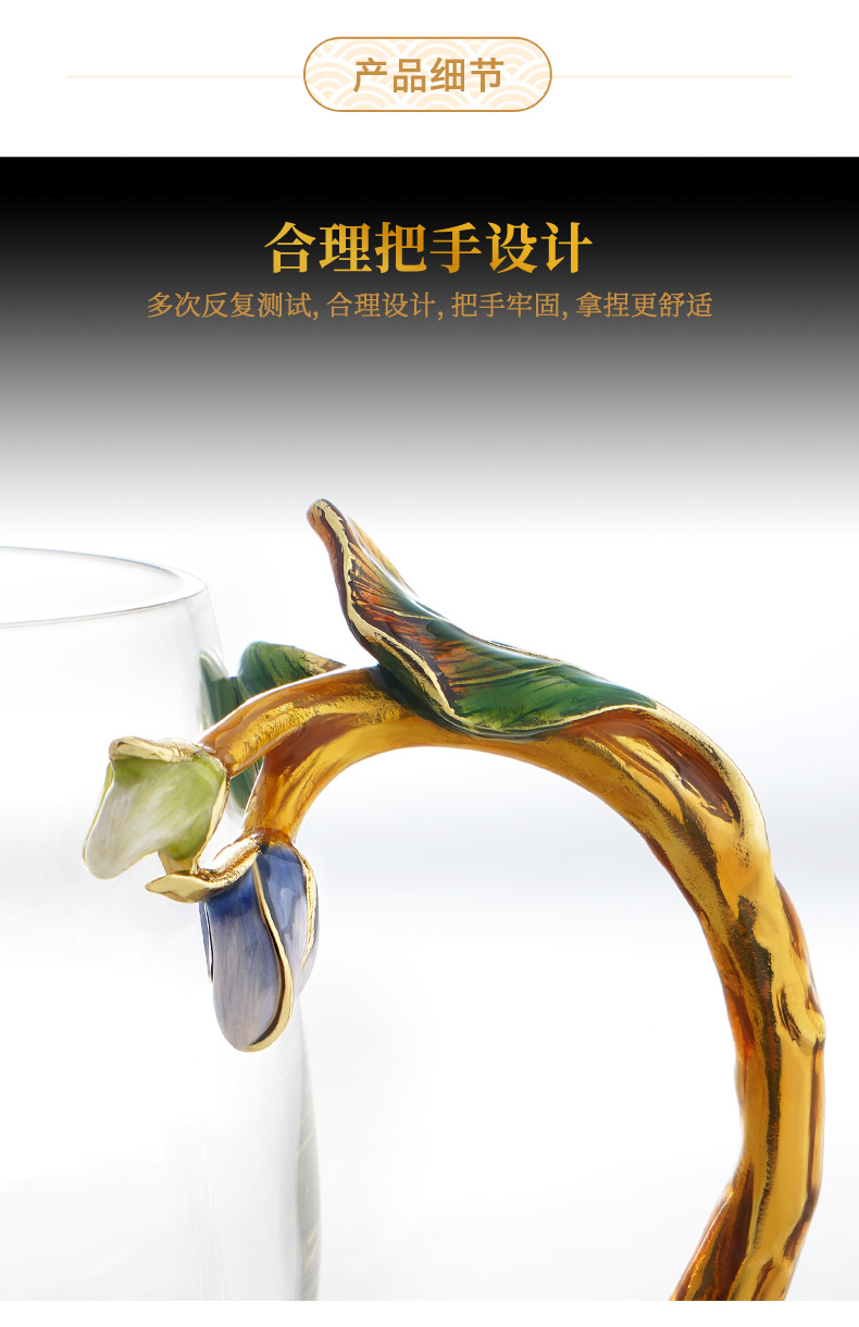 罗比罗丹珐琅彩水杯家用网红ins创意玻璃杯女生花茶杯礼物