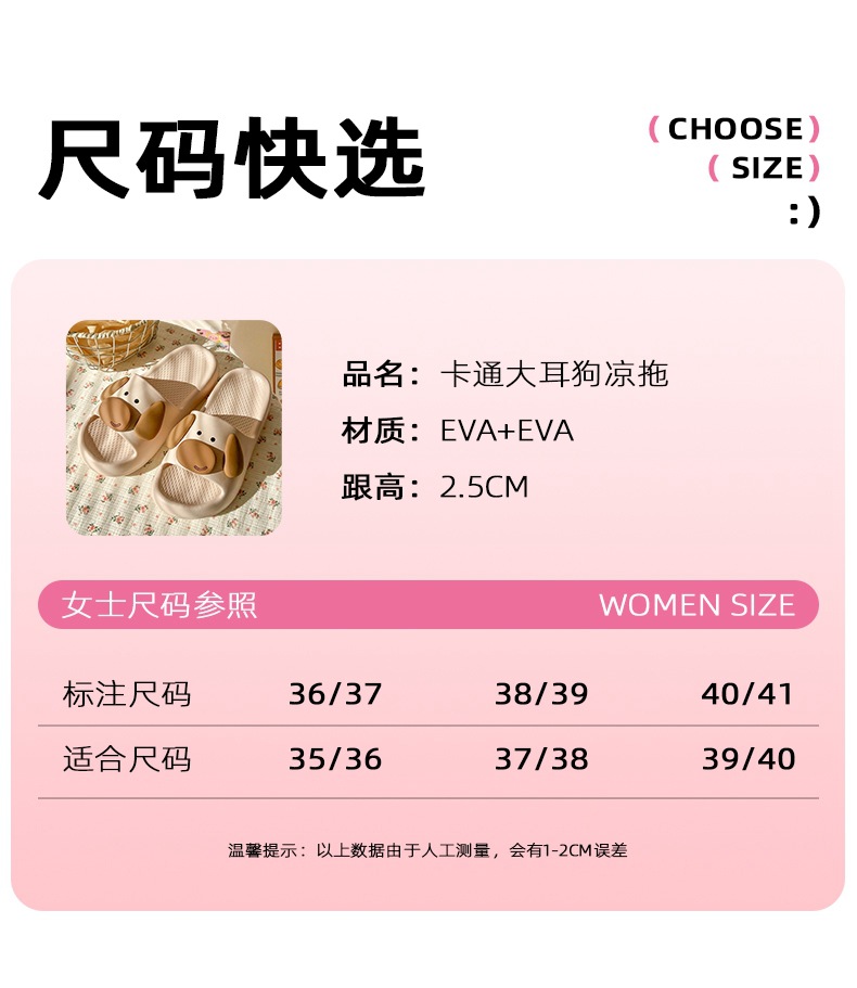 【特价19元】春夏新品可爱卡通大耳狗女款居家外穿舒适凉拖鞋一字拖【WG25202】