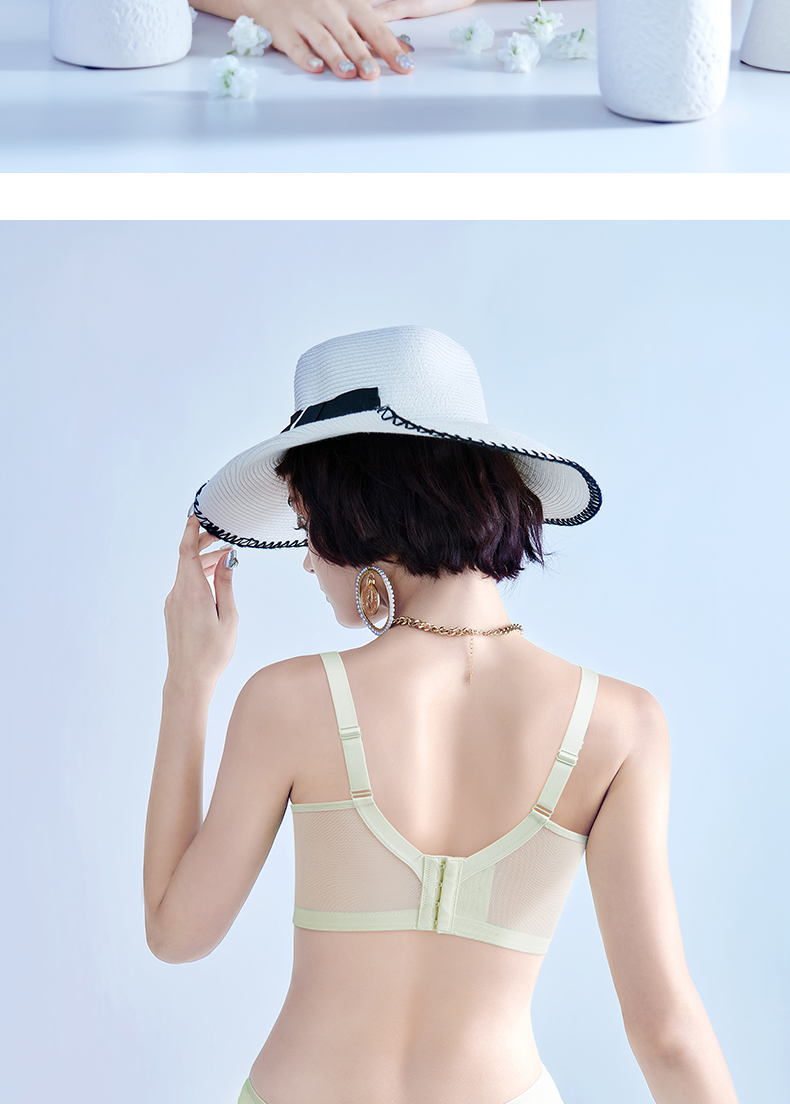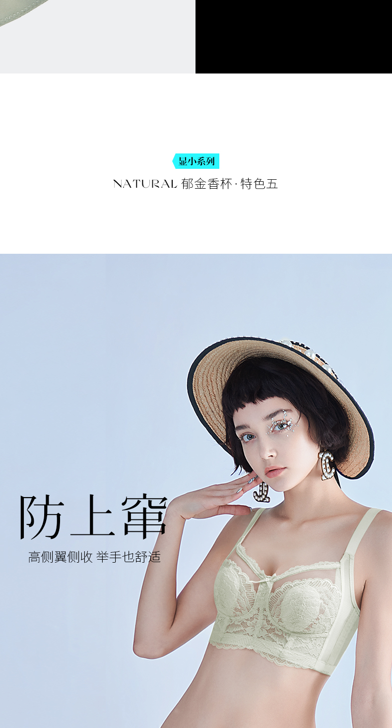 F1-【B-D杯】润微轻薄水晶杯薄款全罩杯大胸显小收副乳调整型女内衣无钢圈文胸 花落缤纷