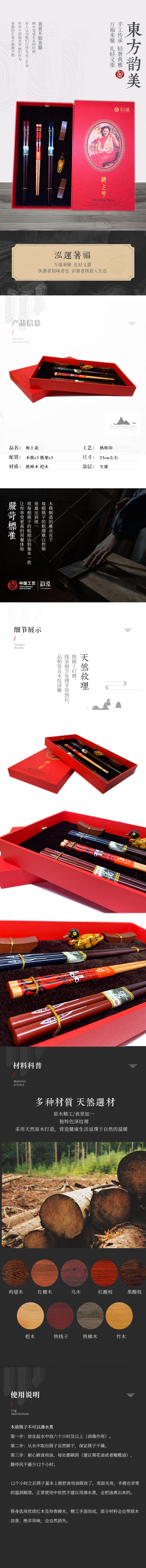银木镶嵌祥云长花圆筷456/976