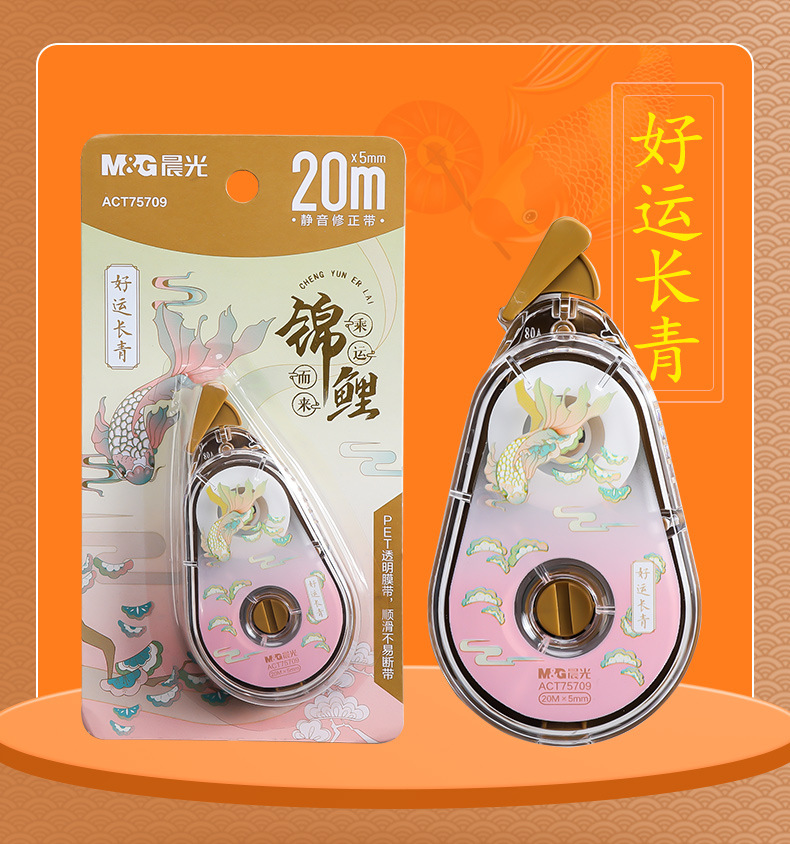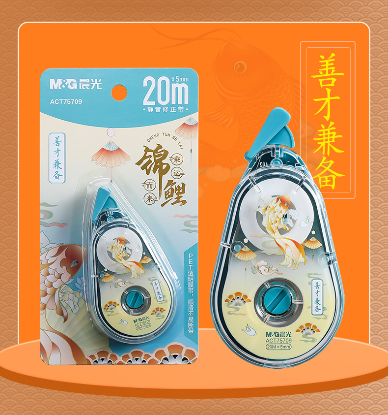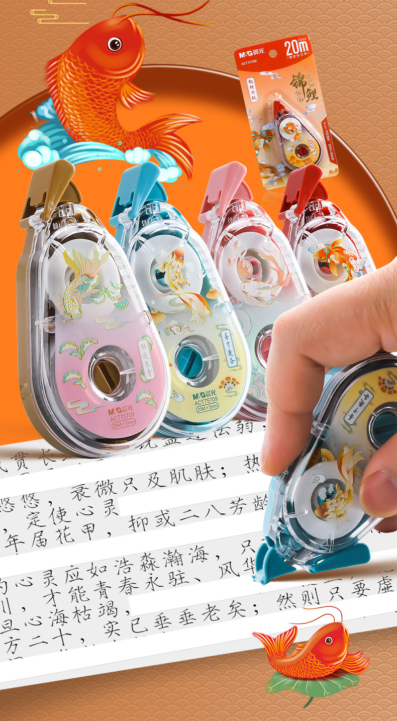 【买1送1!外壳随机】晨光ACT75709锦鲤系列 20m修正带 初中学生用涂改带 PET带芯改正带