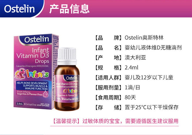 奥斯特林Ostelin 婴幼儿维生素D3 2.4ml
