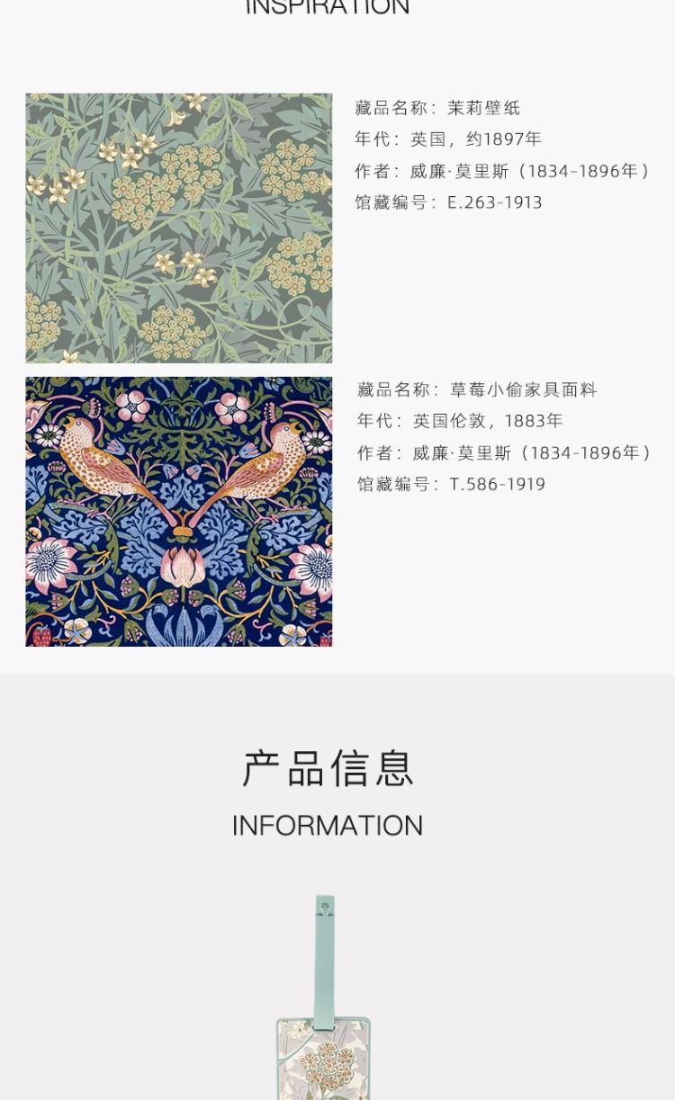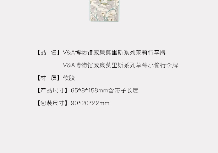 V&A博物馆威廉莫里斯系列 茉莉 草莓小偷 行李牌出行旅行 文创礼物