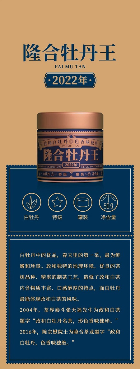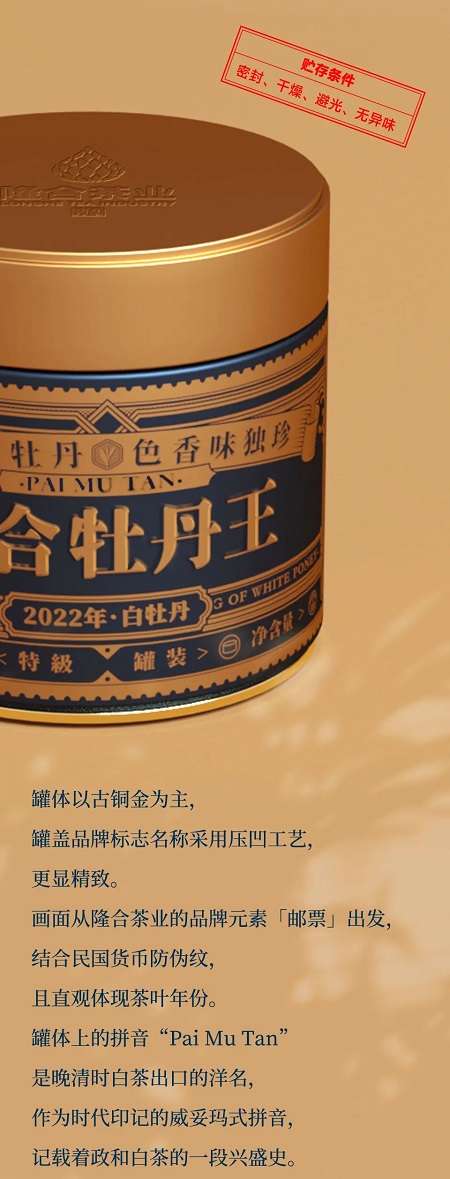 【中国白茶十强企业】隆合茶业 2022年牡丹王 福建政和白茶 50g/罐(京东同款)