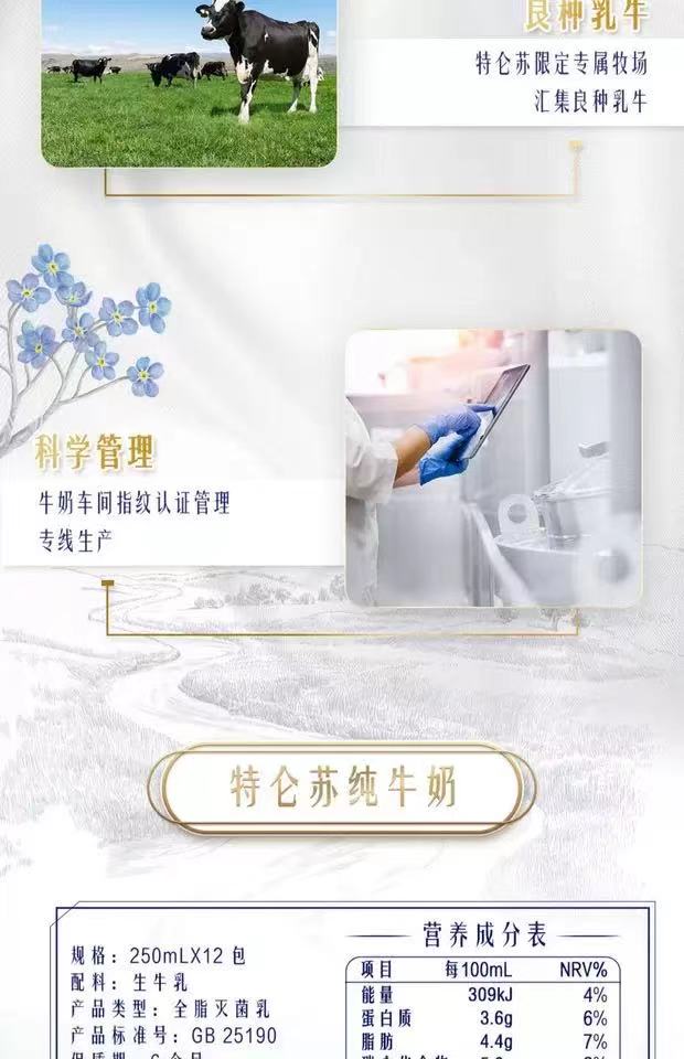 【自营】蒙牛特仑苏纯牛奶250*12盒整箱