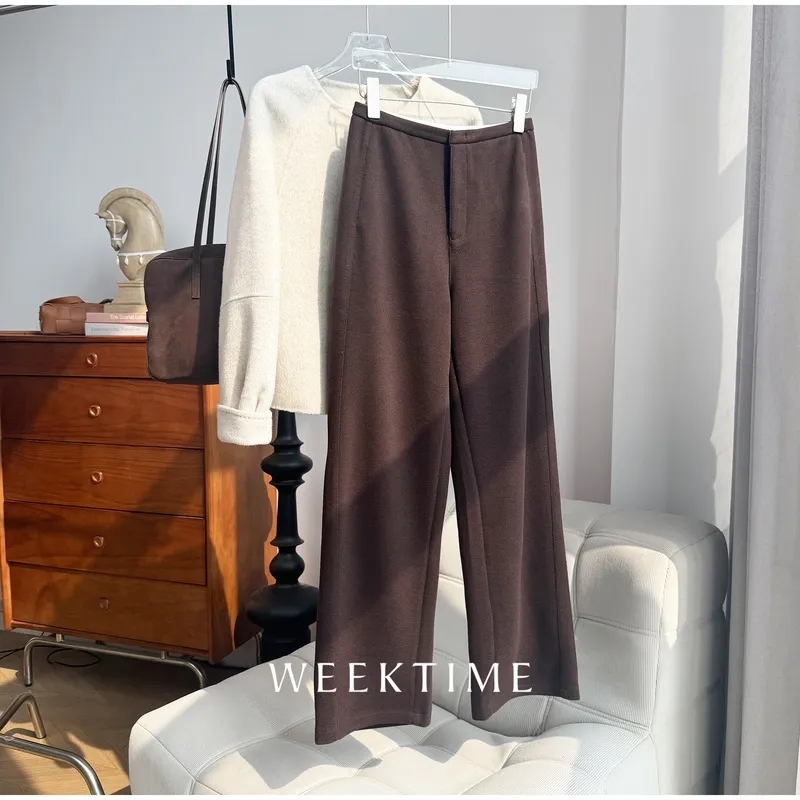 专柜标准❗⚠️独家桑蚕丝羊绒【高光时刻】重工毛呢裤】直筒阔腿裤型,包容腿型好牛掰👍慵懒又舒服 贼有分量,舒服不扎!