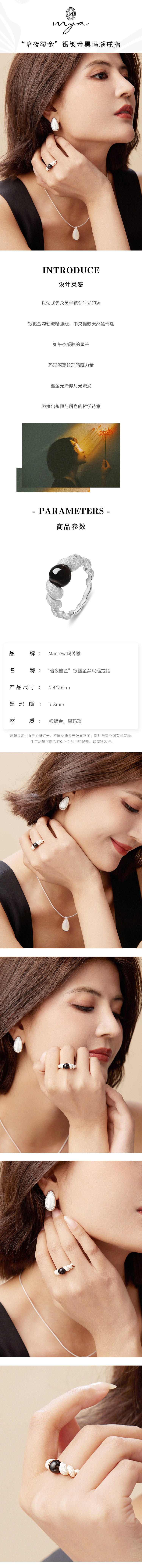 Manreya玛芮雅“暗夜鎏金”银镀金黑玛瑙戒指