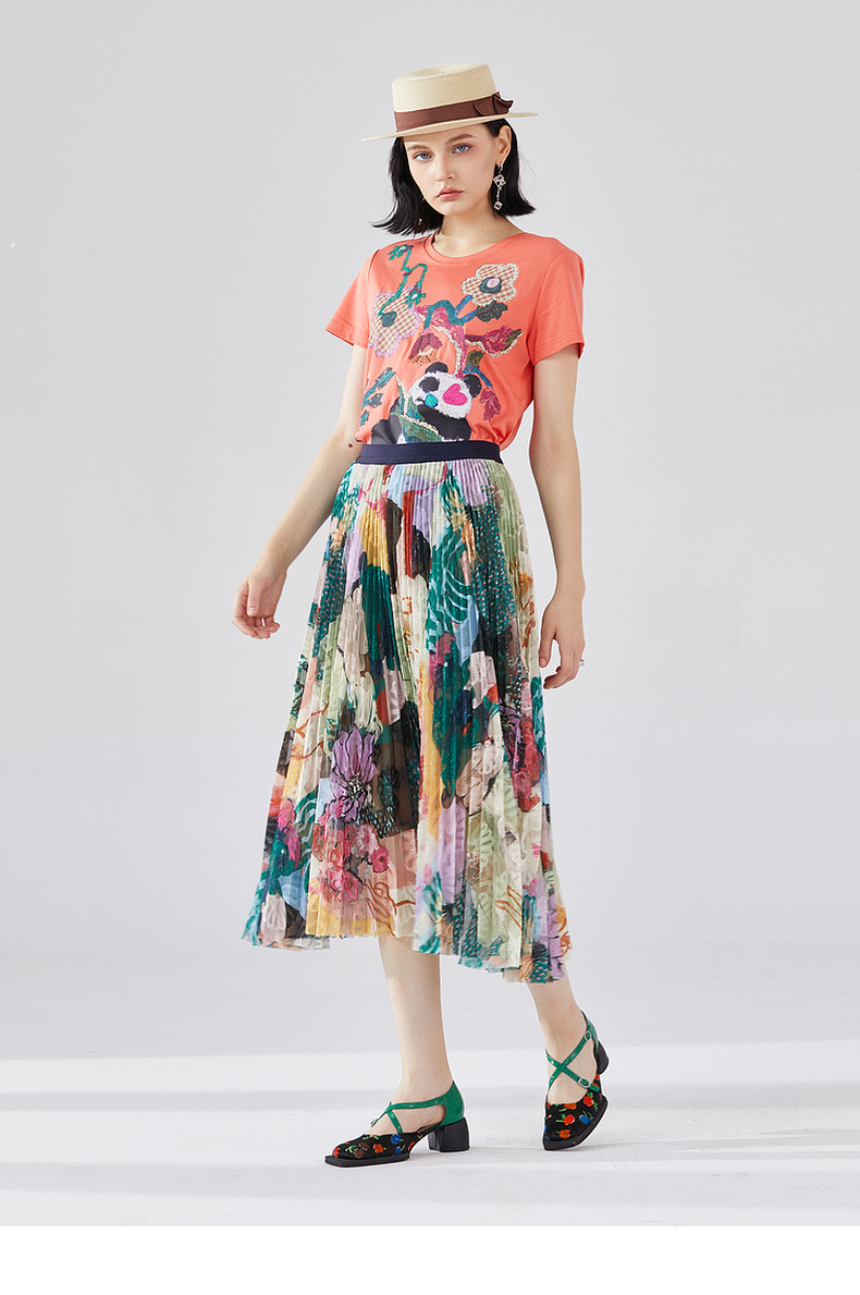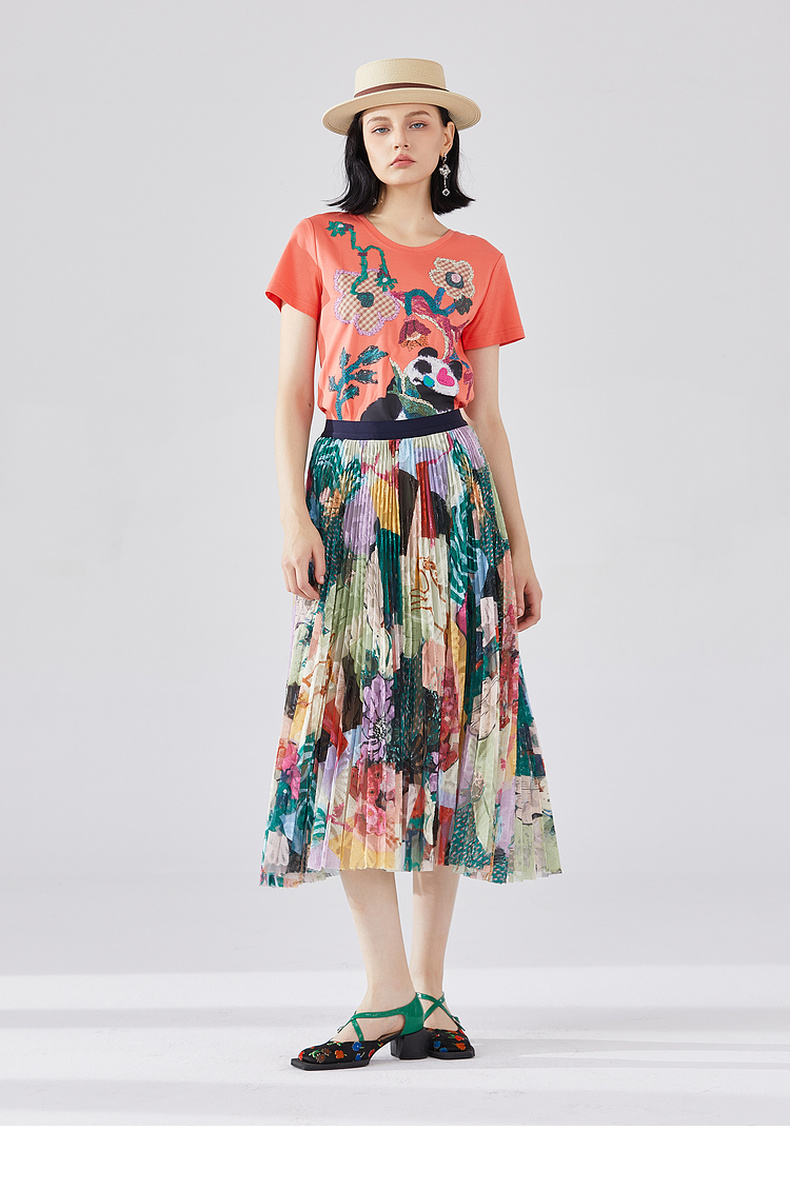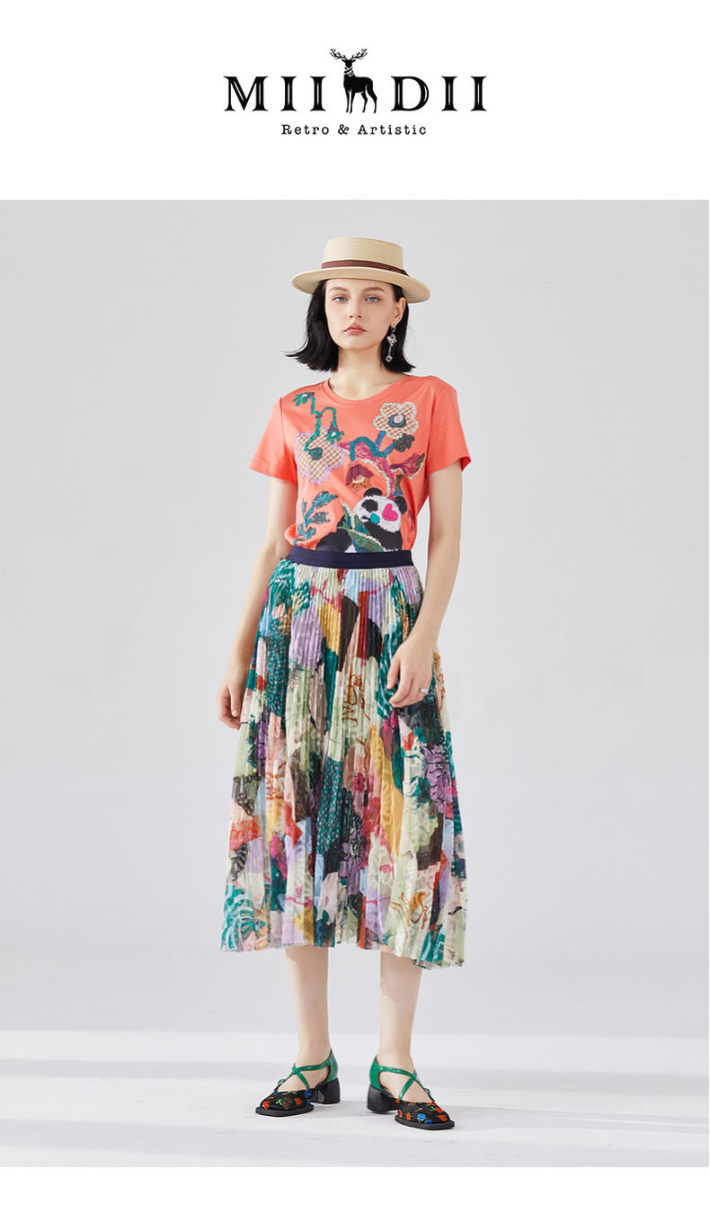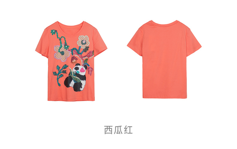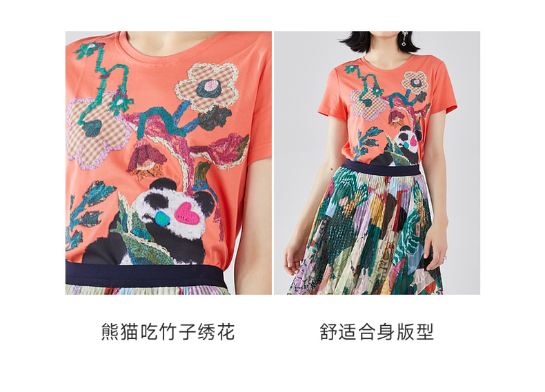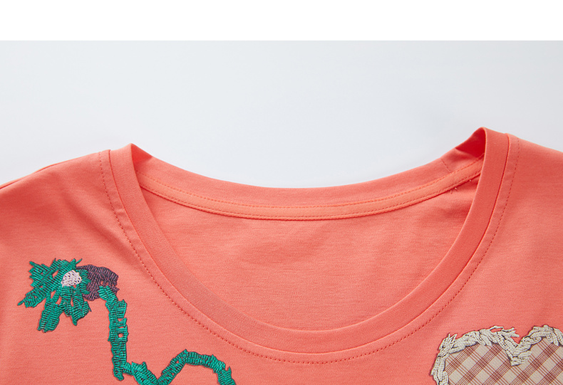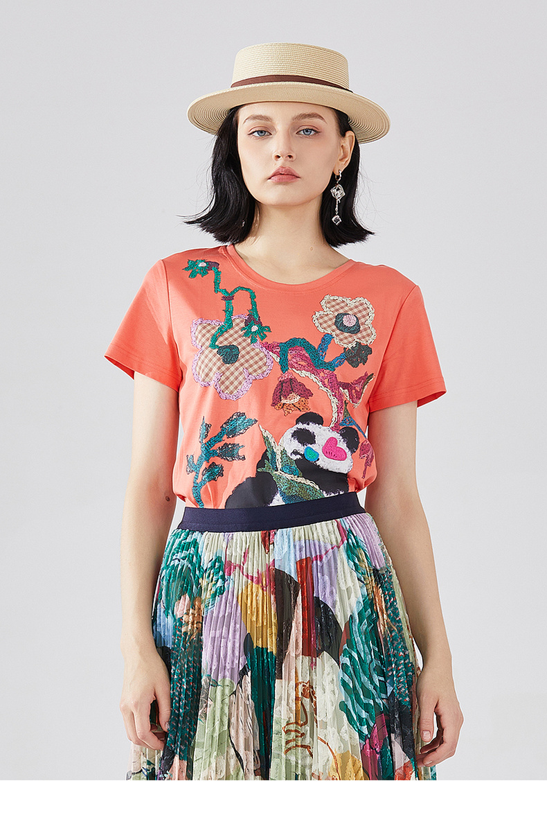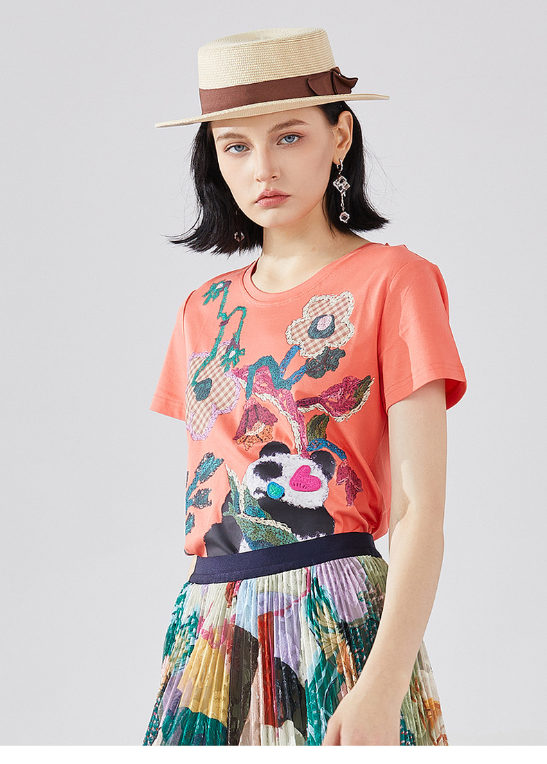 谜底T恤短袖女2023秋季新款学院风趣味绣花修身百搭上衣233MT0019