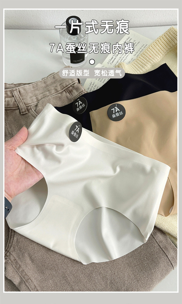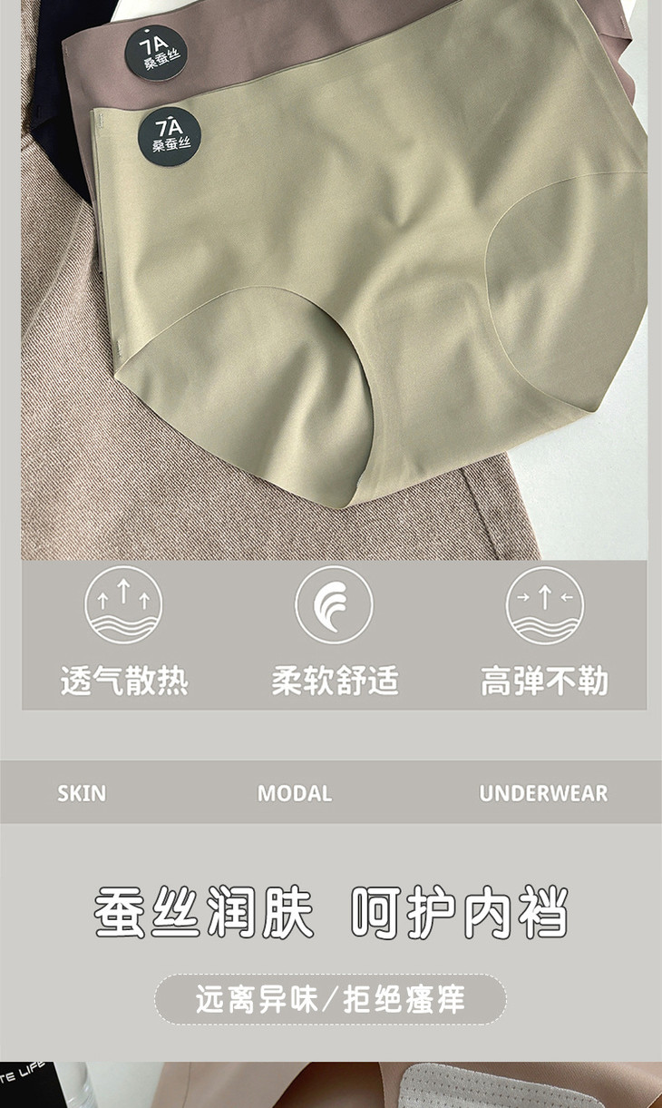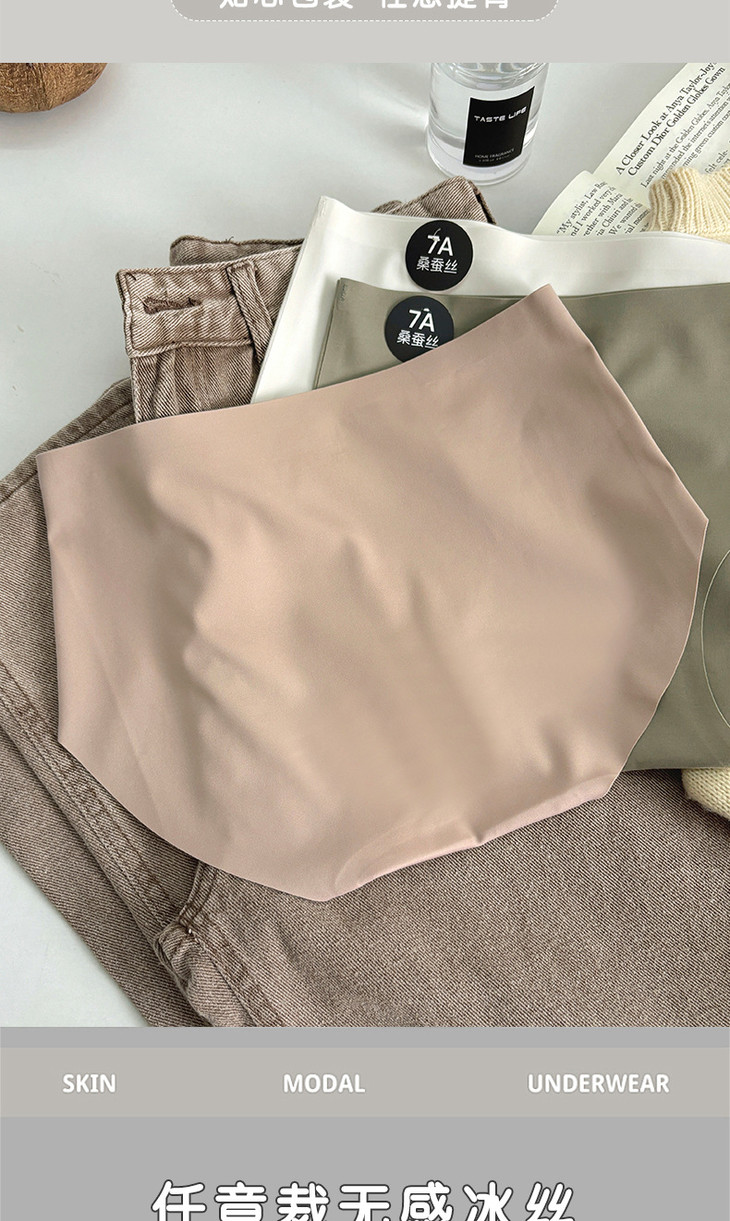 【独立包装7A桑蚕丝抗菌无痕冰丝内裤】女简约莫兰迪色系纯色中腰内裤