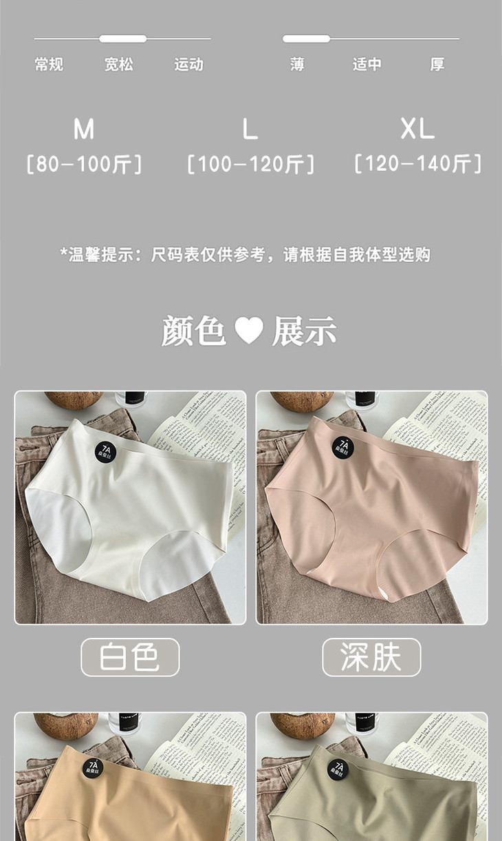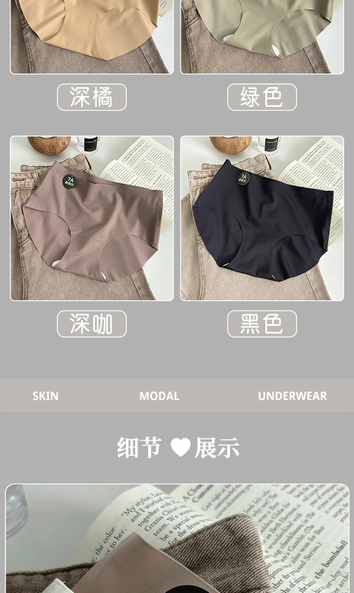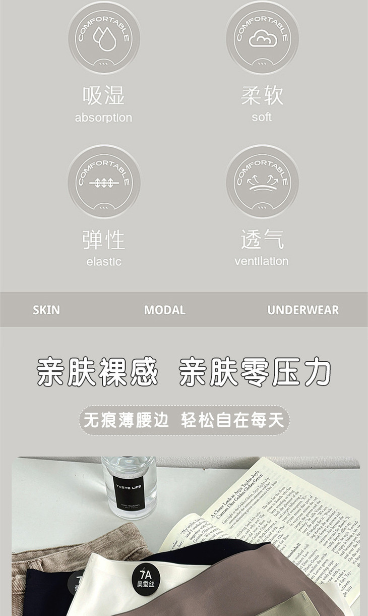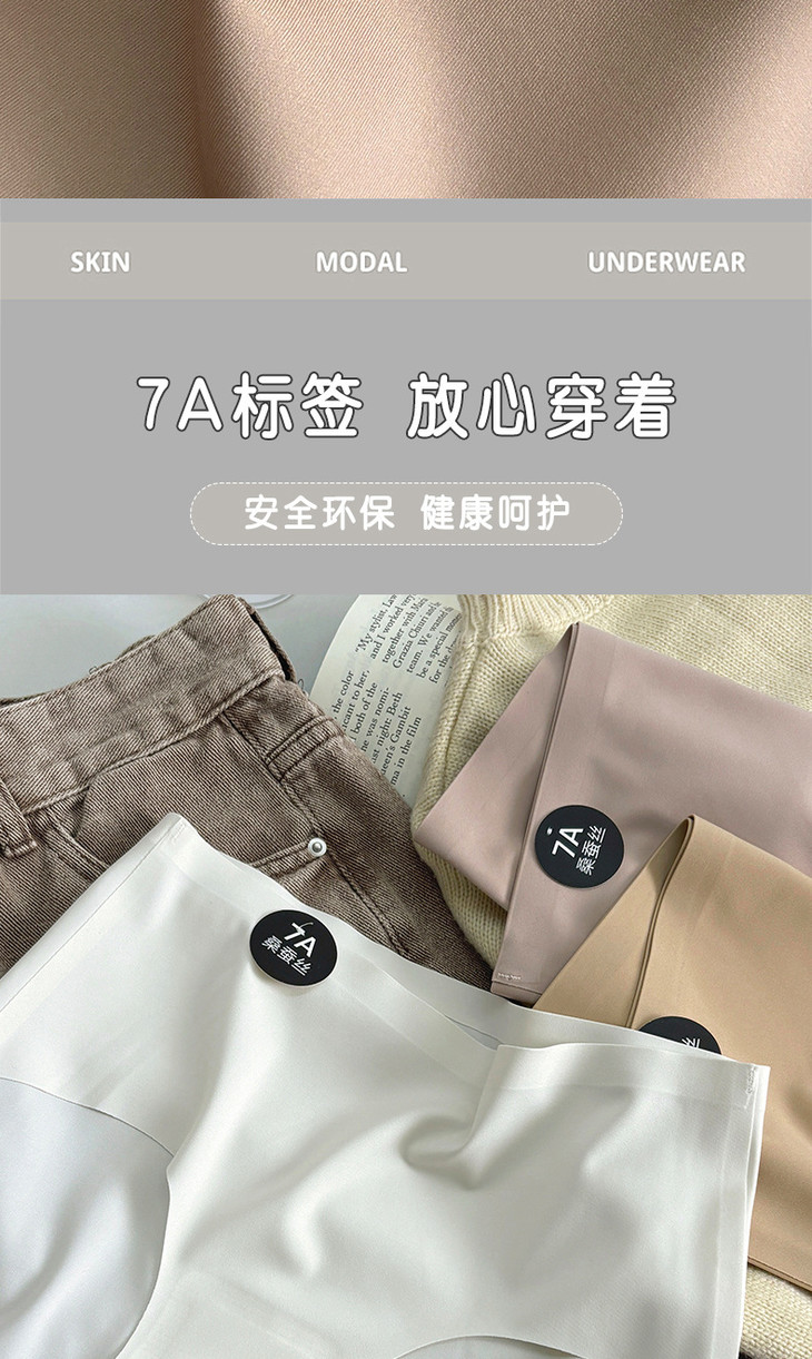 【独立包装7A桑蚕丝抗菌无痕冰丝内裤】女简约莫兰迪色系纯色中腰内裤
