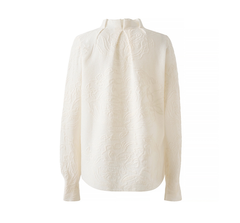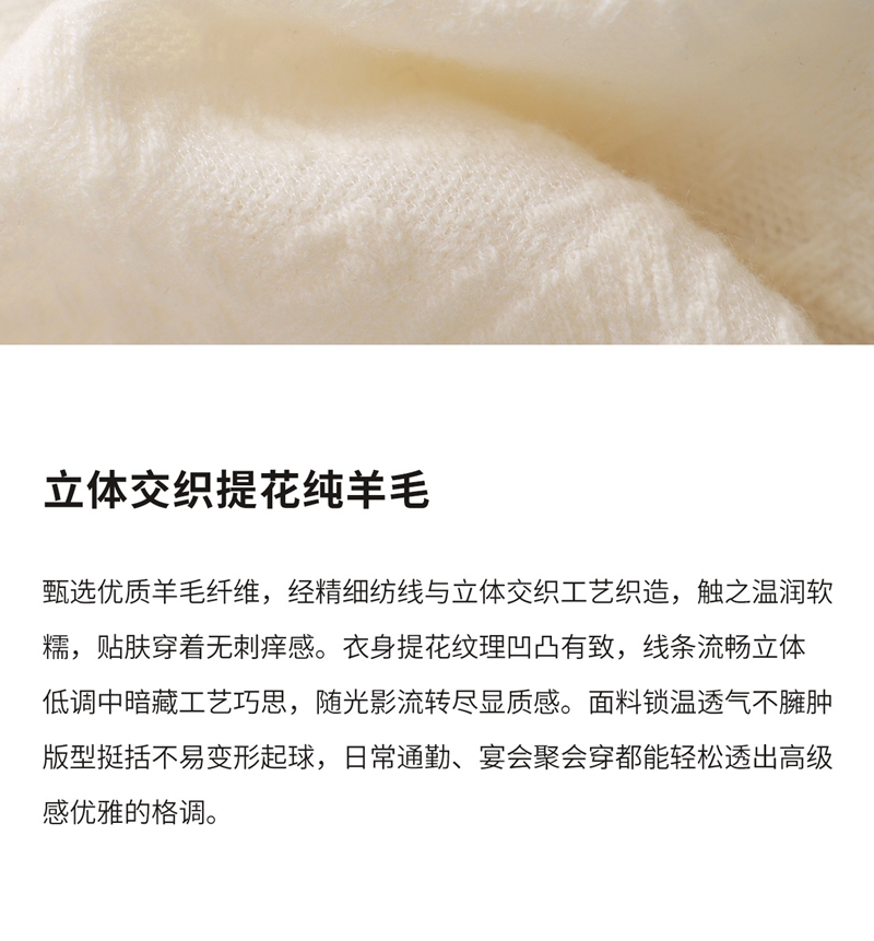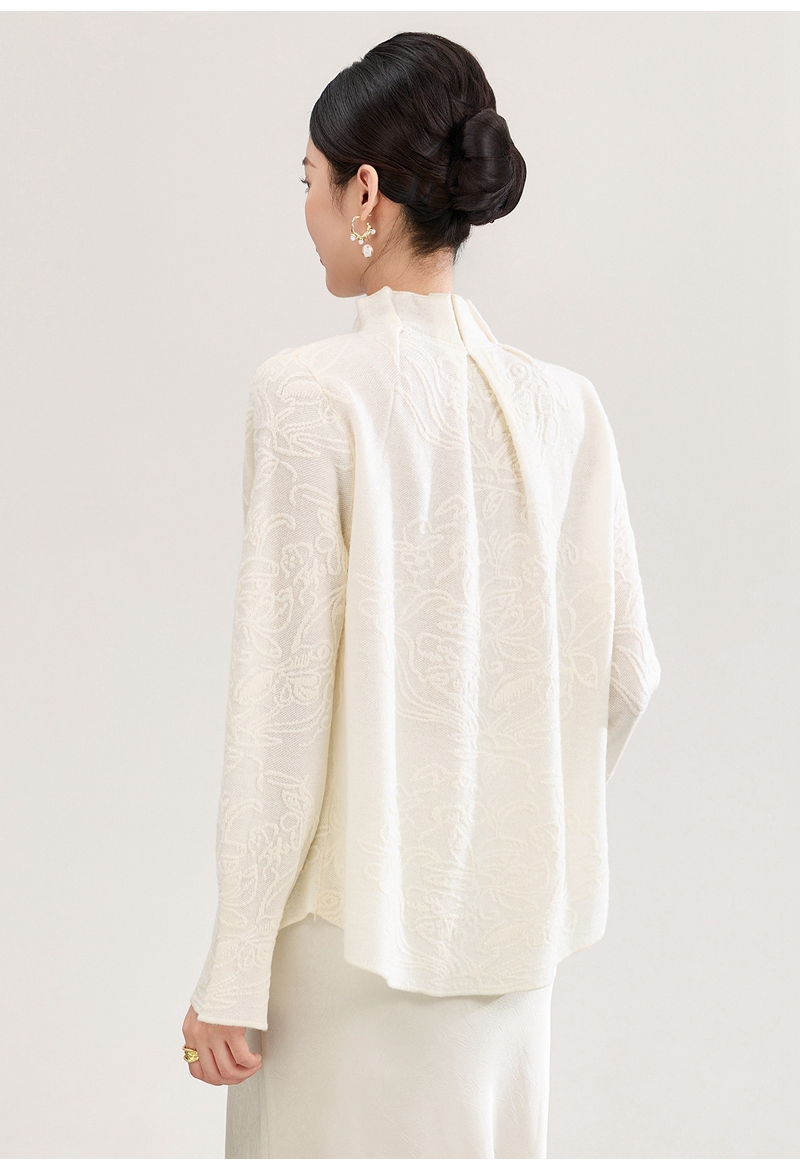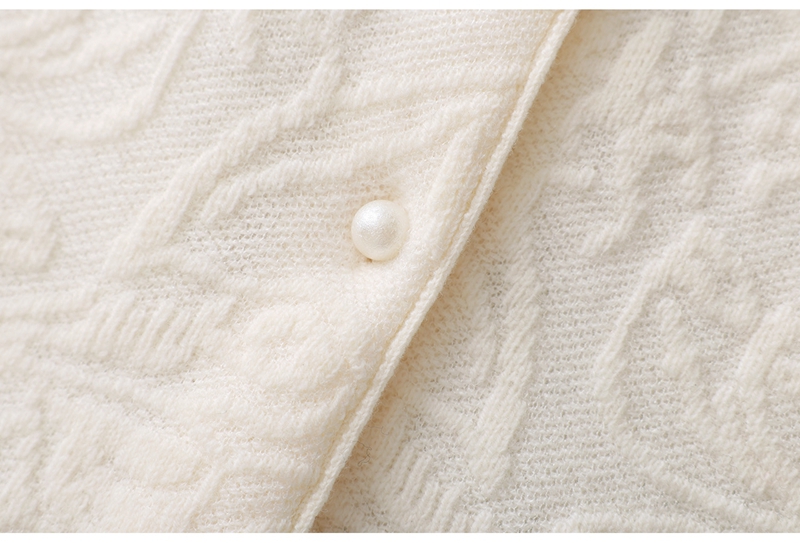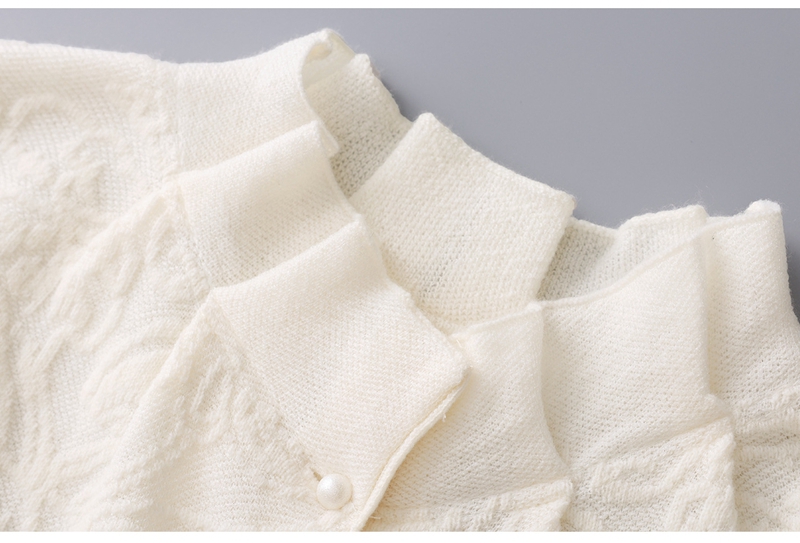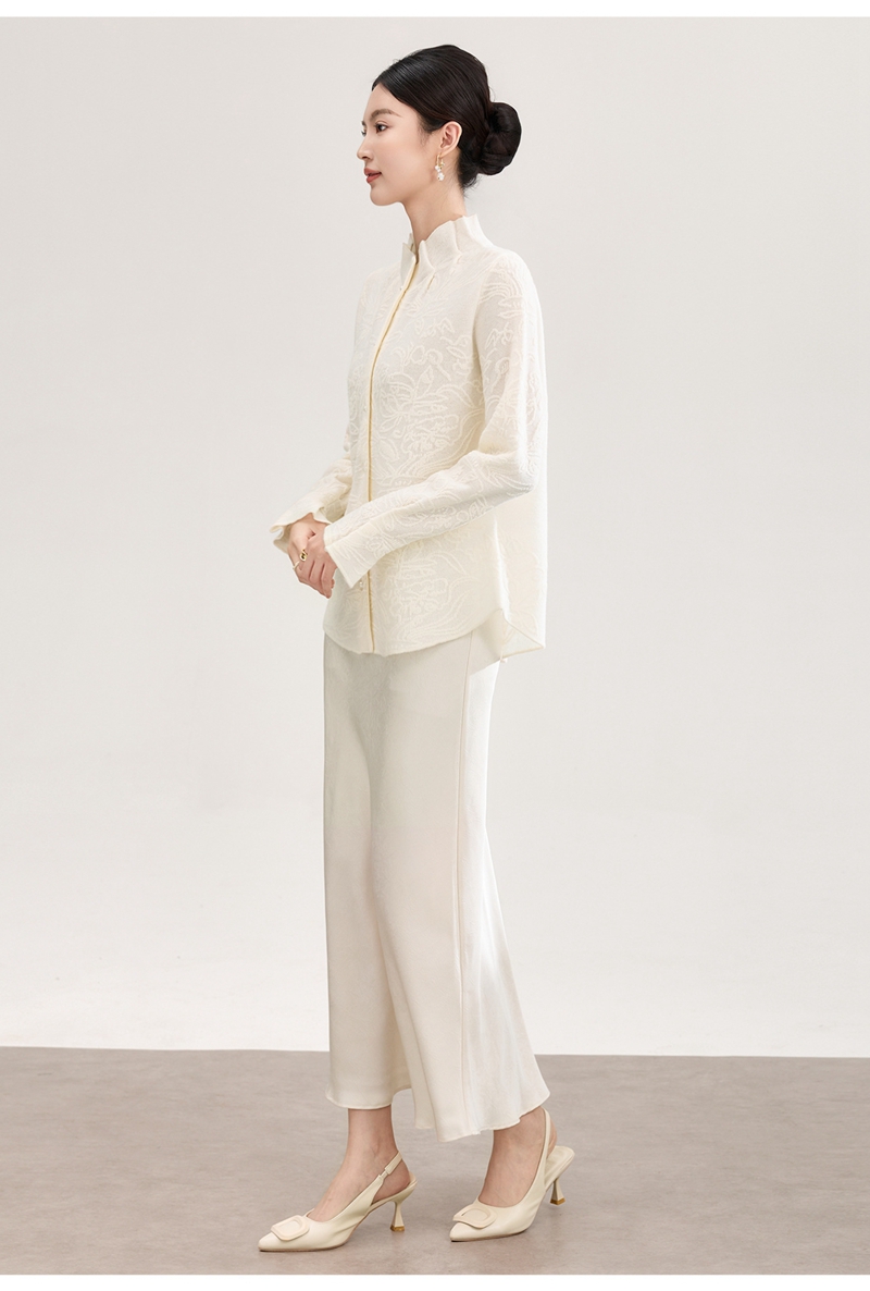 2026春装立体交织提花木耳边立领微喇长袖单排扣针织衬衣