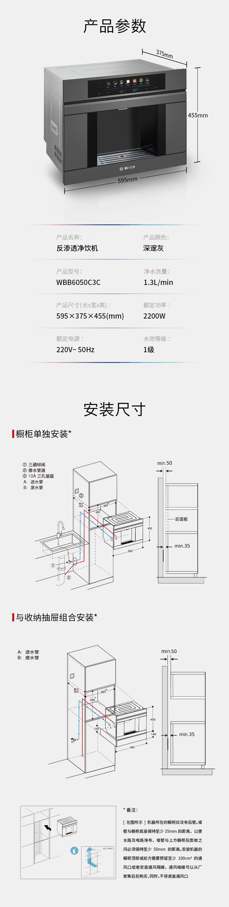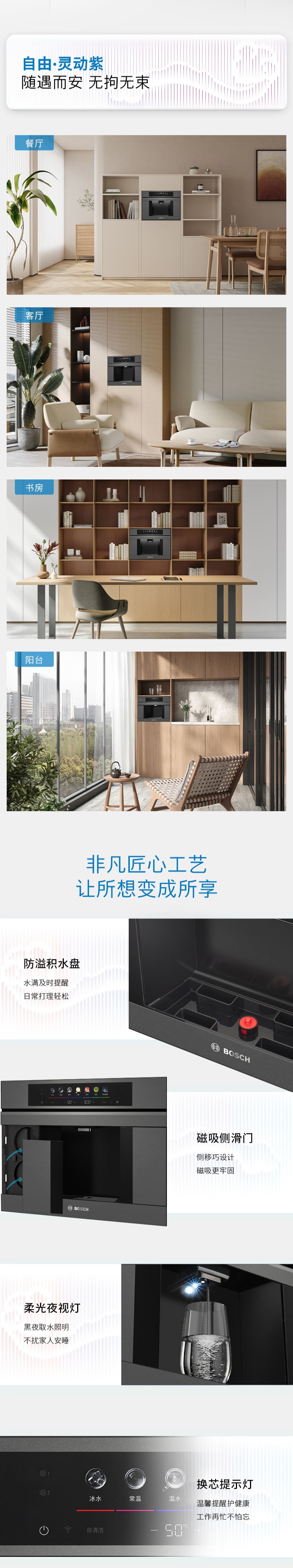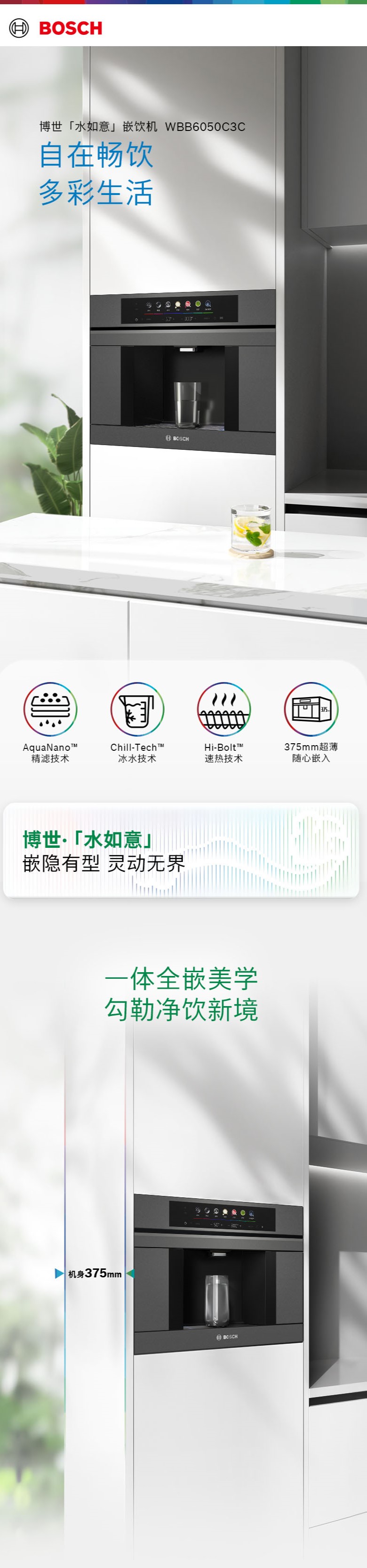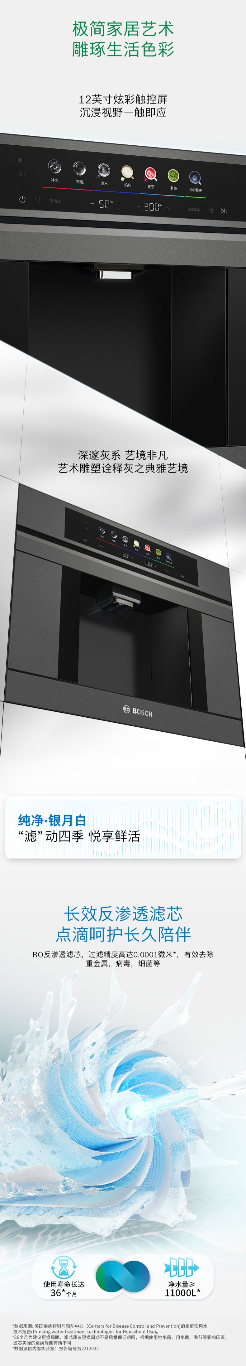 博世(BOSCH)嵌饮机嵌入式反渗透直饮机 水如意系列 晶御智能 净水器家用 精准控温 即滤即饮 冰水款净水机WBB6050C3C