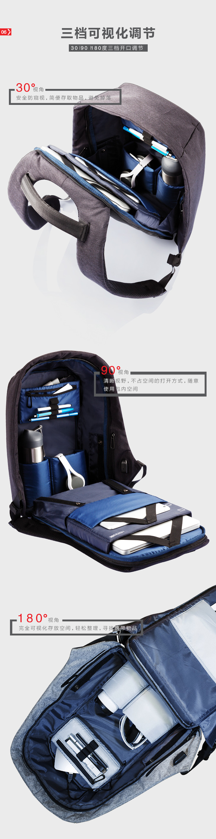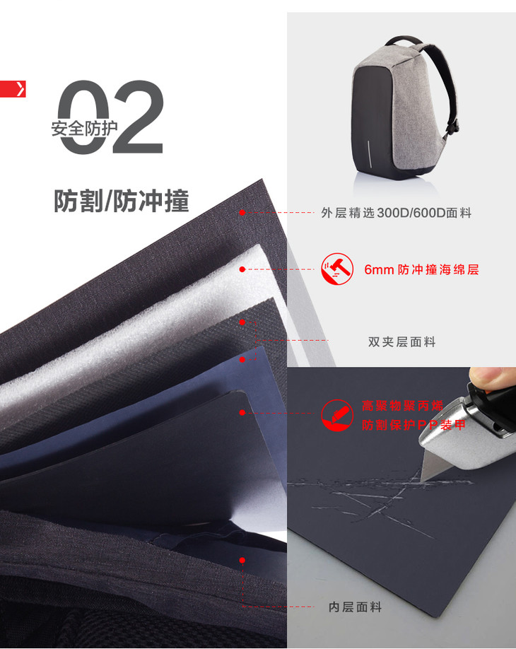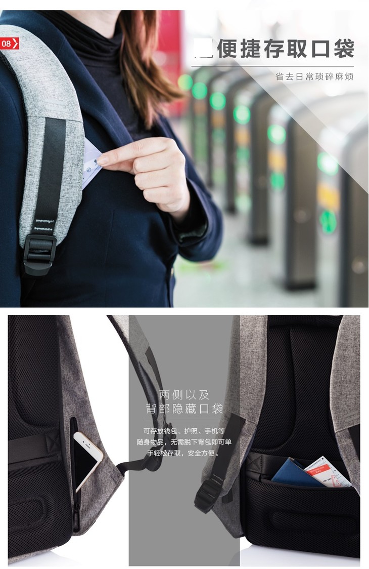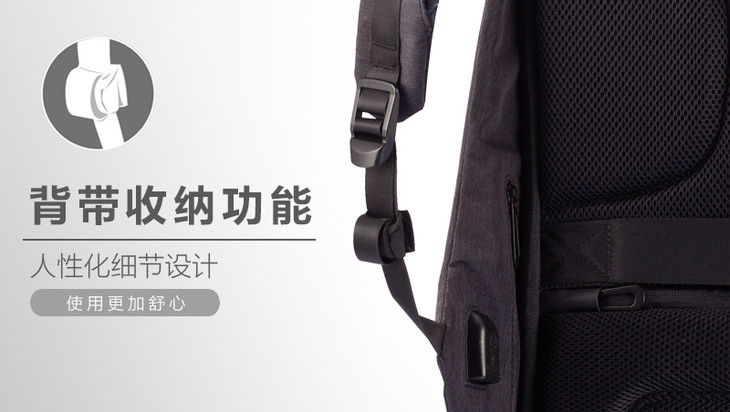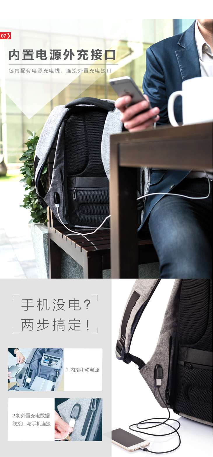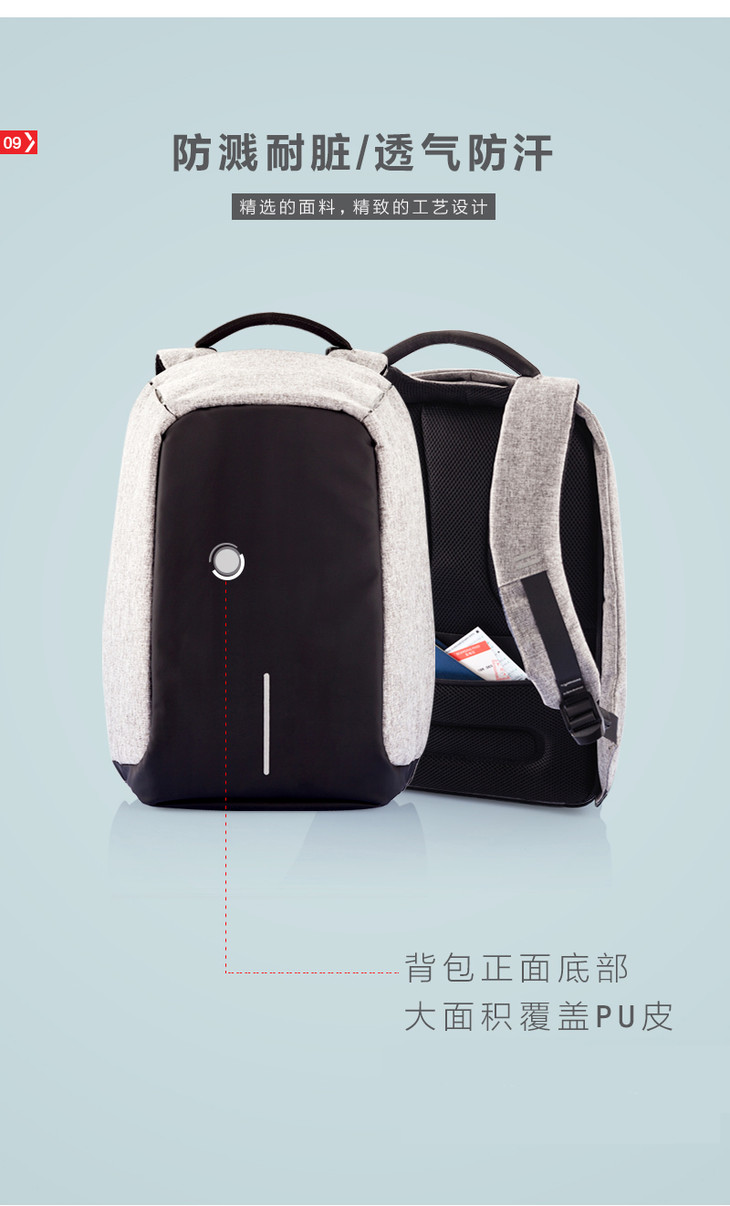 由于内含三片防割板和充电转接头,该包不能全身水洗,建议用湿布擦拭进行清洁。
