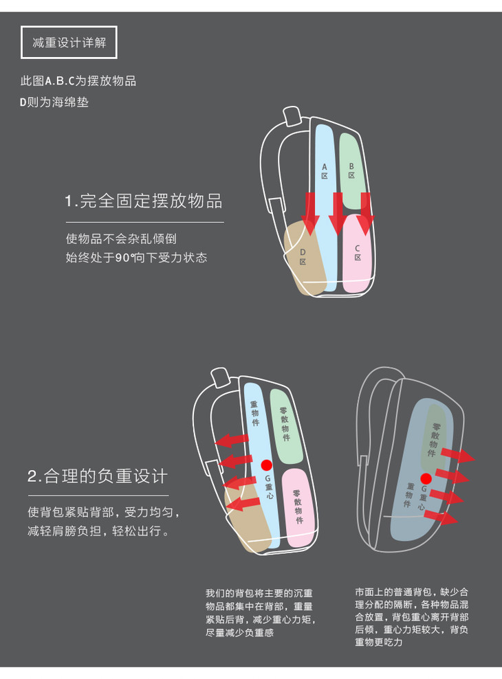 | 背包尺寸 | 44*30*14*cm(±1cm) | 42*26.5*16cm(±1cm) |
