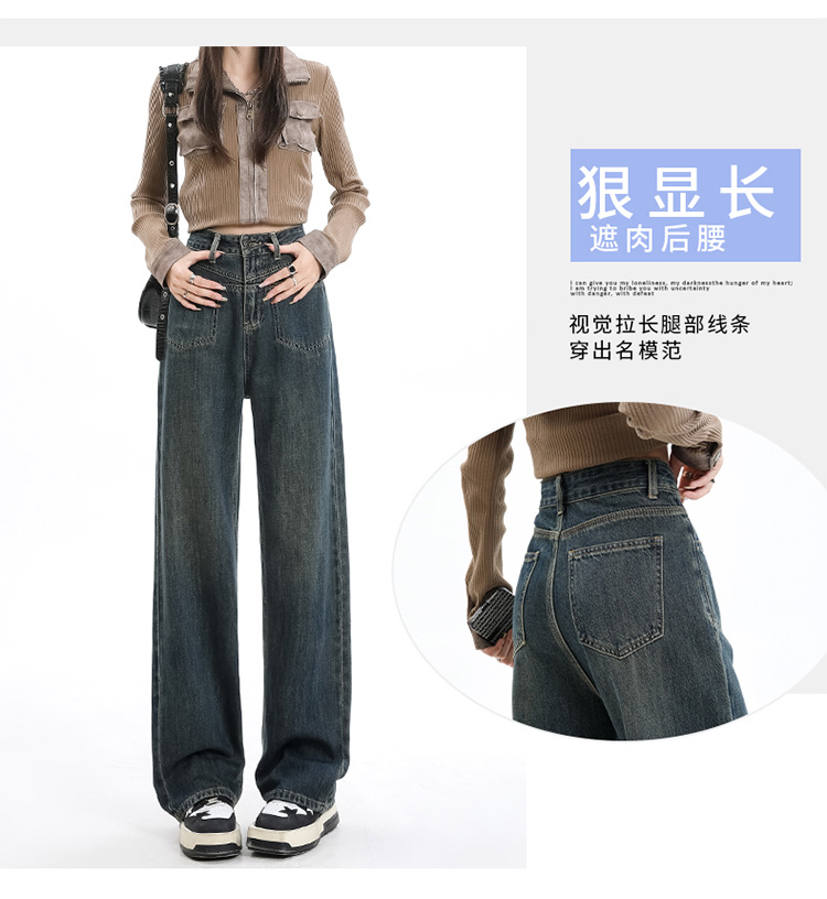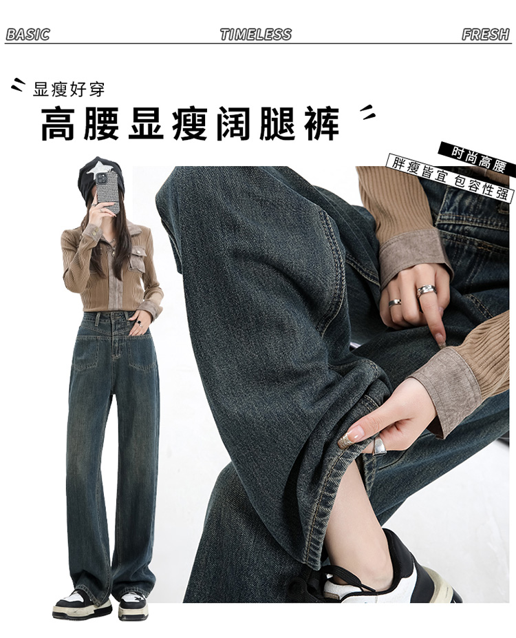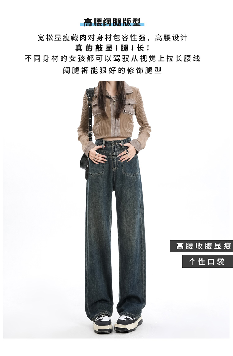 罗蒙女士牛仔裤四季百搭休闲宽松阔腿裤时尚通勤长裤显瘦直筒牛仔裤