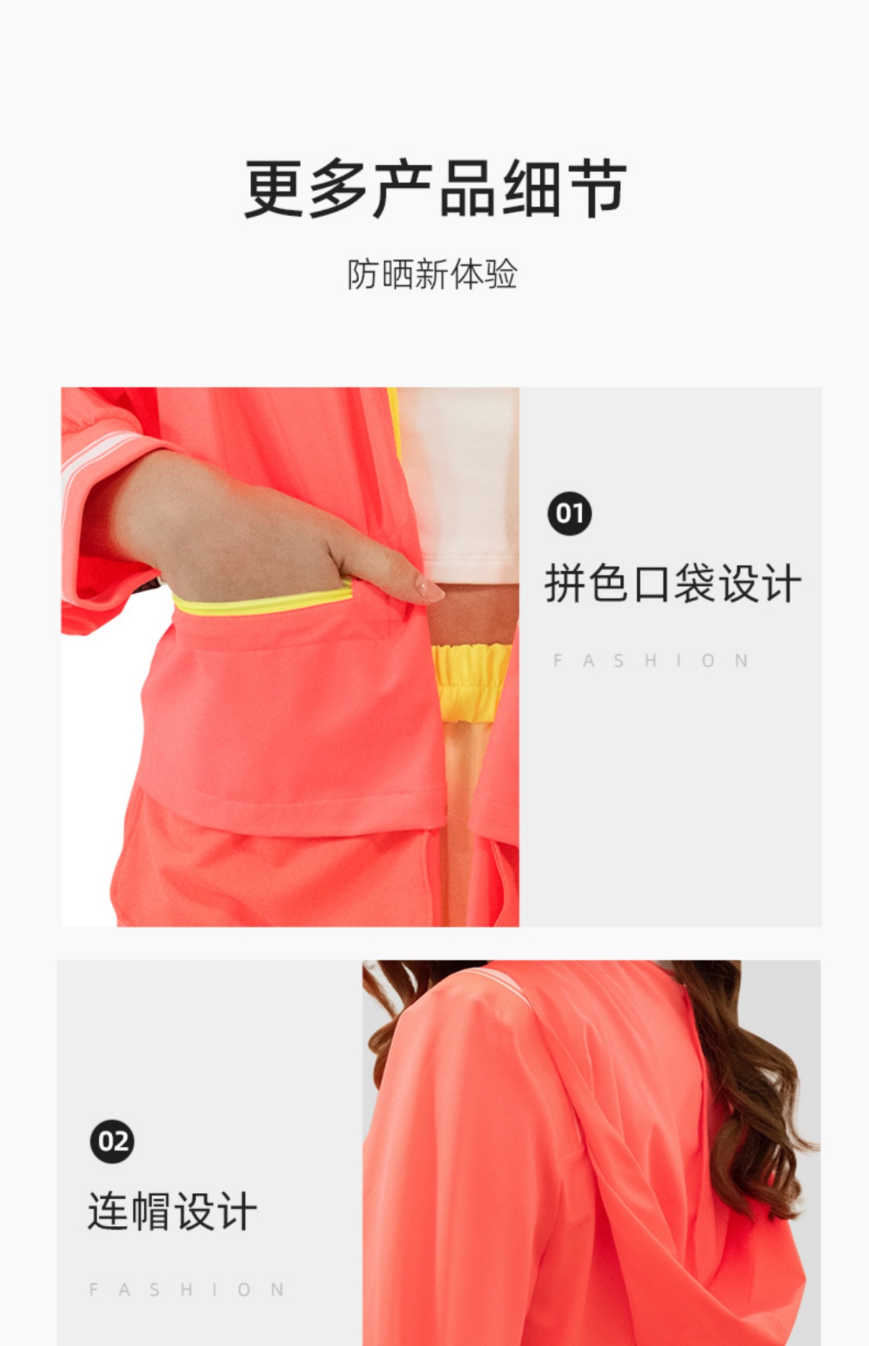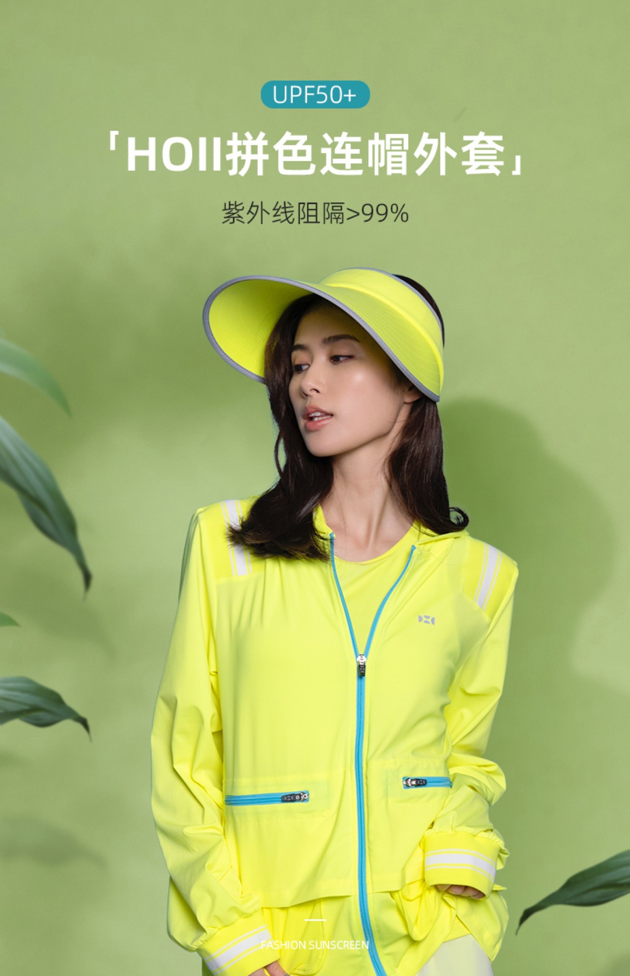 HOII/后益 拼色拉链造型连帽防晒外套[D类]