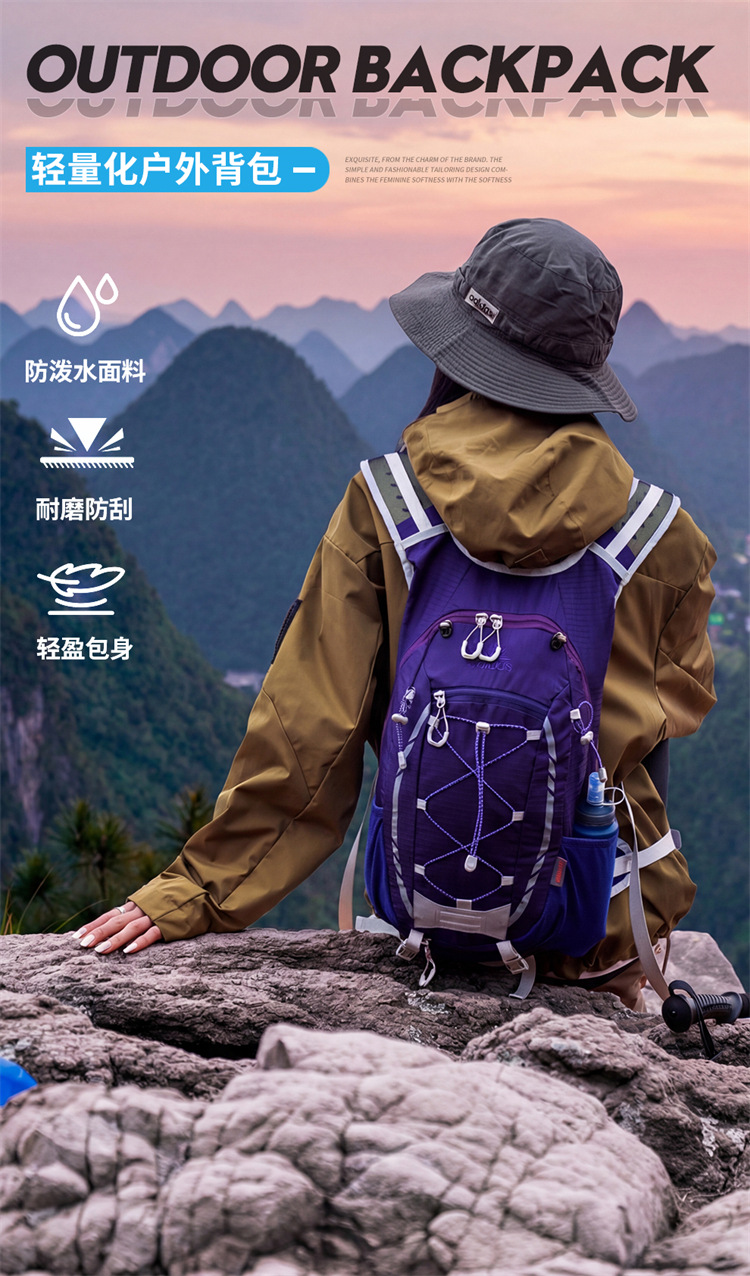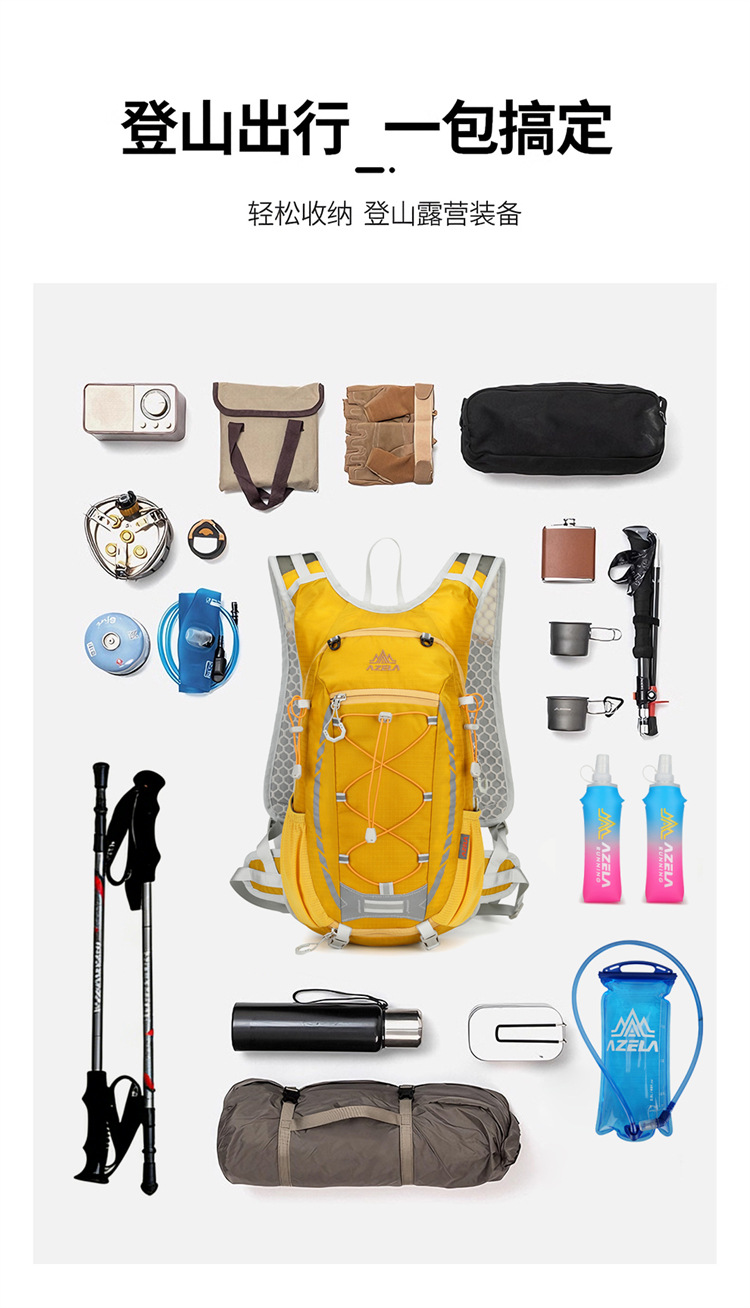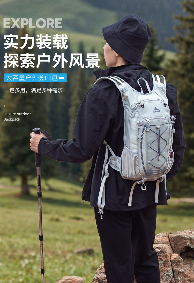 阿泽拉/20L户外运动双肩包轻便骑行登山包露营防泼水休闲旅行背包