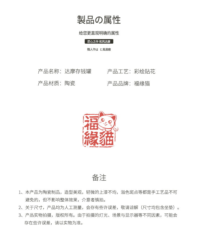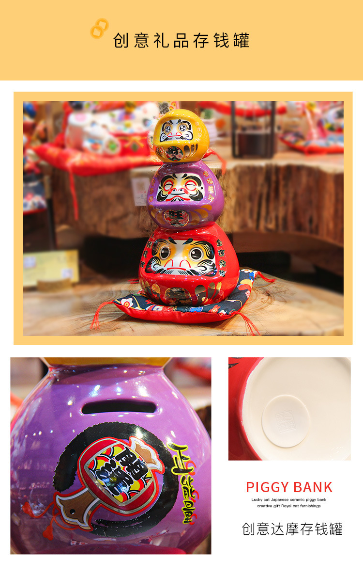 K-FYM-达摩 招财猫 招财开业礼品居家玄关创意陶瓷储蓄罐
