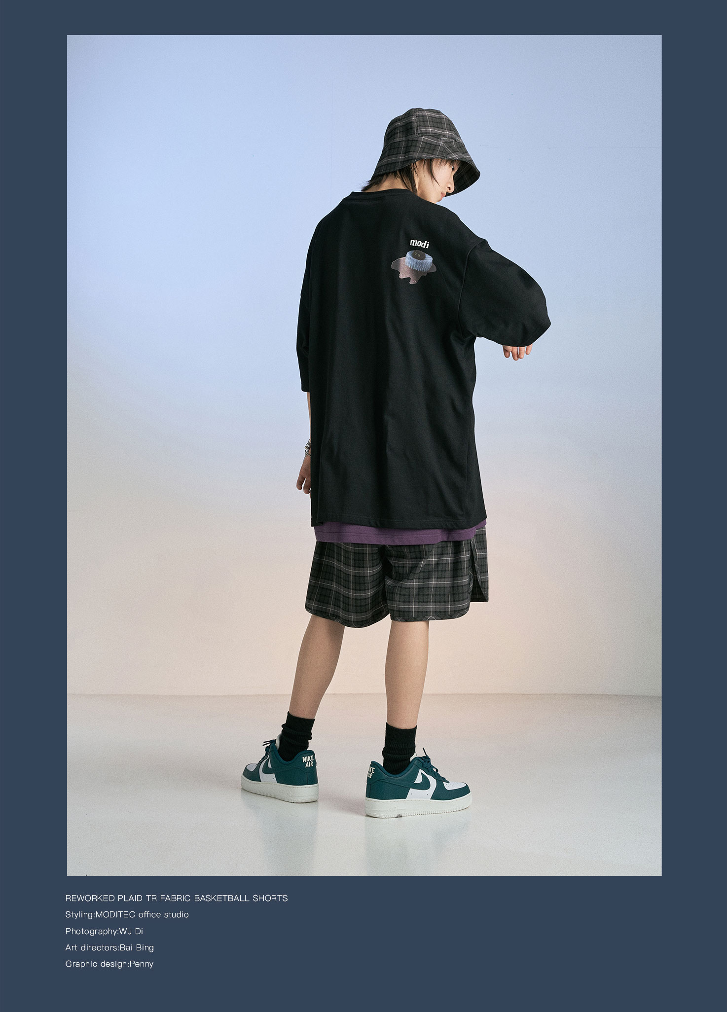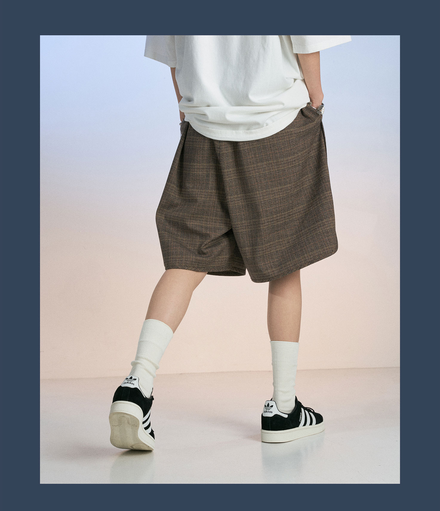 MODITEC 20SS松紧腰打褶廓形休闲短裤 CITYBOY风宽松五分裤