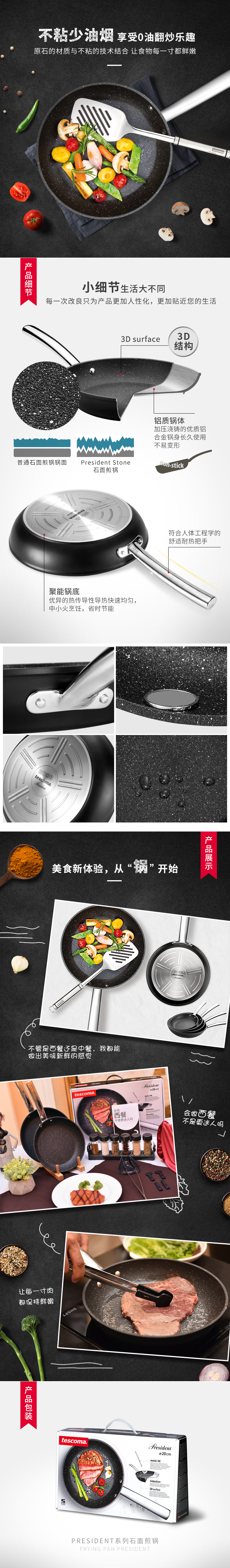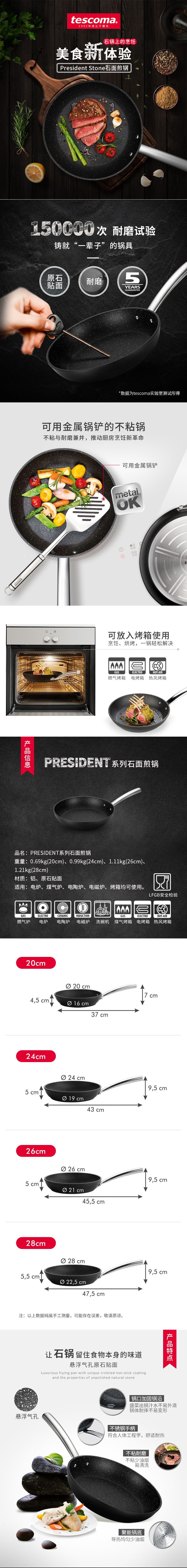 捷克进口/tescoma 不粘锅石面煎锅 煤气电磁炉烤箱通用原石贴面锅 石面煎锅