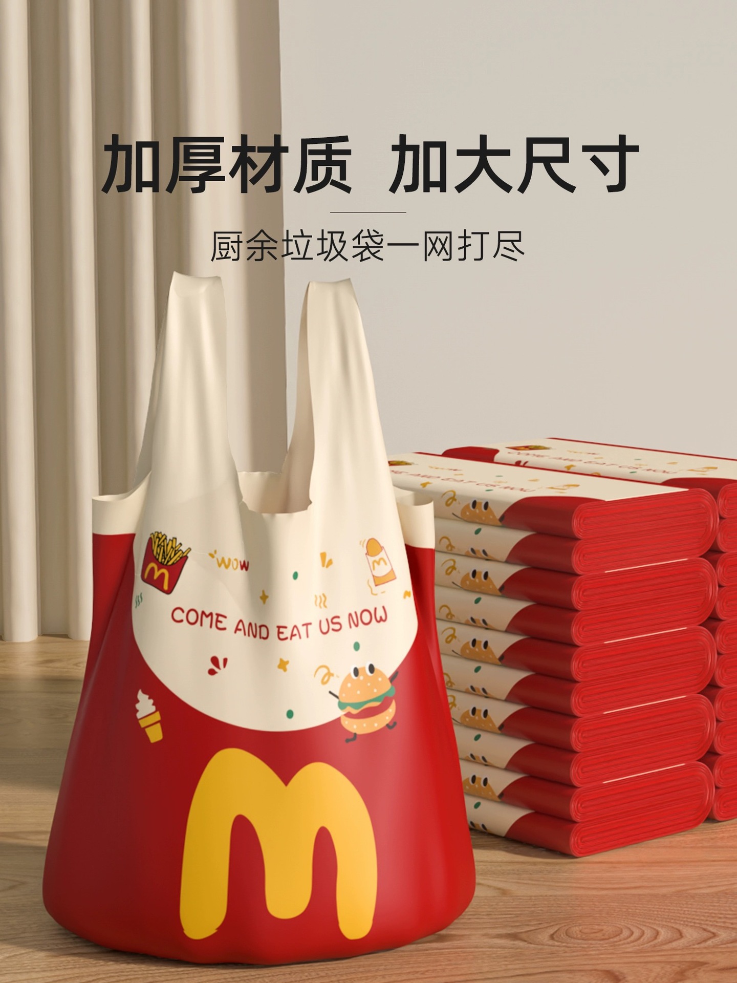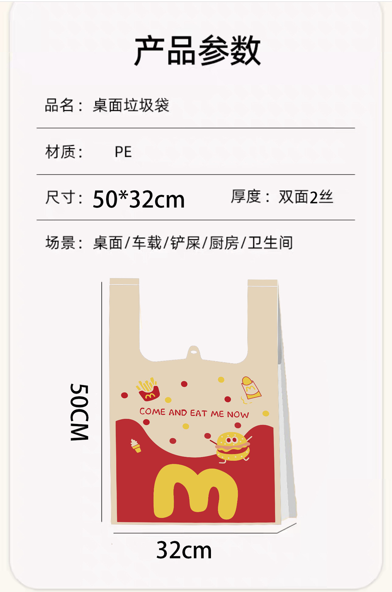 「9.9包邮!加厚款」背心袋汉堡网红手提可爱垃圾袋 ins风居家日用环保卡通购物袋收纳整理
