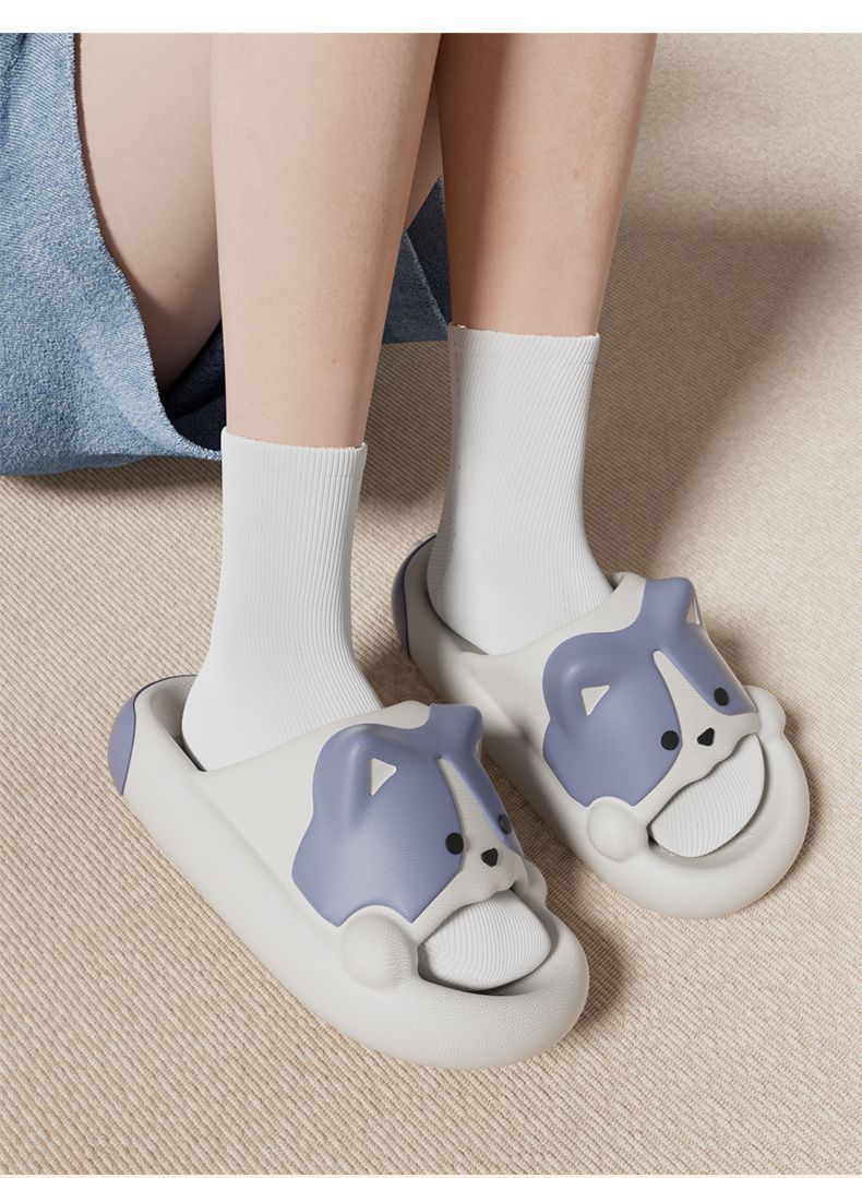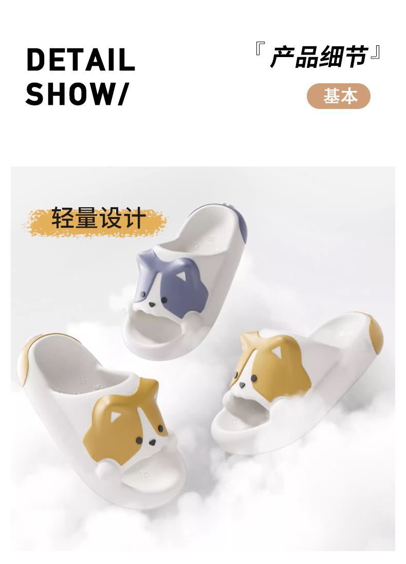 【时尚百搭,舒适耐穿】小狗柯基拖鞋,可爱动人;秋夏新款,轻便厚底增高,细节考究方便极。新款洗澡凉拖,室内外皆适宜,季节无言,品质有加。