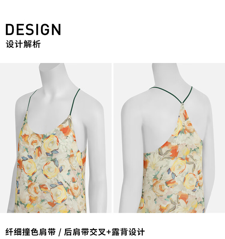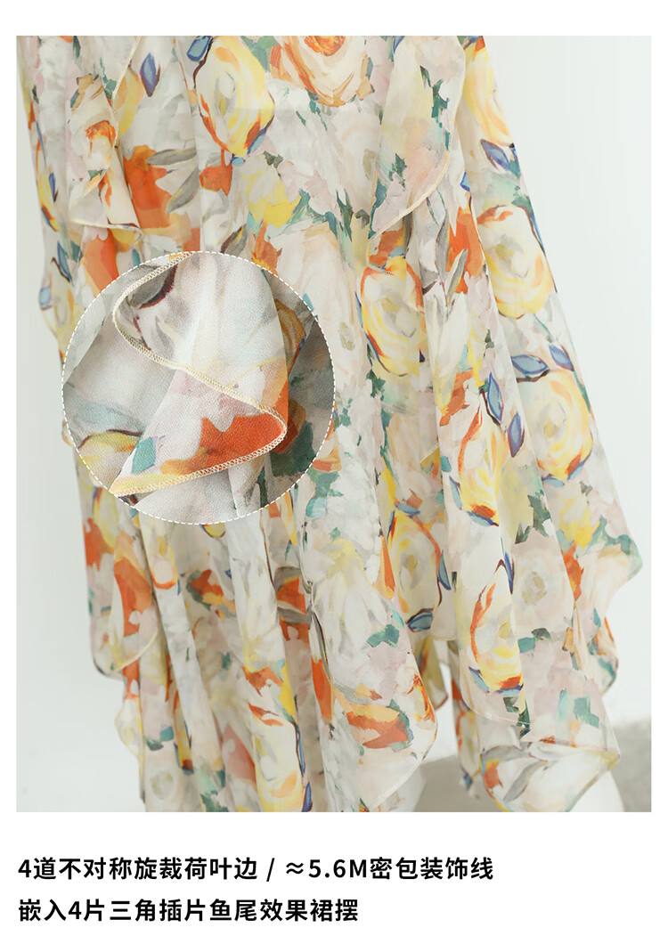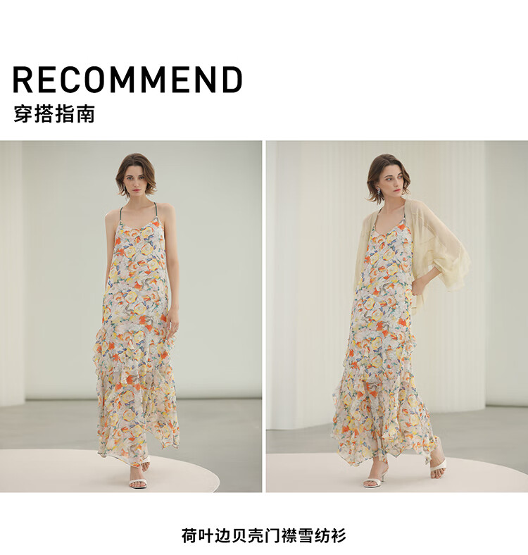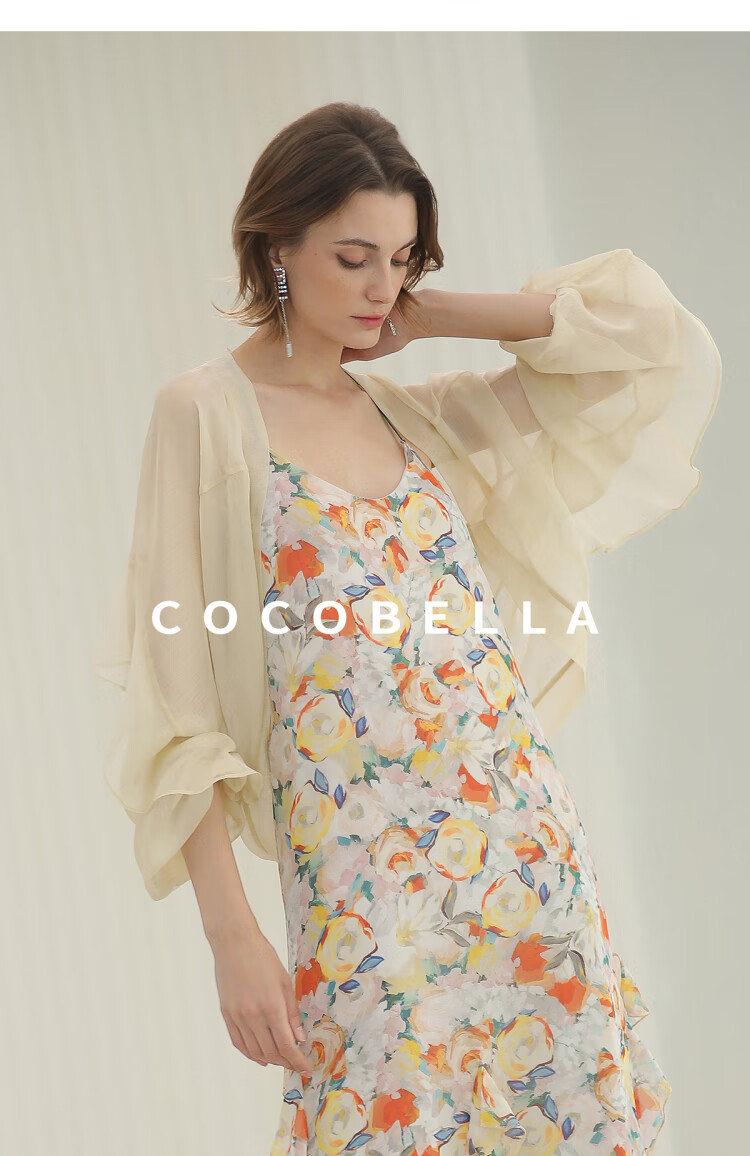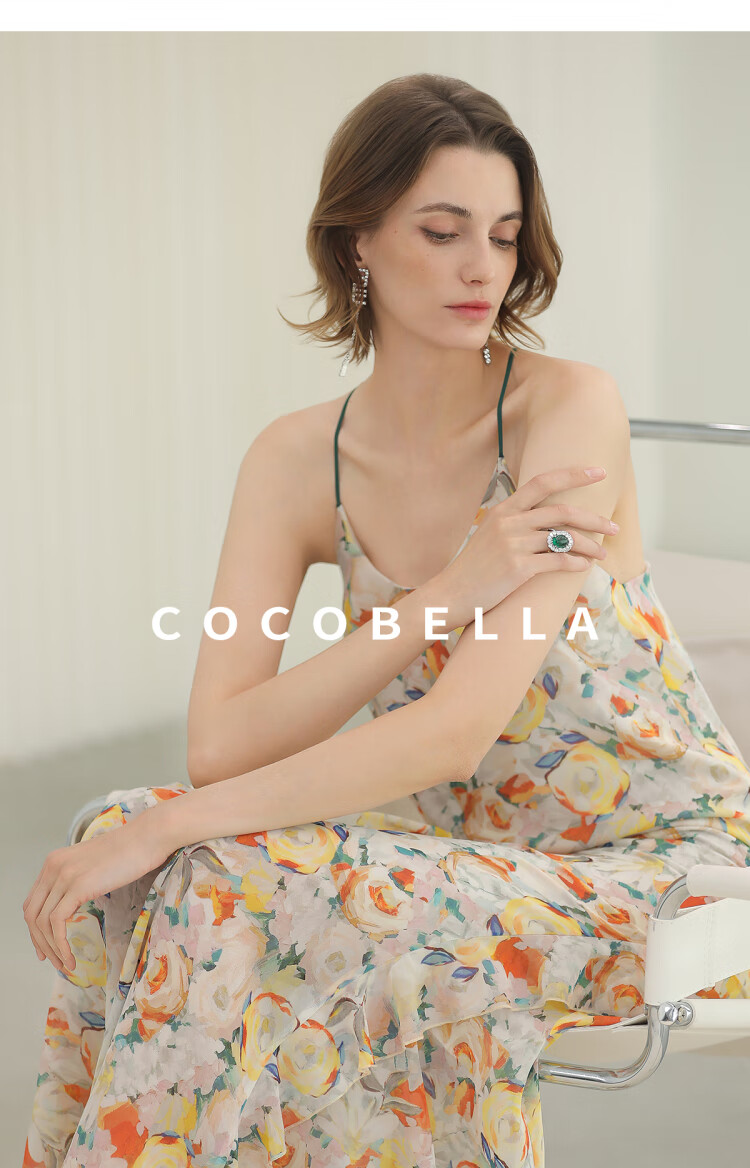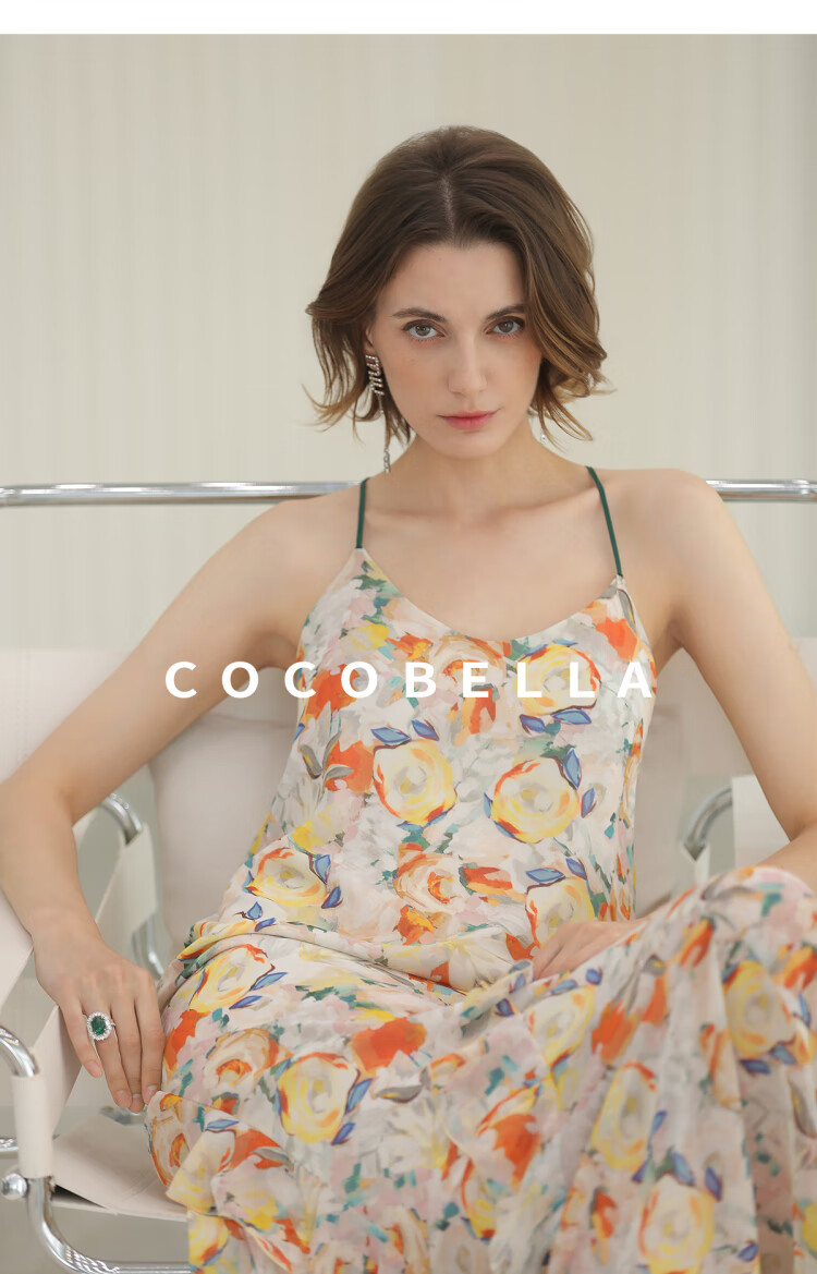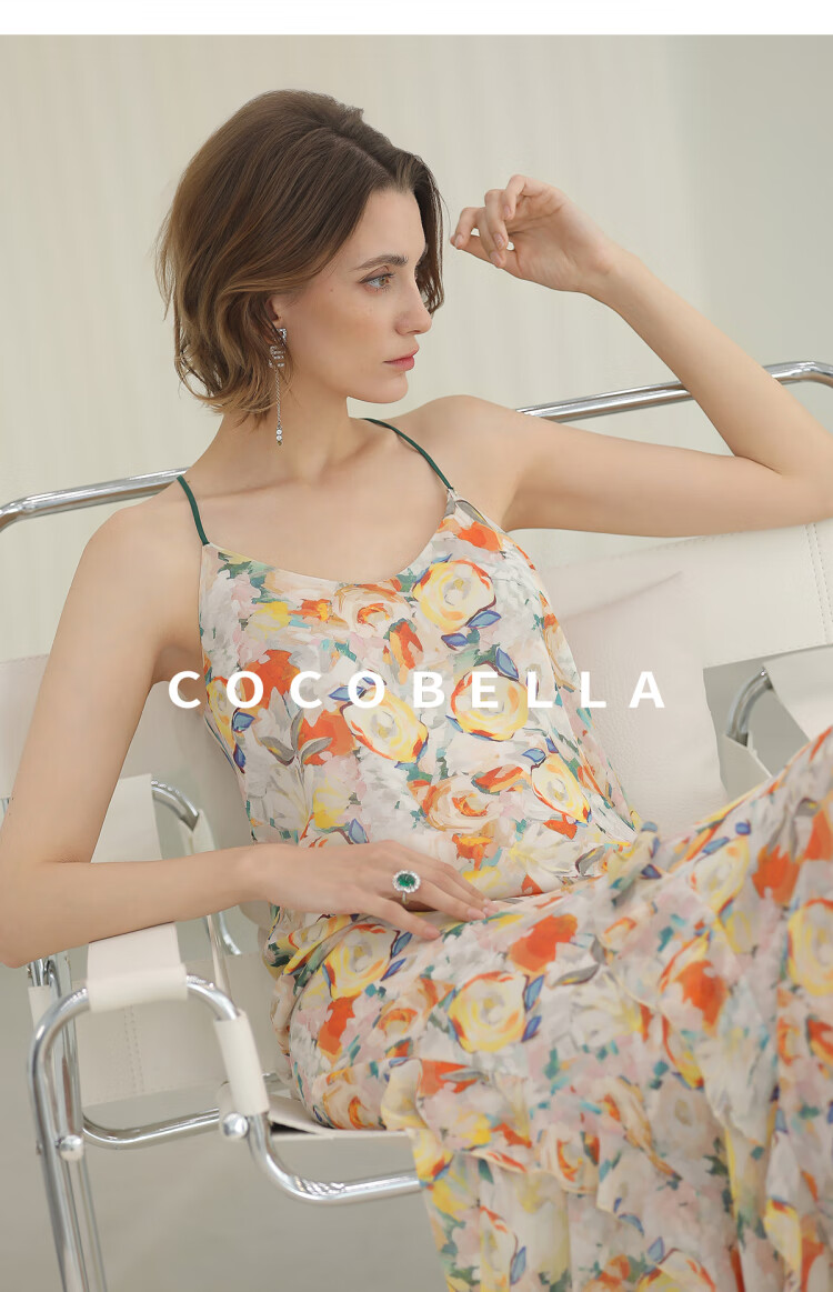 COCOBELLA灵动荷叶边亮彩花卉连衣裙夏飘逸鱼尾吊带裙FR3092