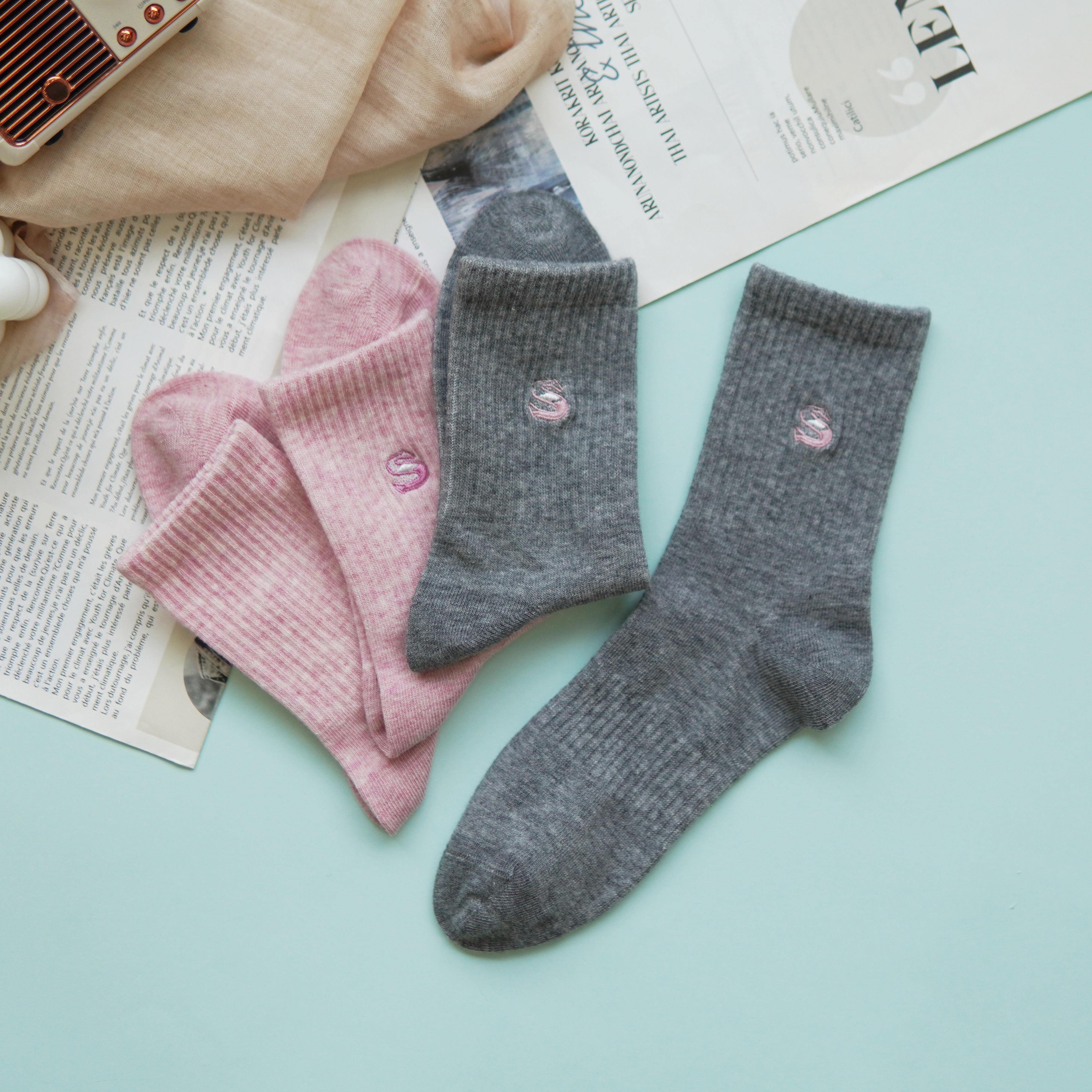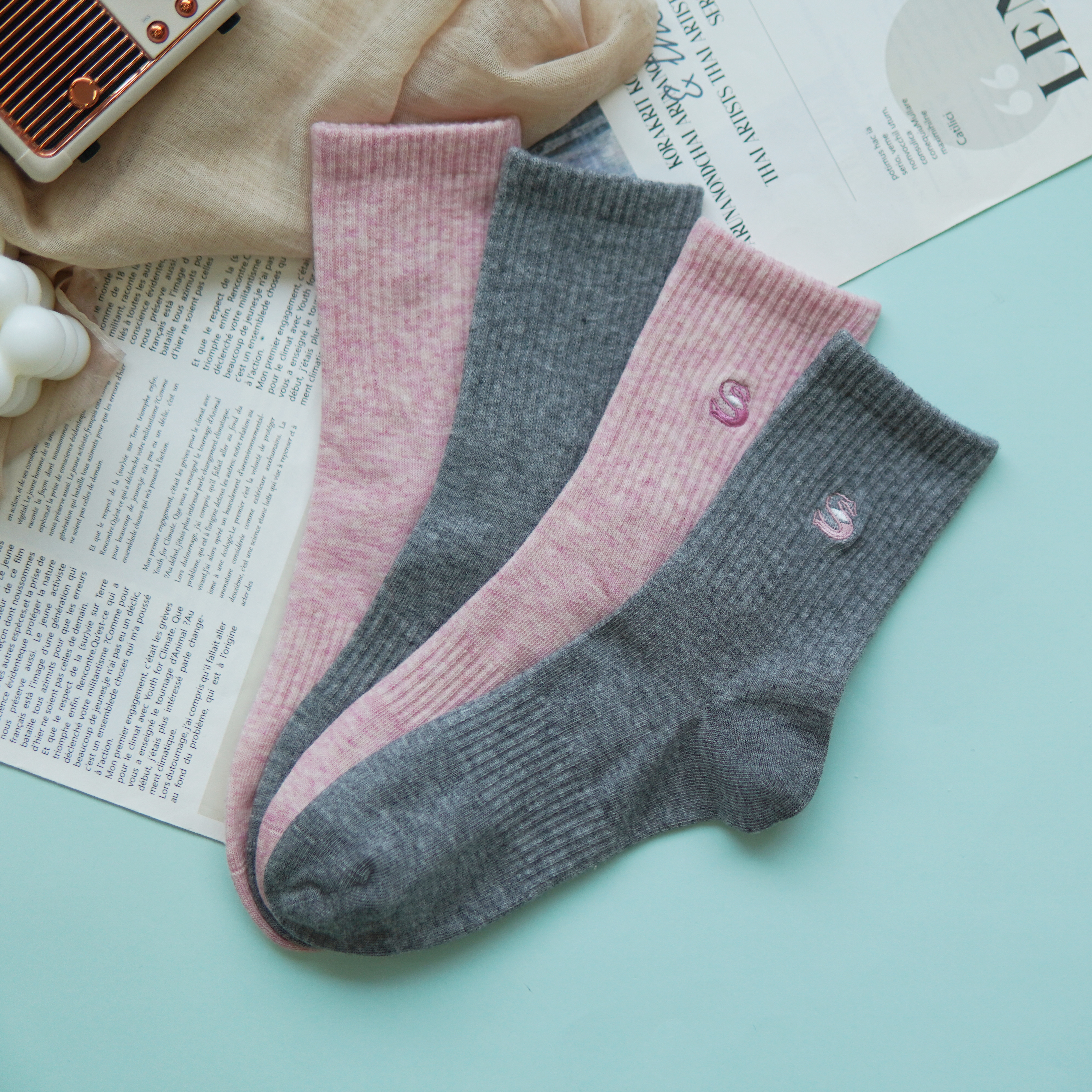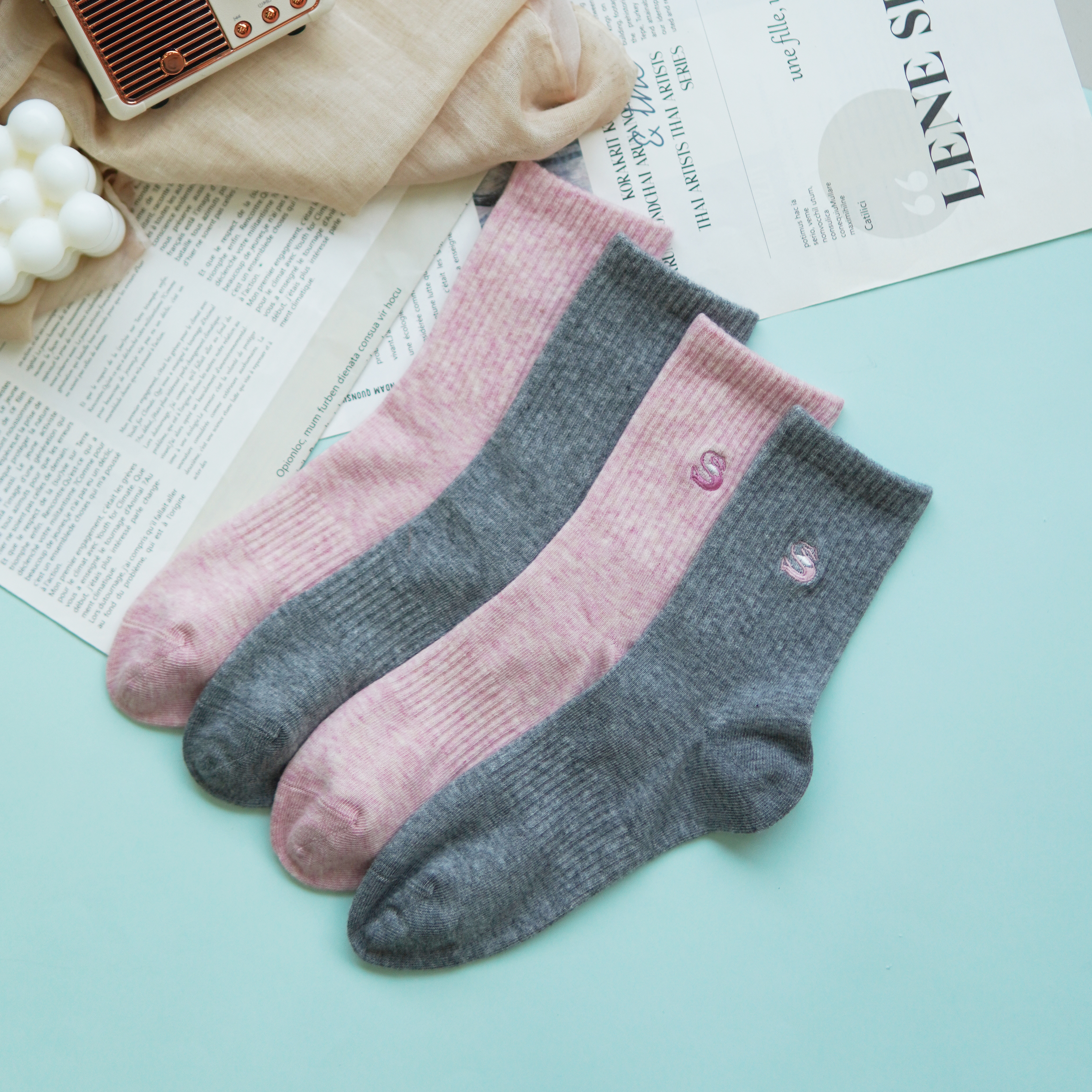 【2双装】女士中长筒棉袜休闲运动四季袜时尚运动女袜【6双6折 2522103】