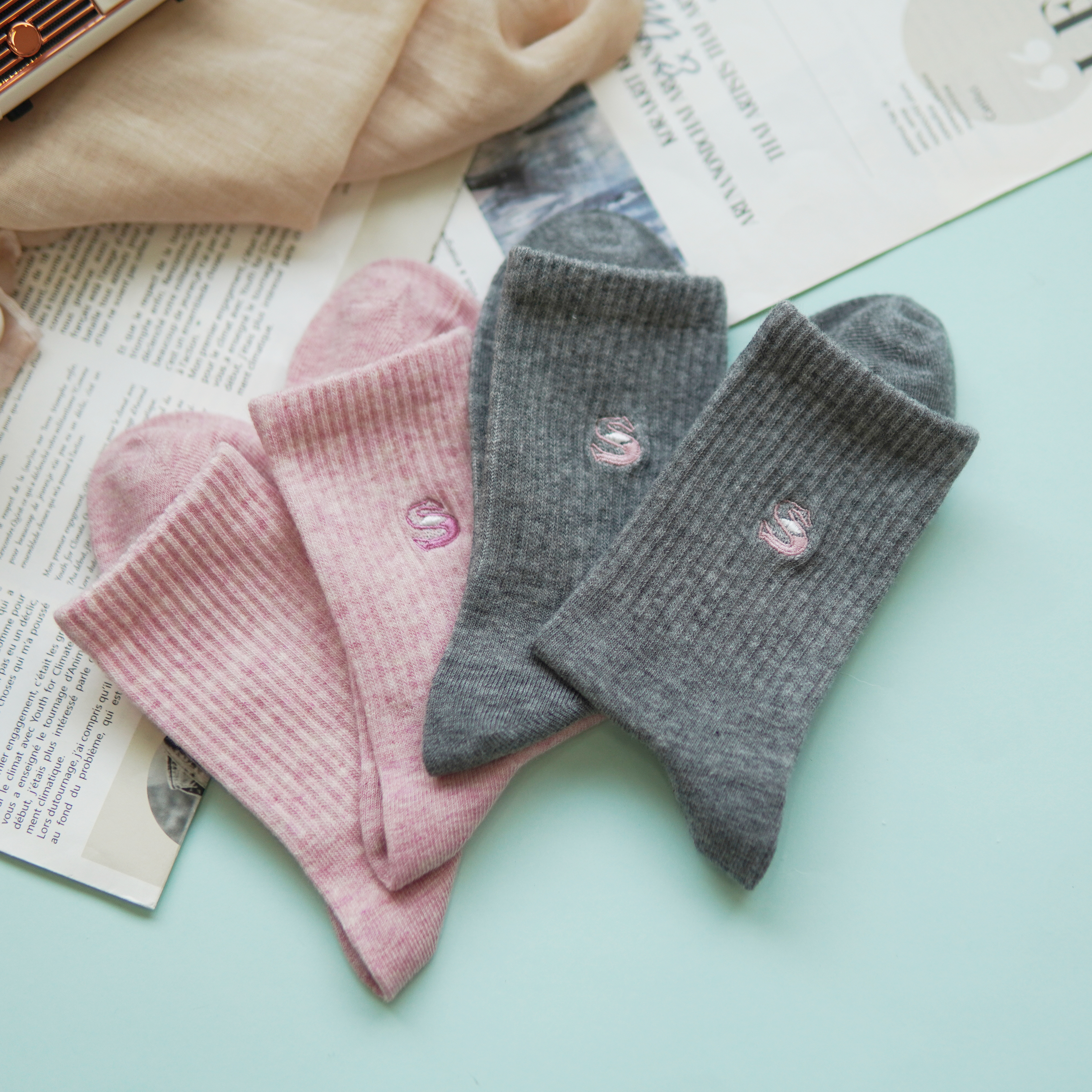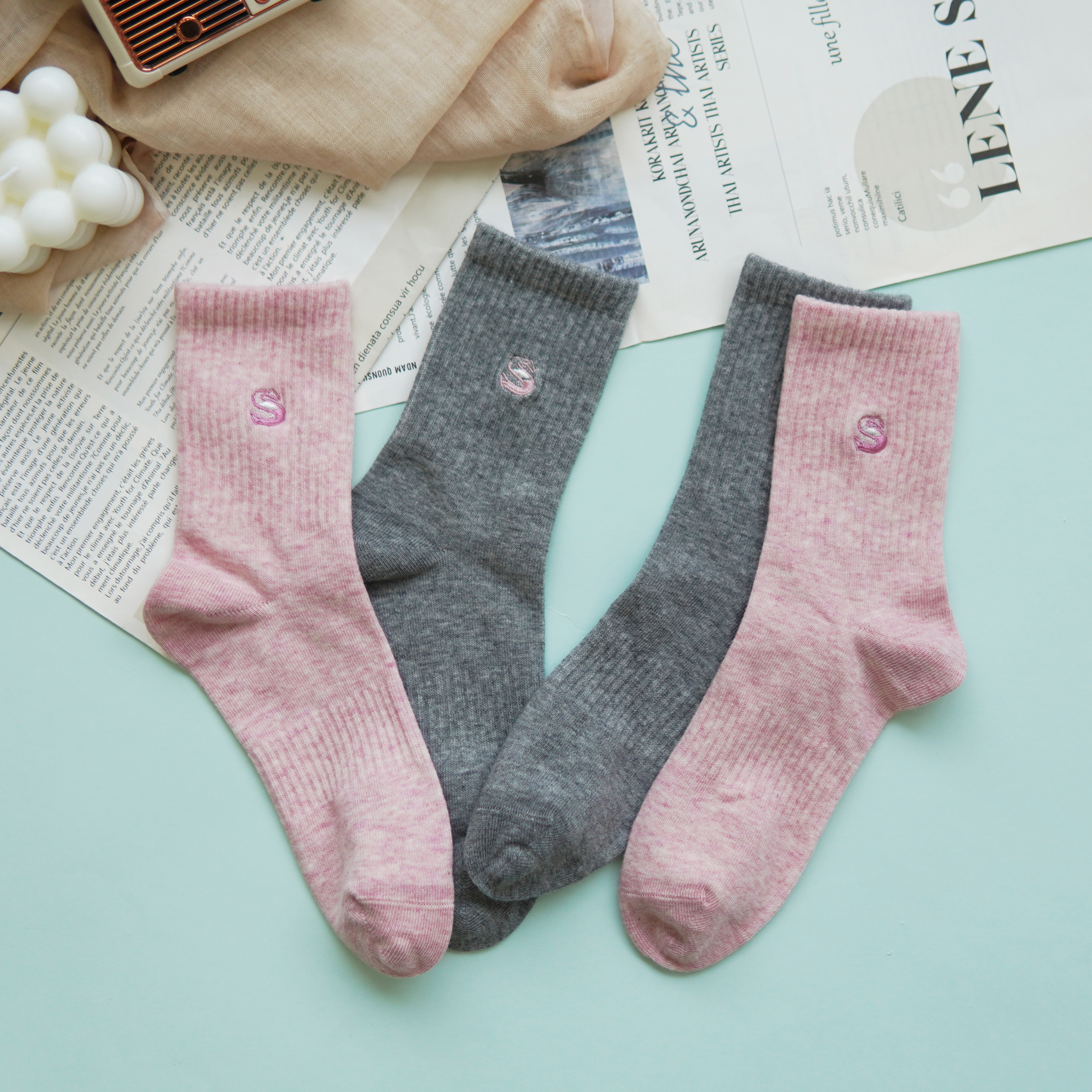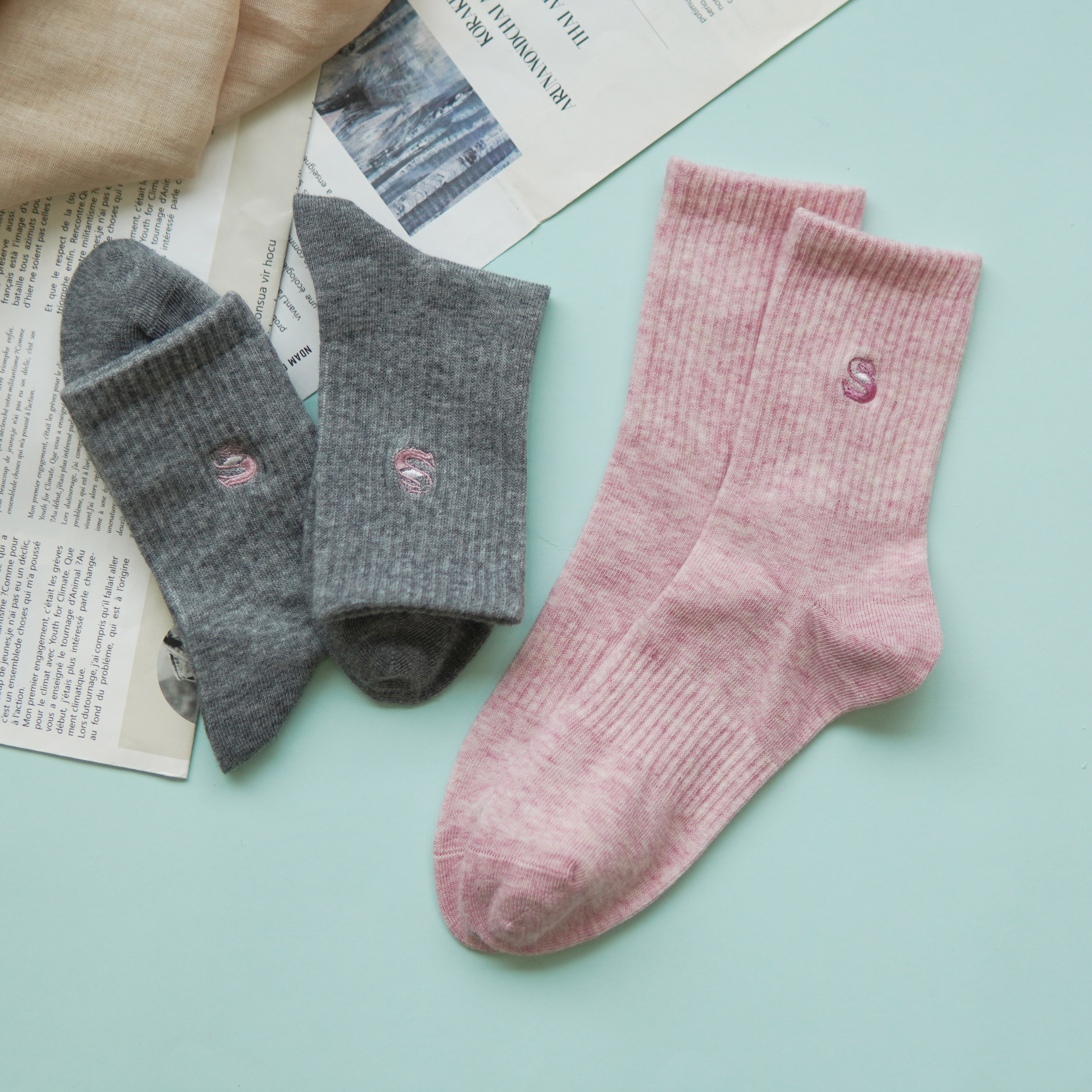 【2双装】女士中长筒棉袜休闲运动四季袜时尚运动女袜【6双6折 2522103】