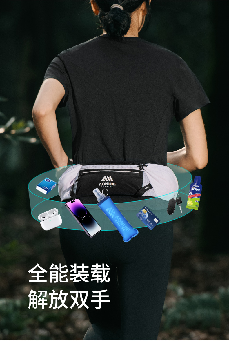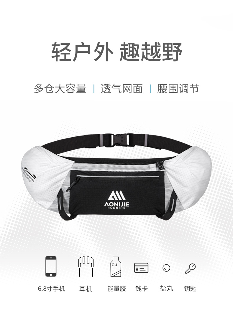 奥尼捷新款轻量化腰包越野腰包户外运动跑步登山徒步运动水壶腰包自带一个软水壶W8138