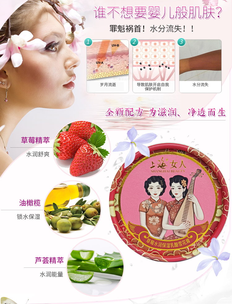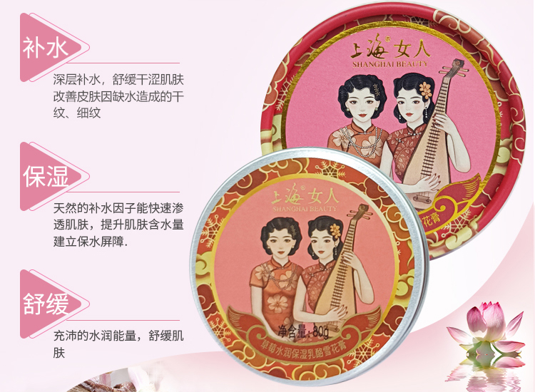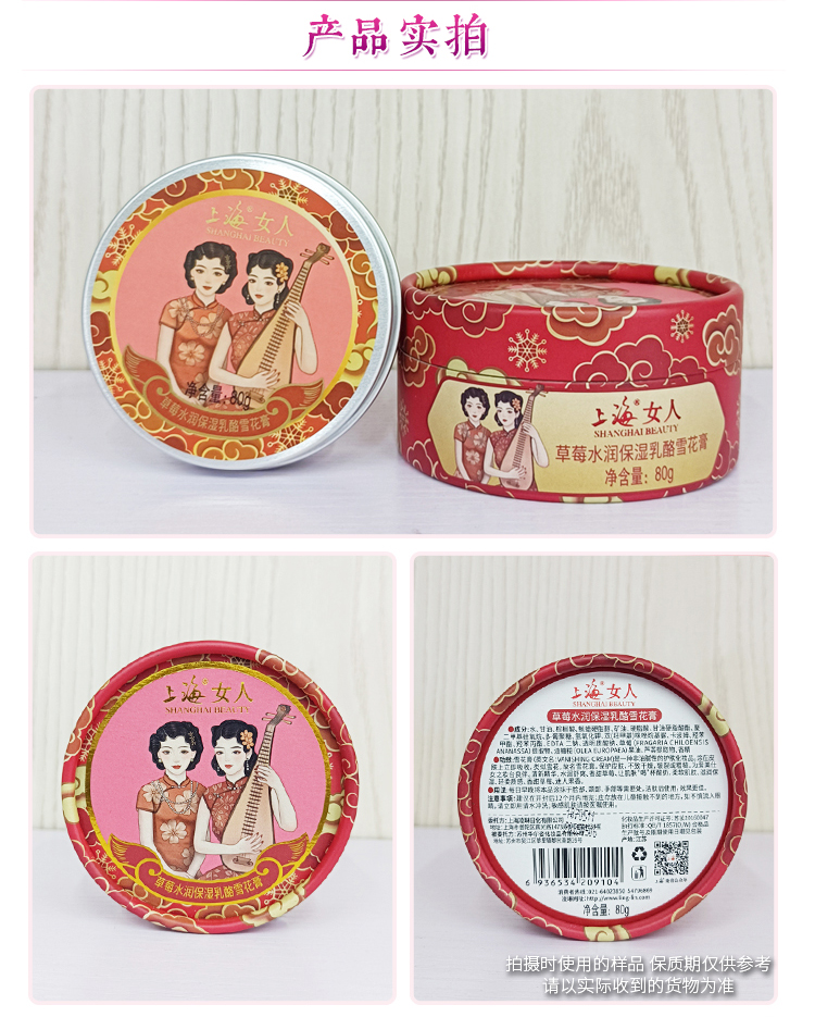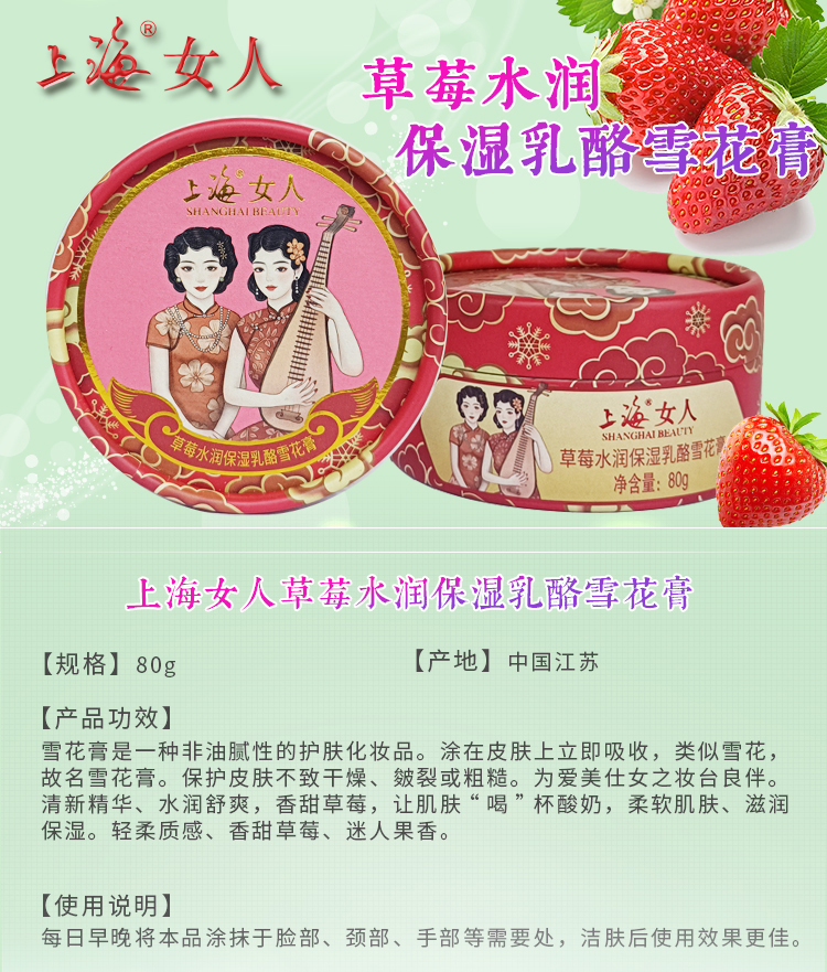临期特价*26年2月*上海女人草莓水润保湿乳酪雪花膏80g