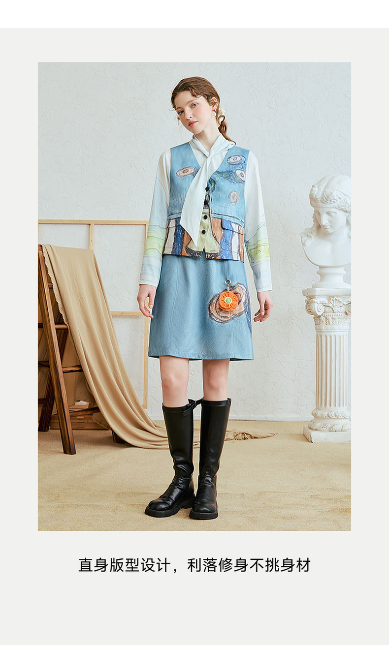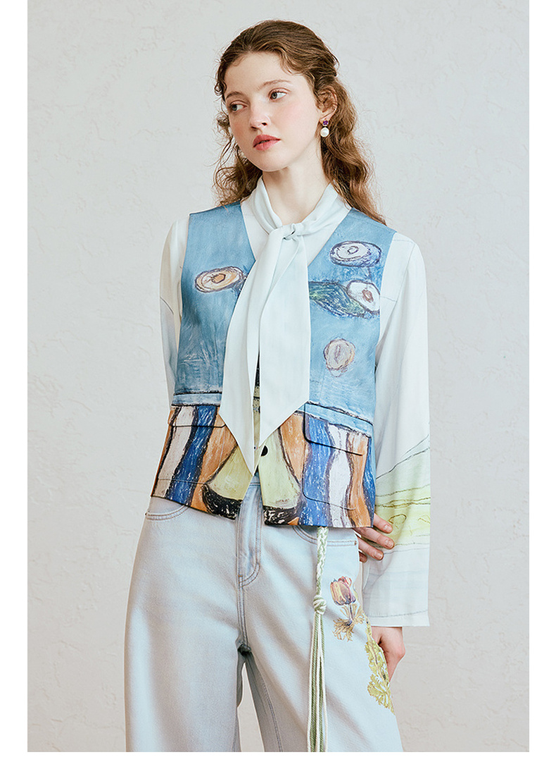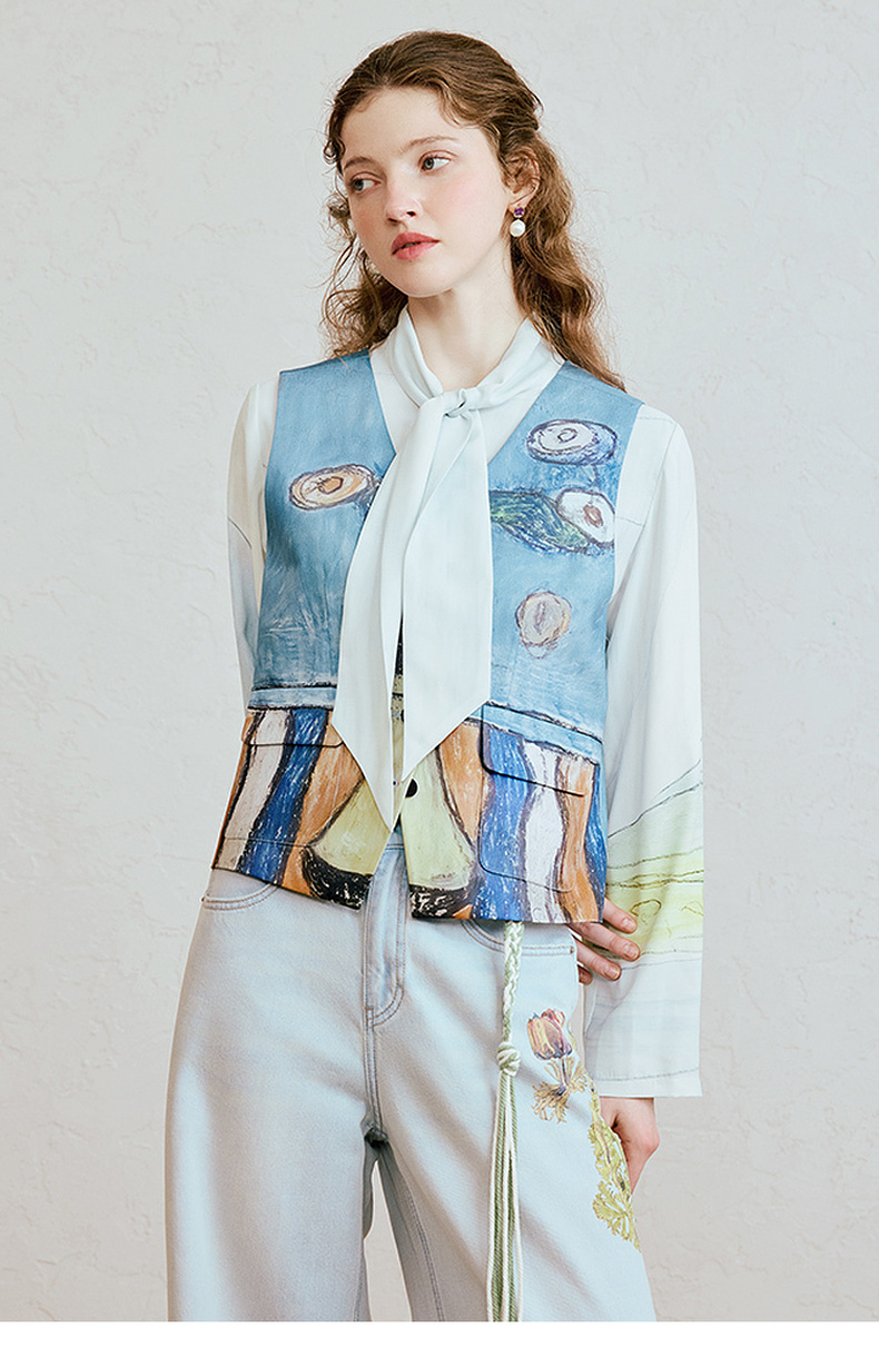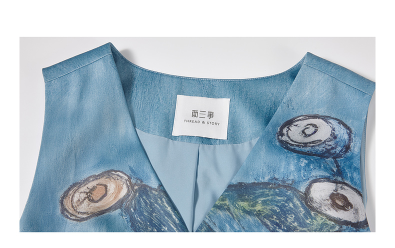 两三事 山河野忘 2025夏季新款文艺风抽象印花马甲外套女宽松
