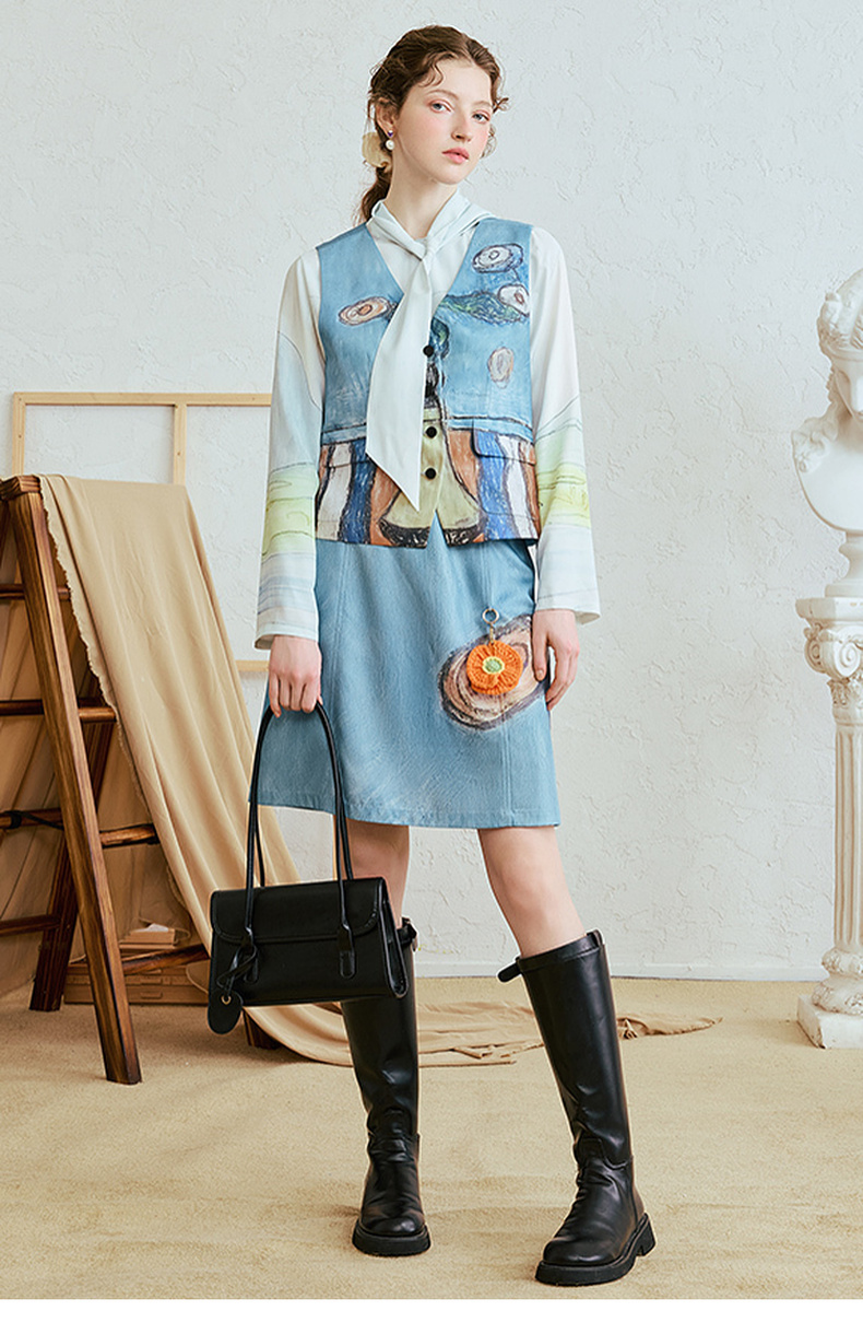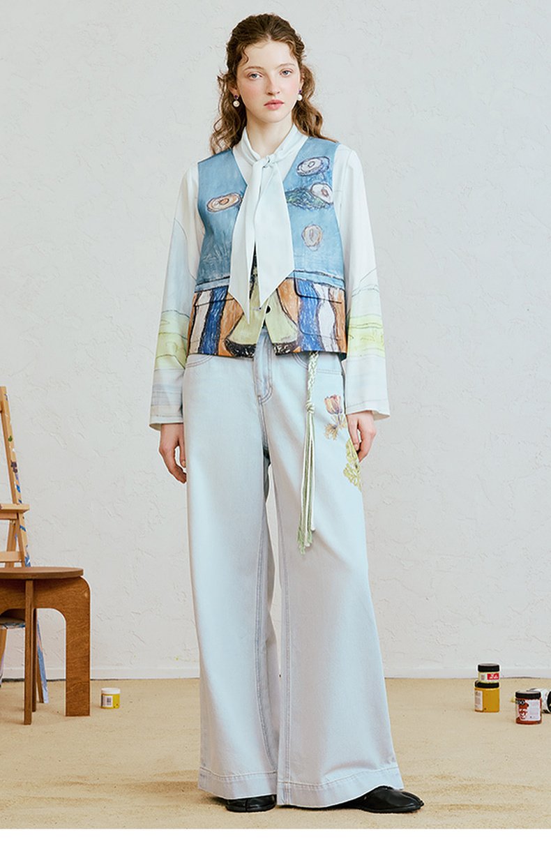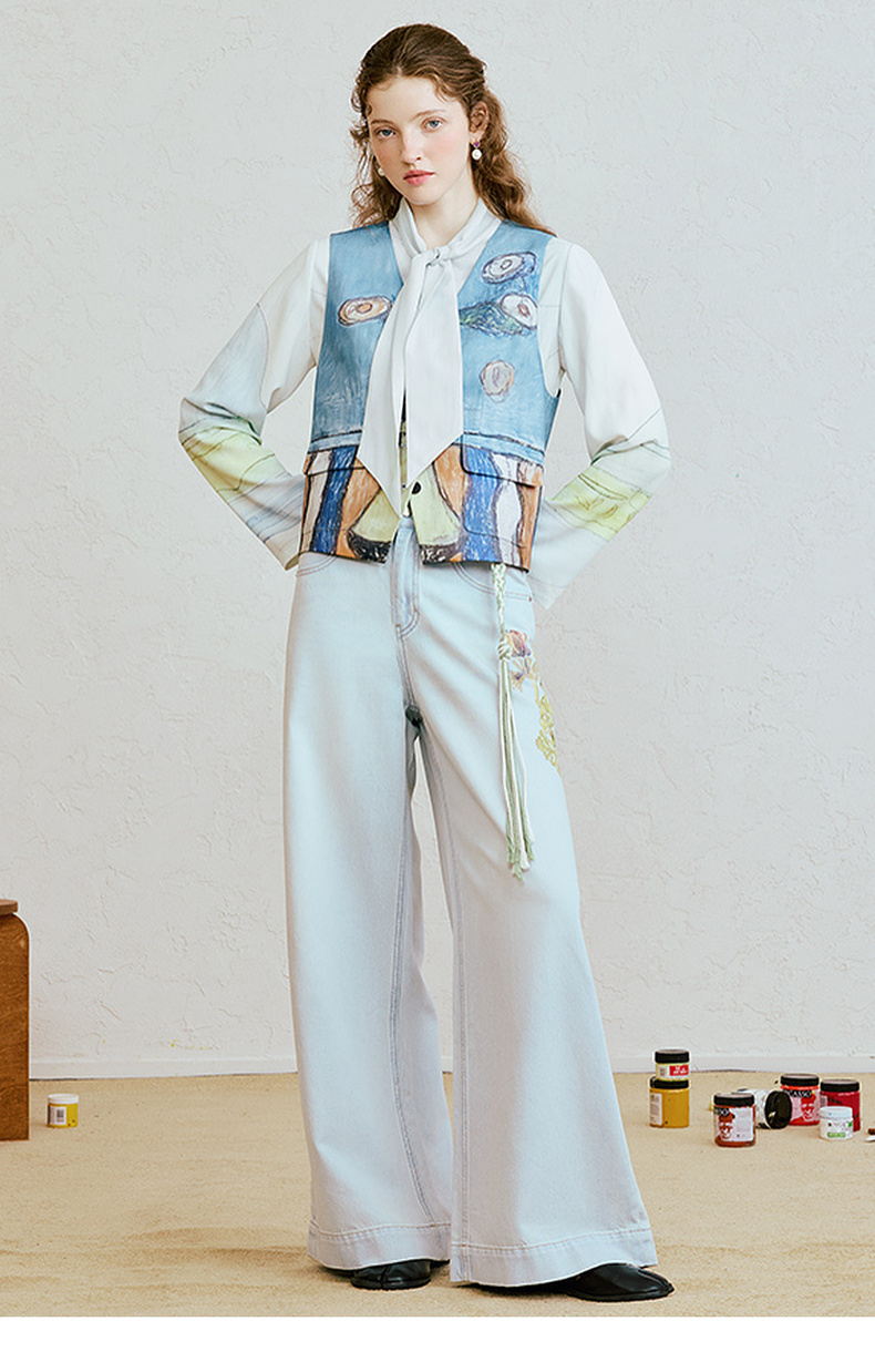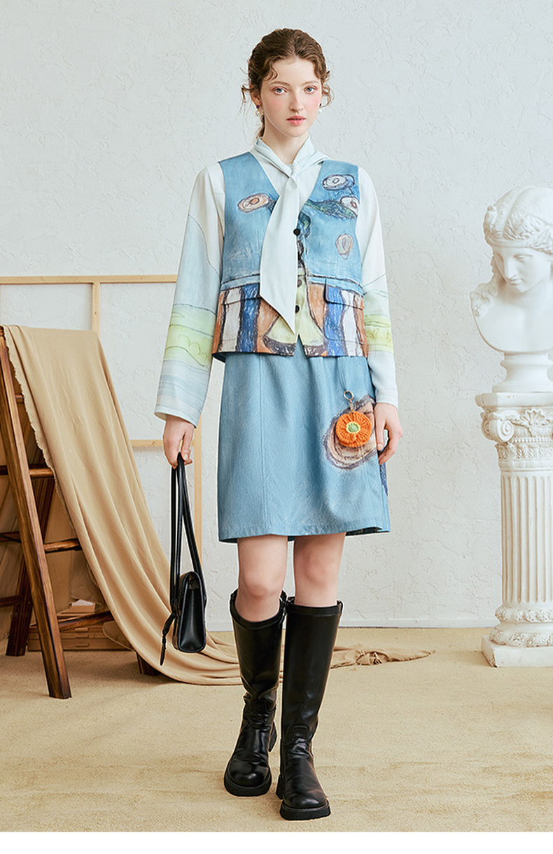两三事 山河野忘 2025夏季新款文艺风抽象印花马甲外套女宽松
