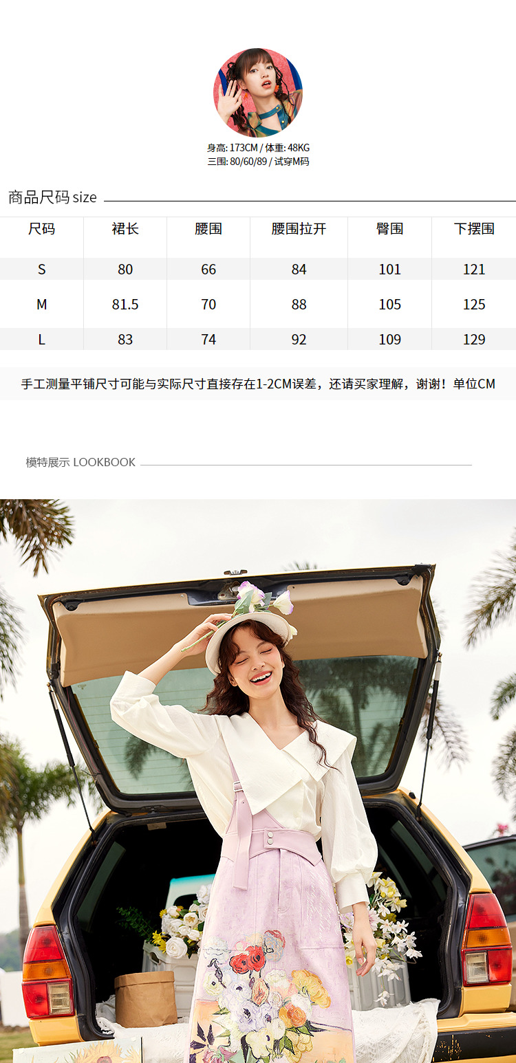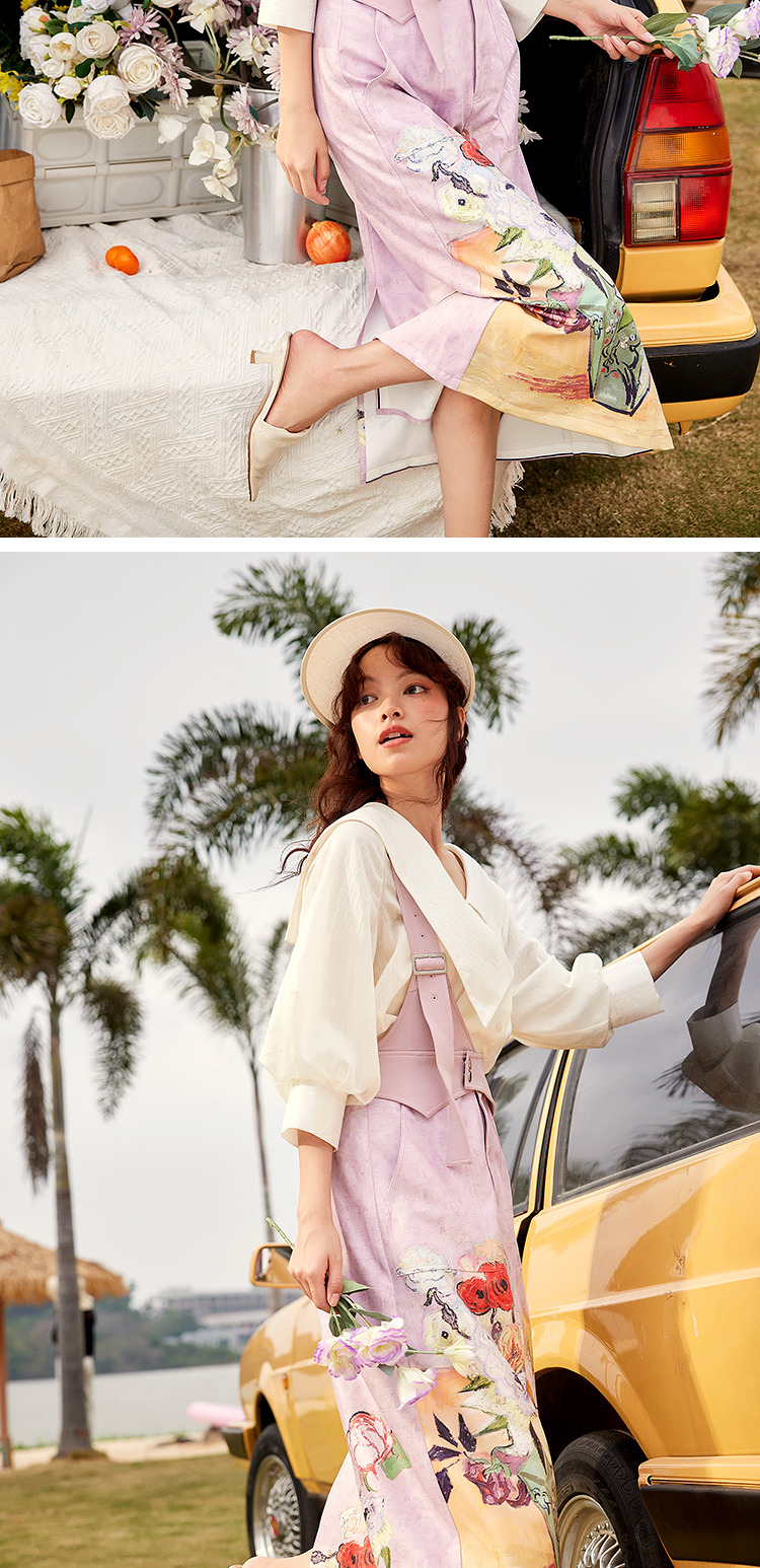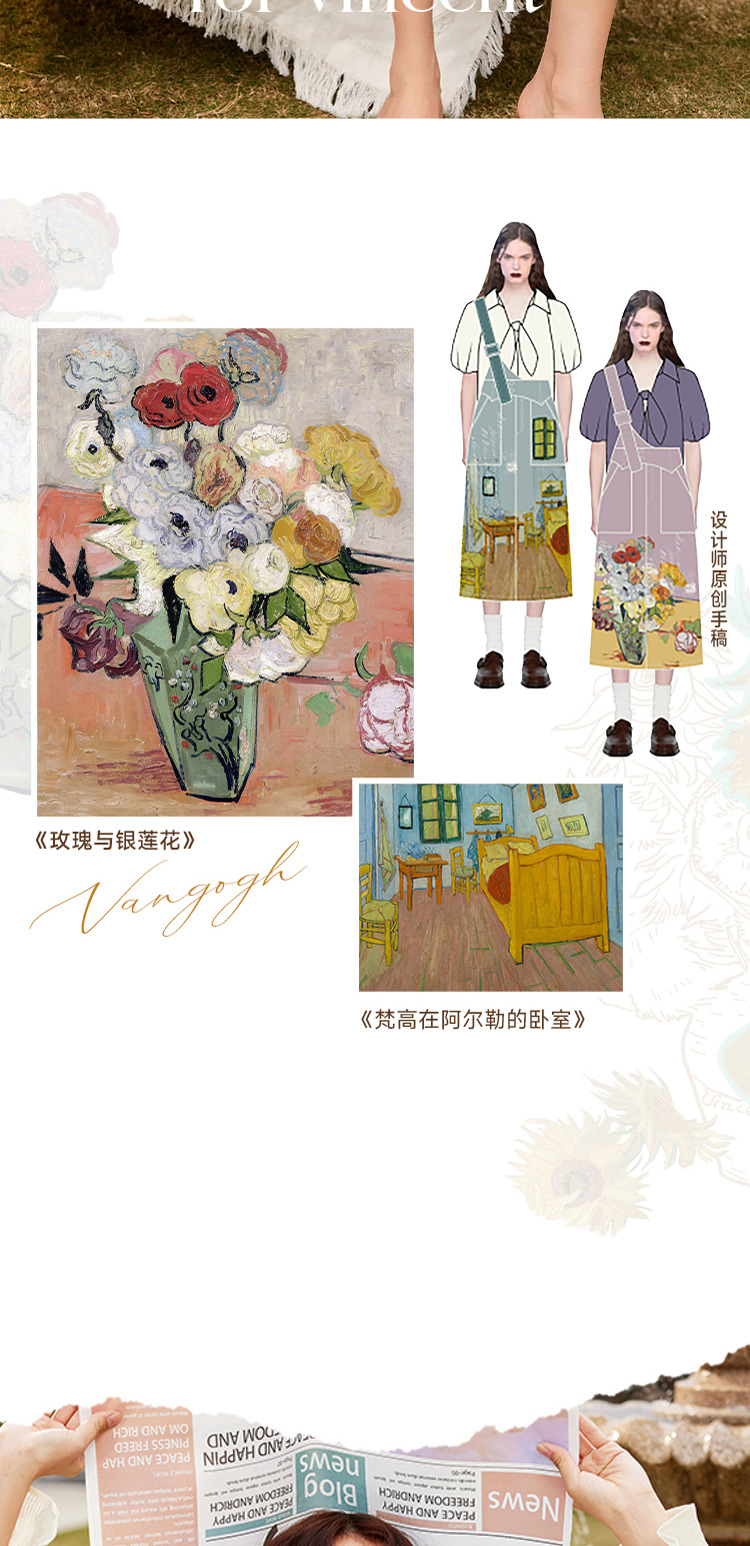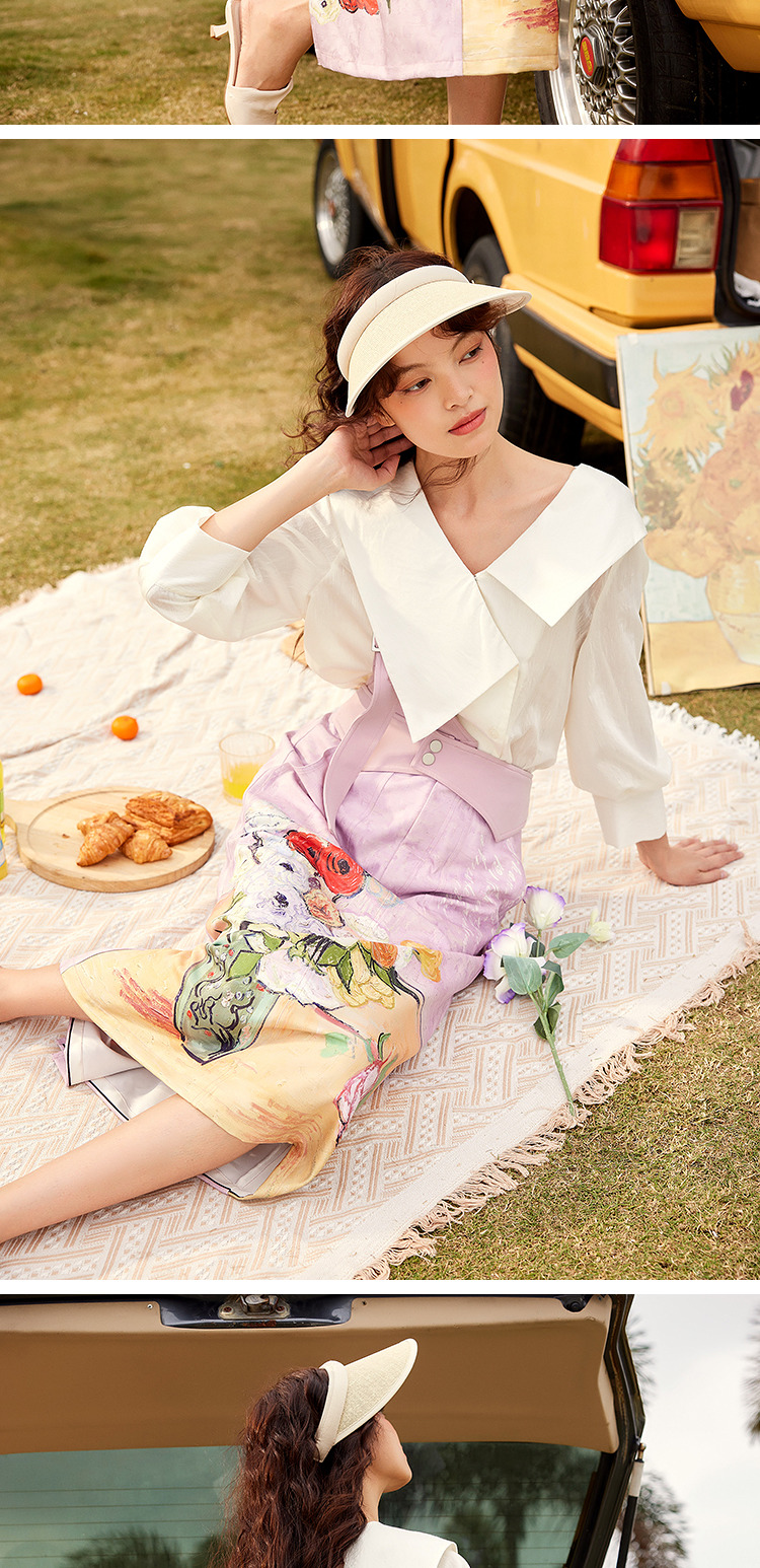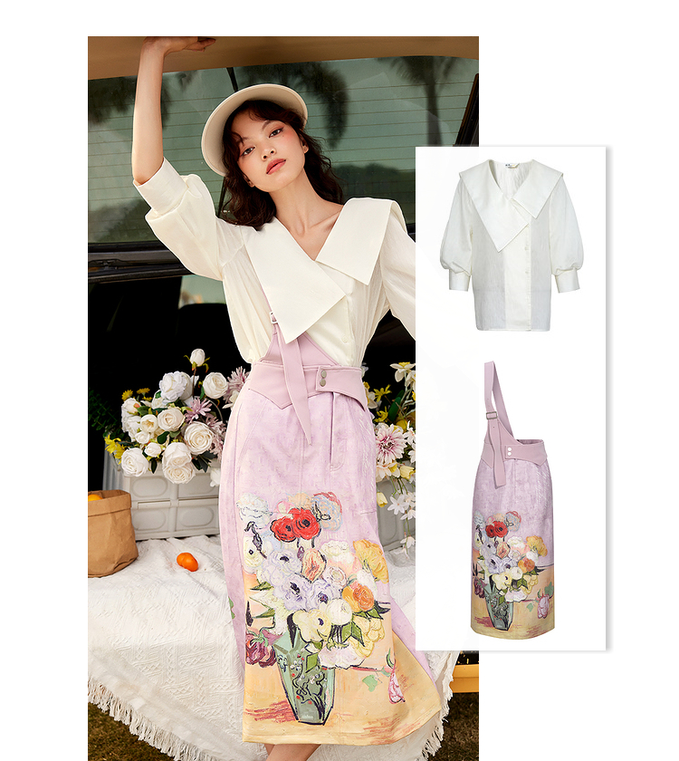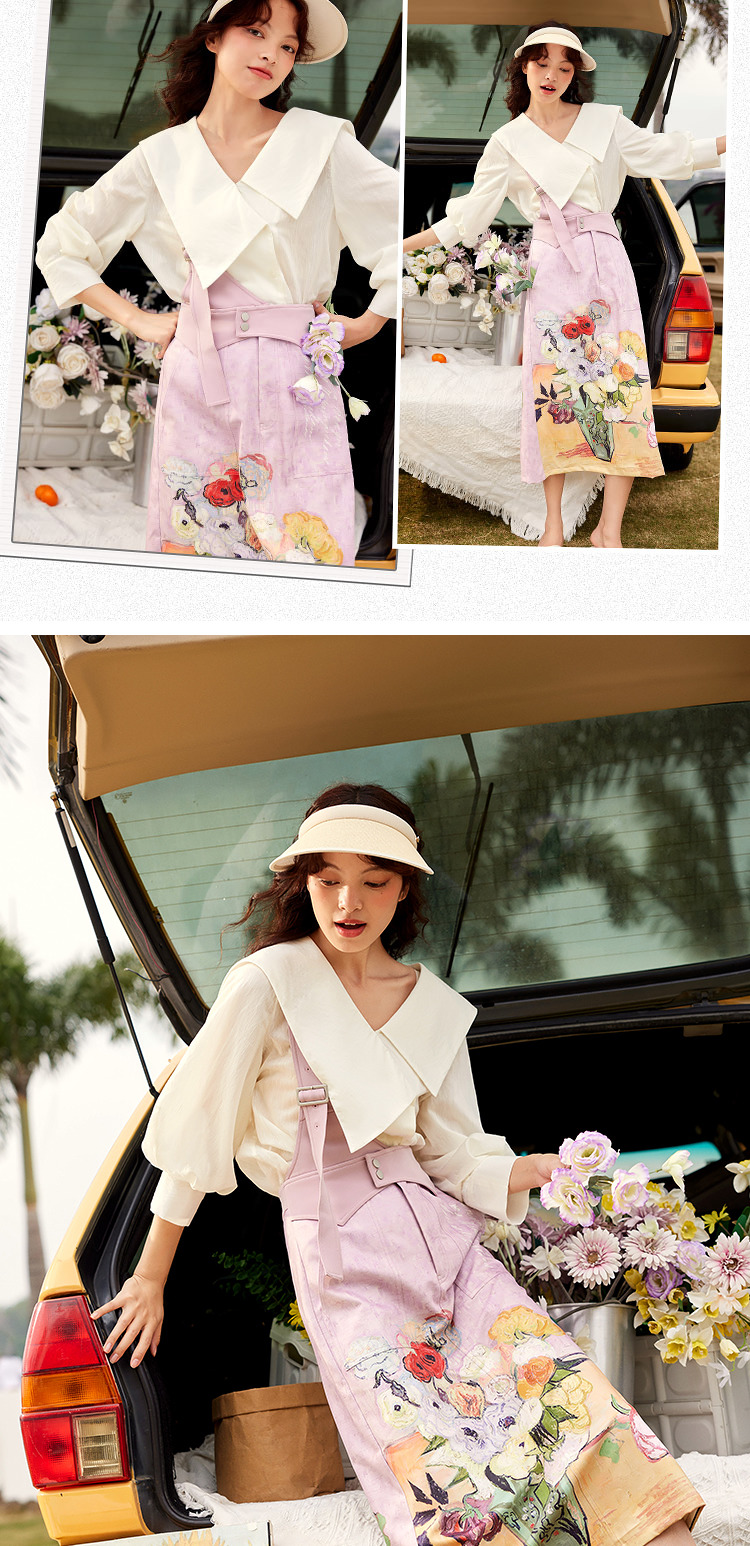 两三事梵高艺术房间与花复古油画印花单边背带半身裙
