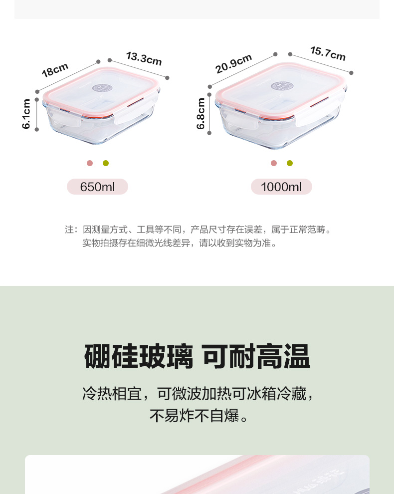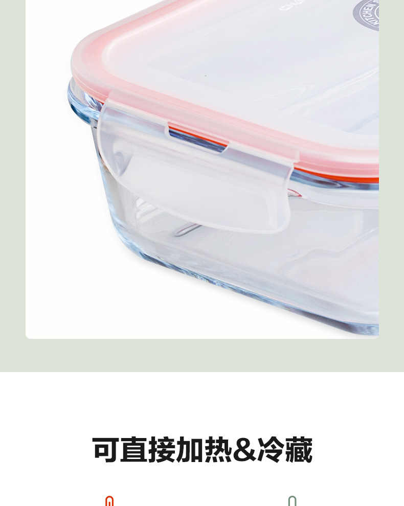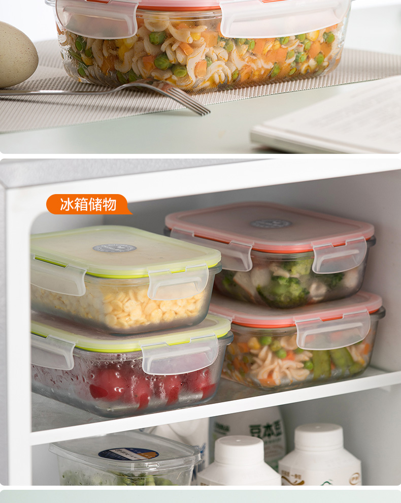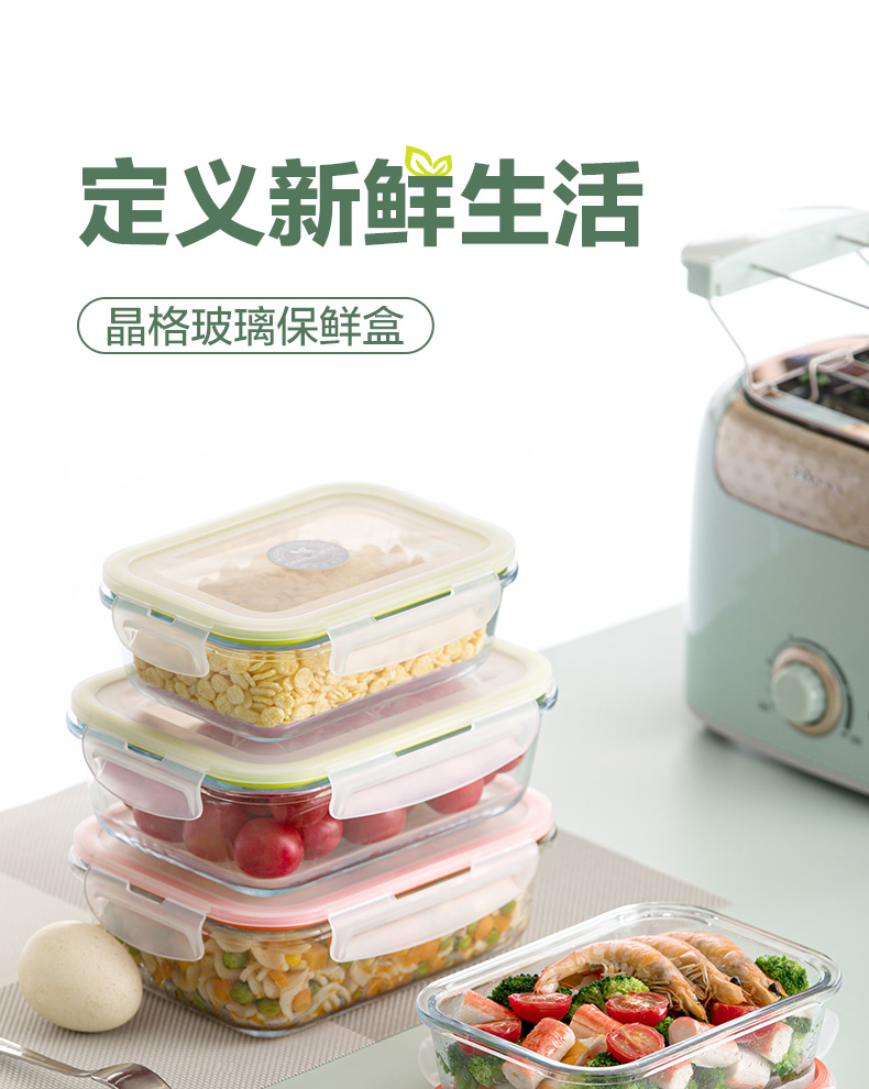 茶花晶格正方形玻璃保鲜盒650ml(随机色)