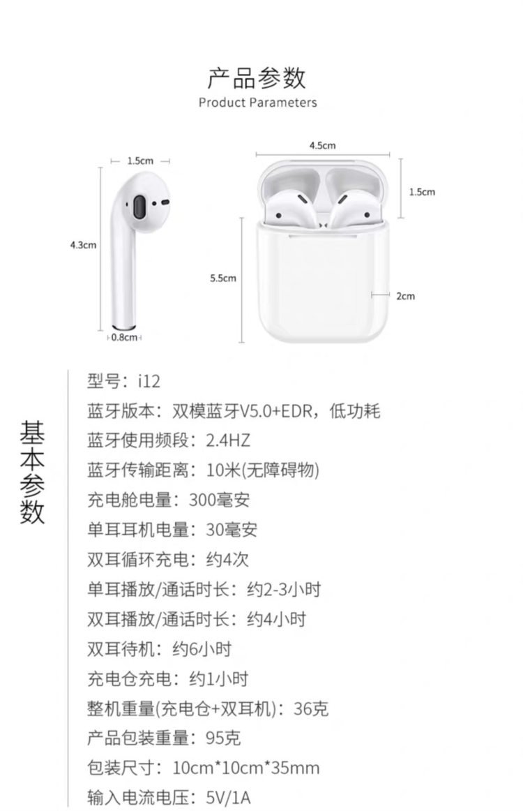 亿米TWS无线蓝牙耳机i12