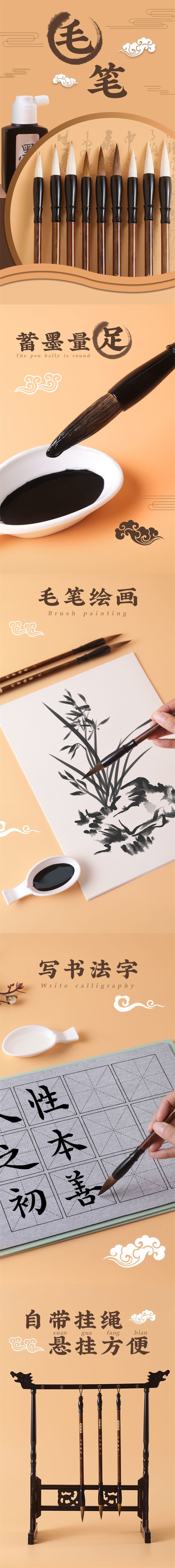 毛笔 狼毫 白云 羊毫 大楷中楷小楷 3支装 学生纯毛书法练习工笔 国画书文房四宝全套初学者套装