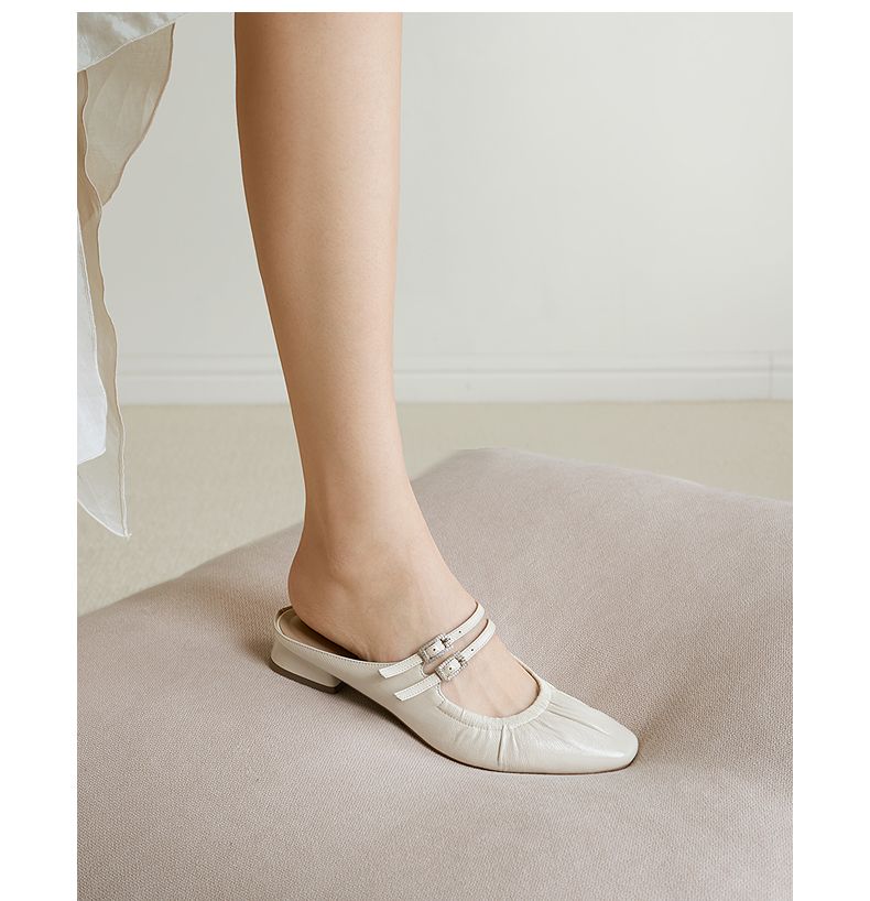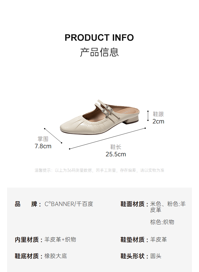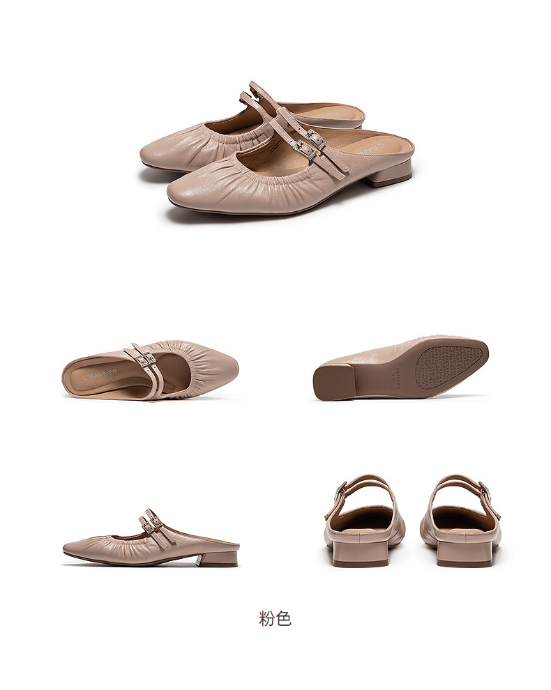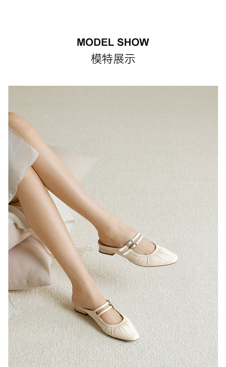 千百度轻奢羊皮褶皱包头拖女2026夏季新款低跟玛丽珍外穿凉拖鞋A26287211