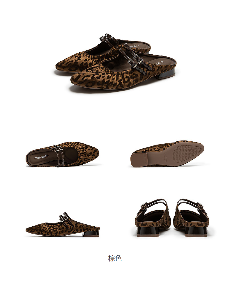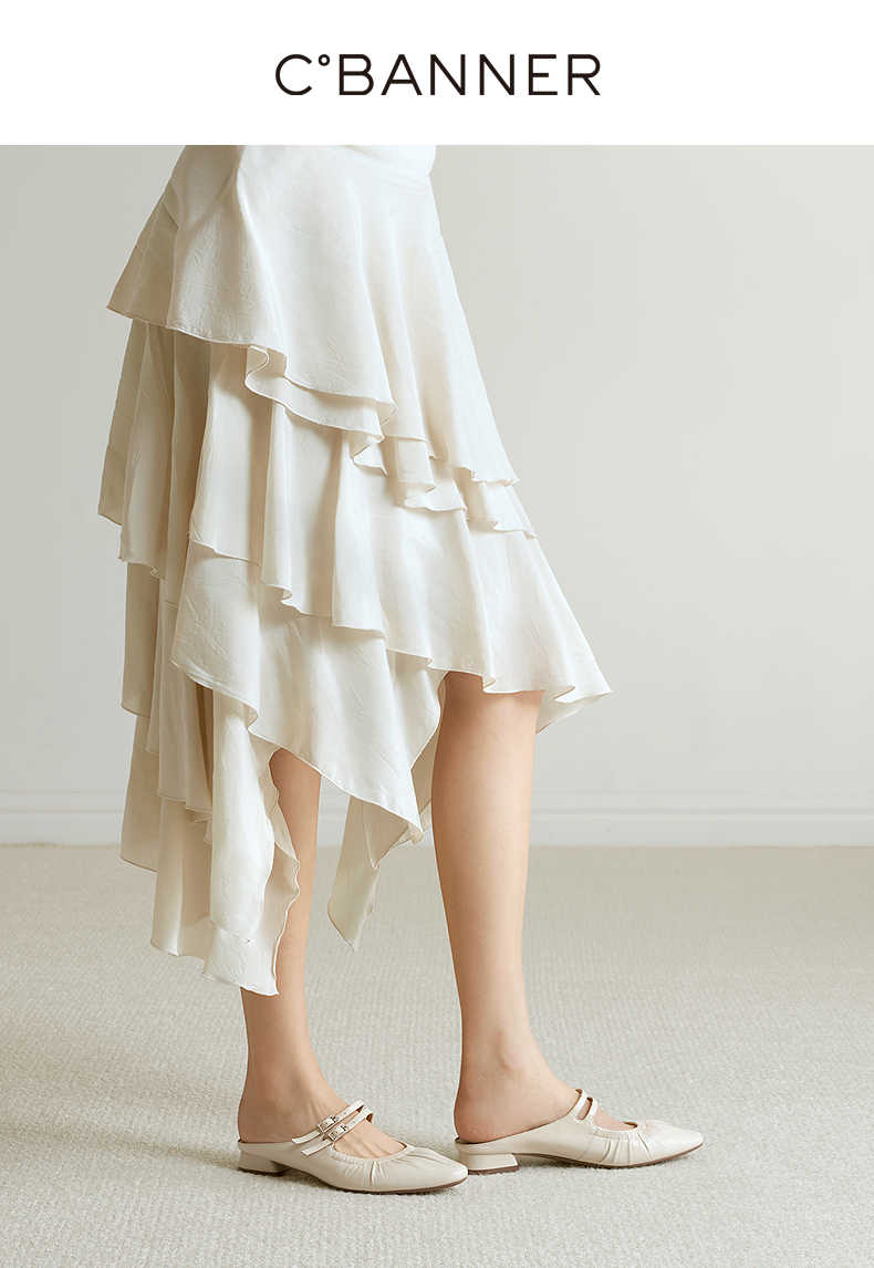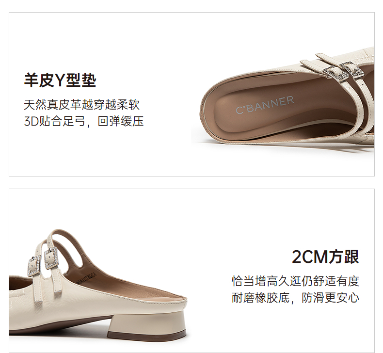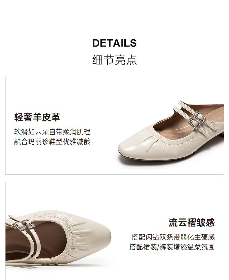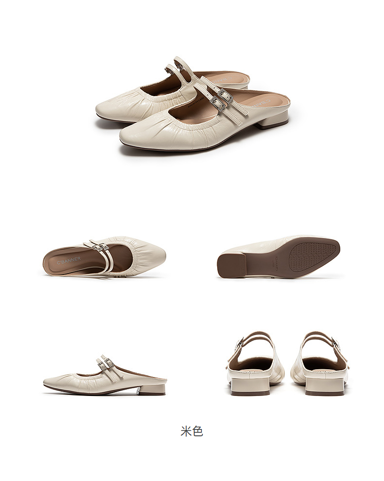 千百度轻奢羊皮褶皱包头拖女2026夏季新款低跟玛丽珍外穿凉拖鞋A26287211