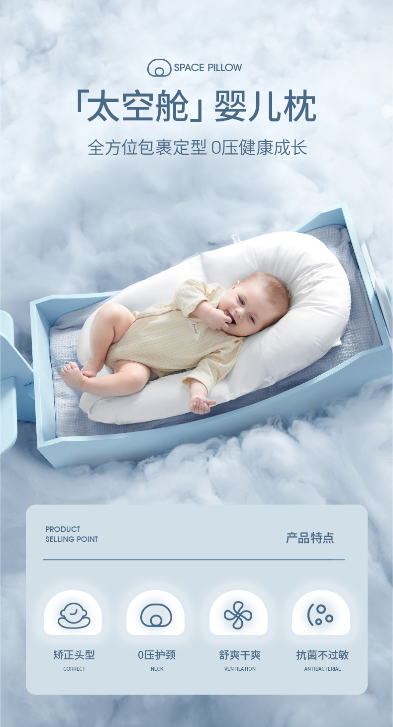 【宝宝安睡】嫚熙太空舱婴儿定型枕纠正头型防惊吓