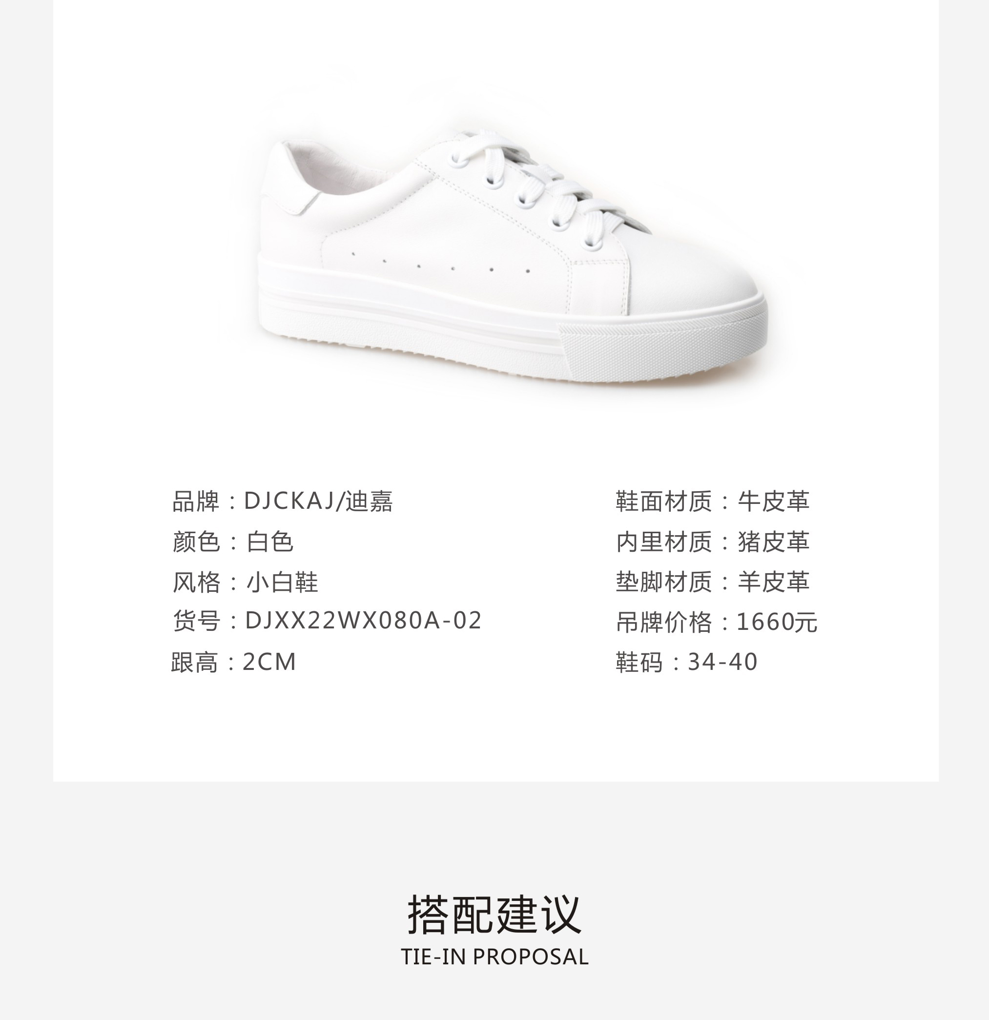 豪麟名鞋迪嘉女装牛皮革休闲小白鞋DJXXD22WX080白色
