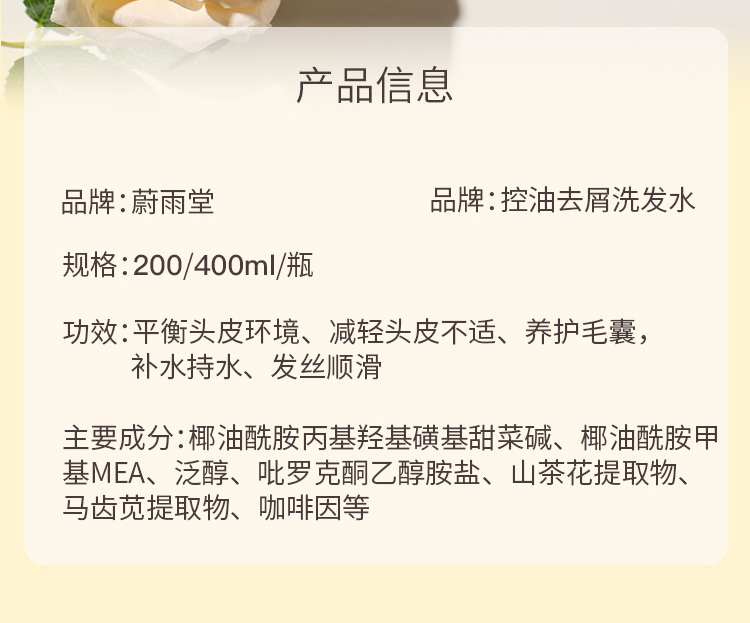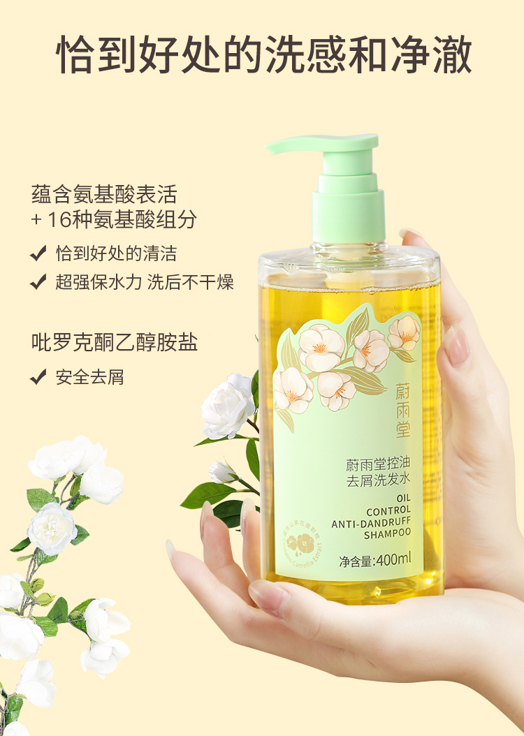 蔚雨堂控油去屑洗发水200ml/400ml,山茶花清香,控油去屑【G】