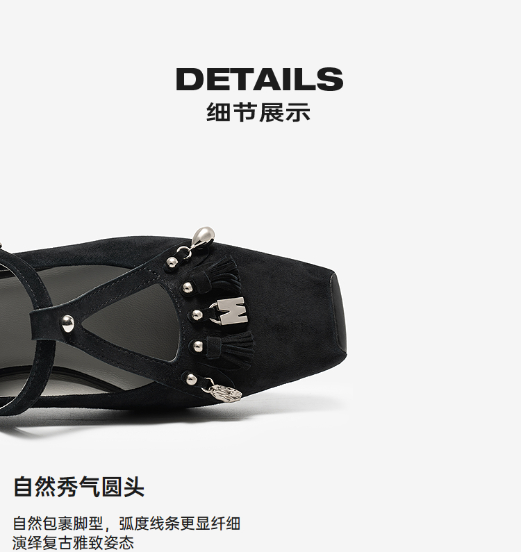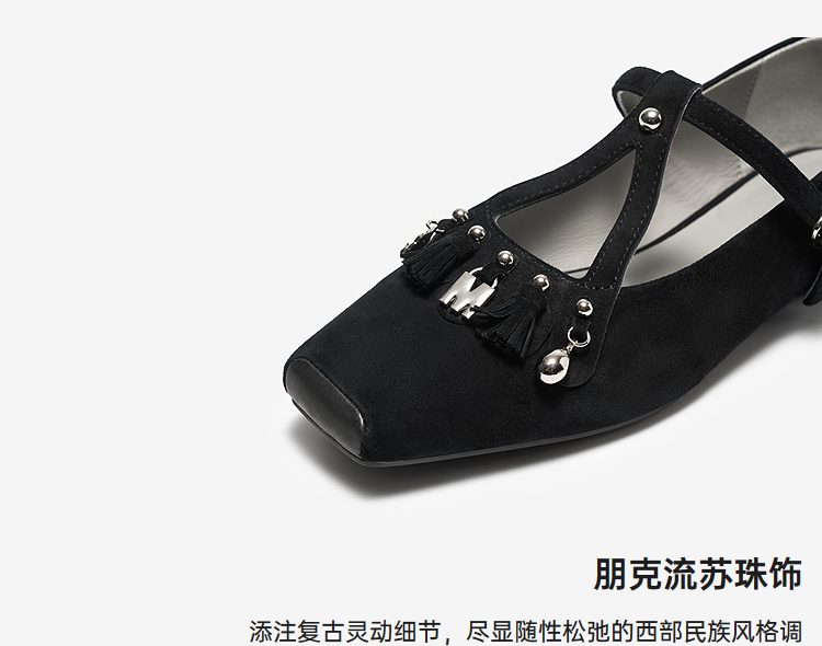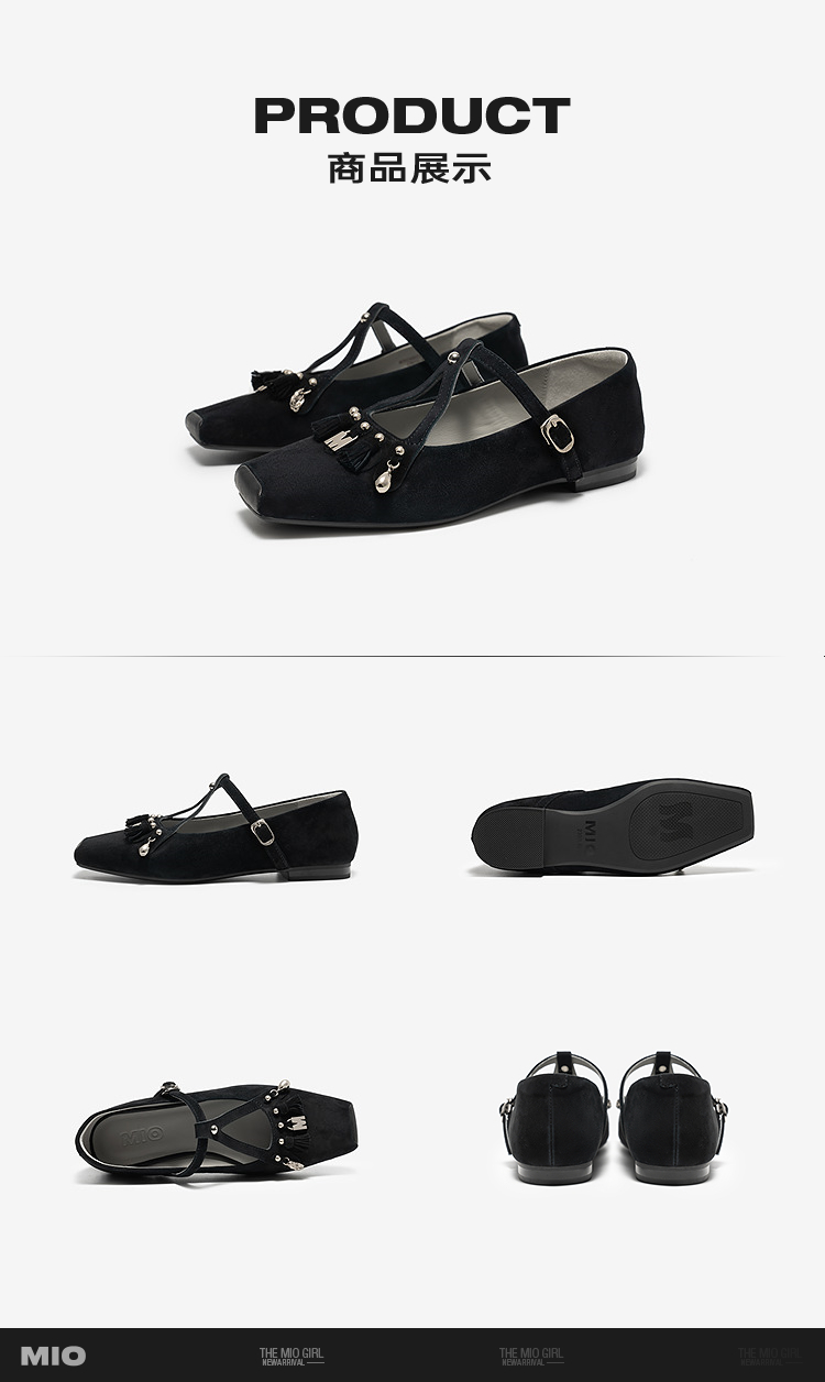 MIO米奥2026春季新款玛丽珍鞋方头低跟T字带扣带流苏浅口单鞋女鞋M261440727