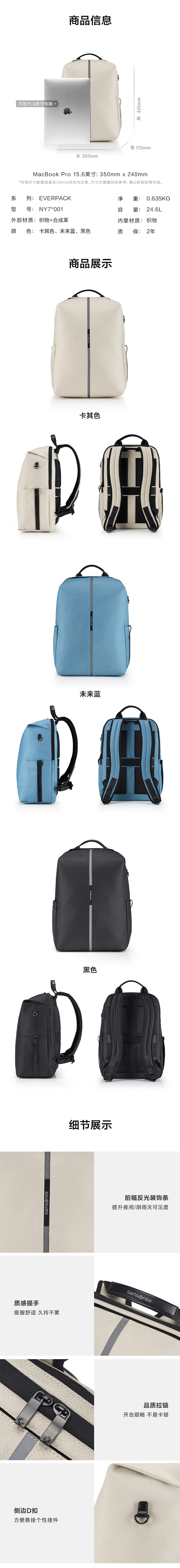 新秀丽EVERPACK系列轻量化出行简约设计大容量双肩包NY7*001