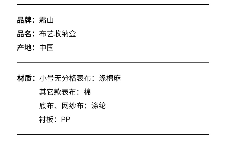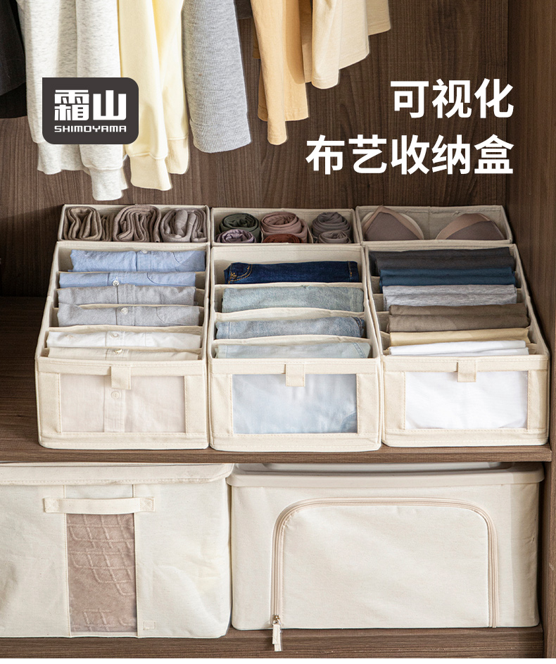 霜山布艺收纳盒可折叠宿舍衣柜整理盒家用整理桌面杂物储物盒