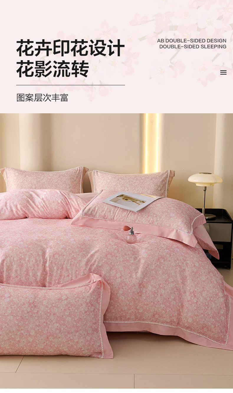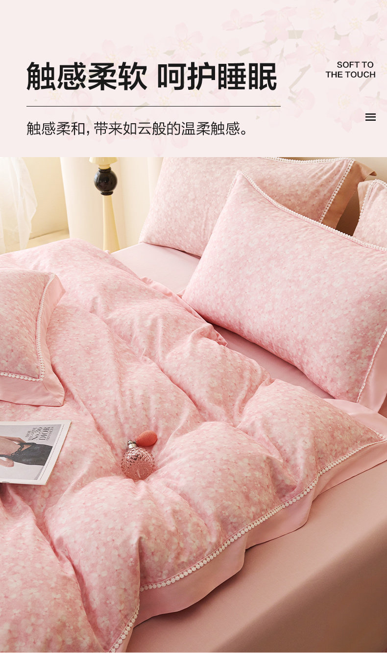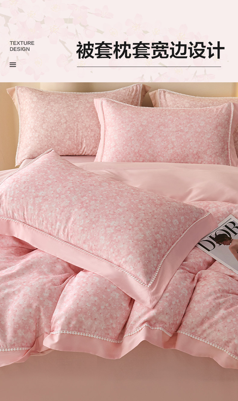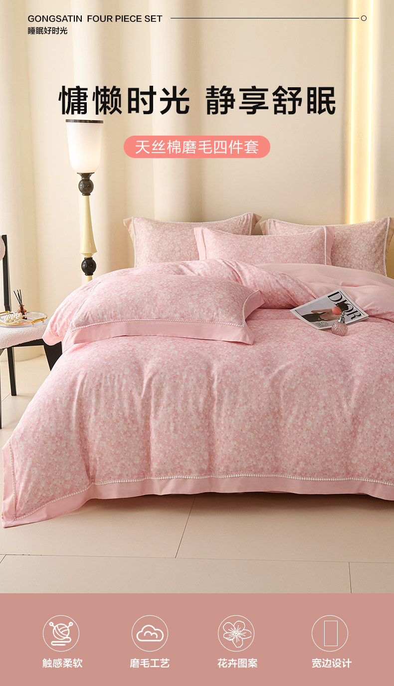 【多样屋专柜】多样屋花语/粉-天丝棉磨毛四件套全棉保暖/200*230cm