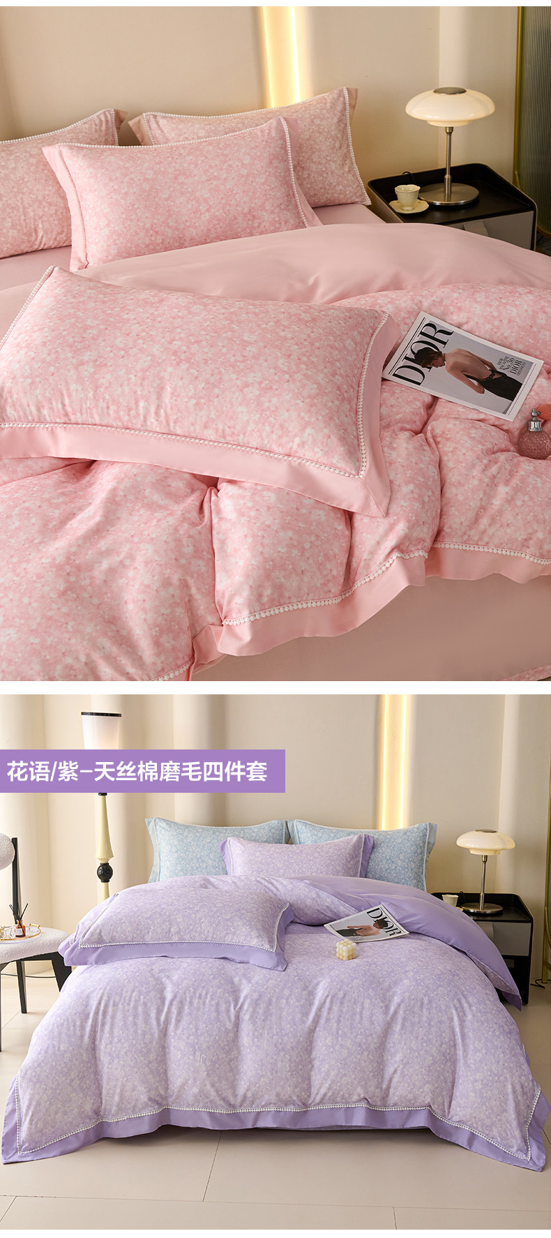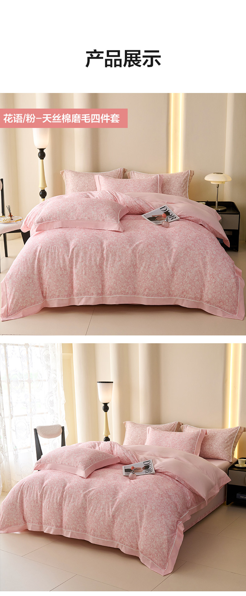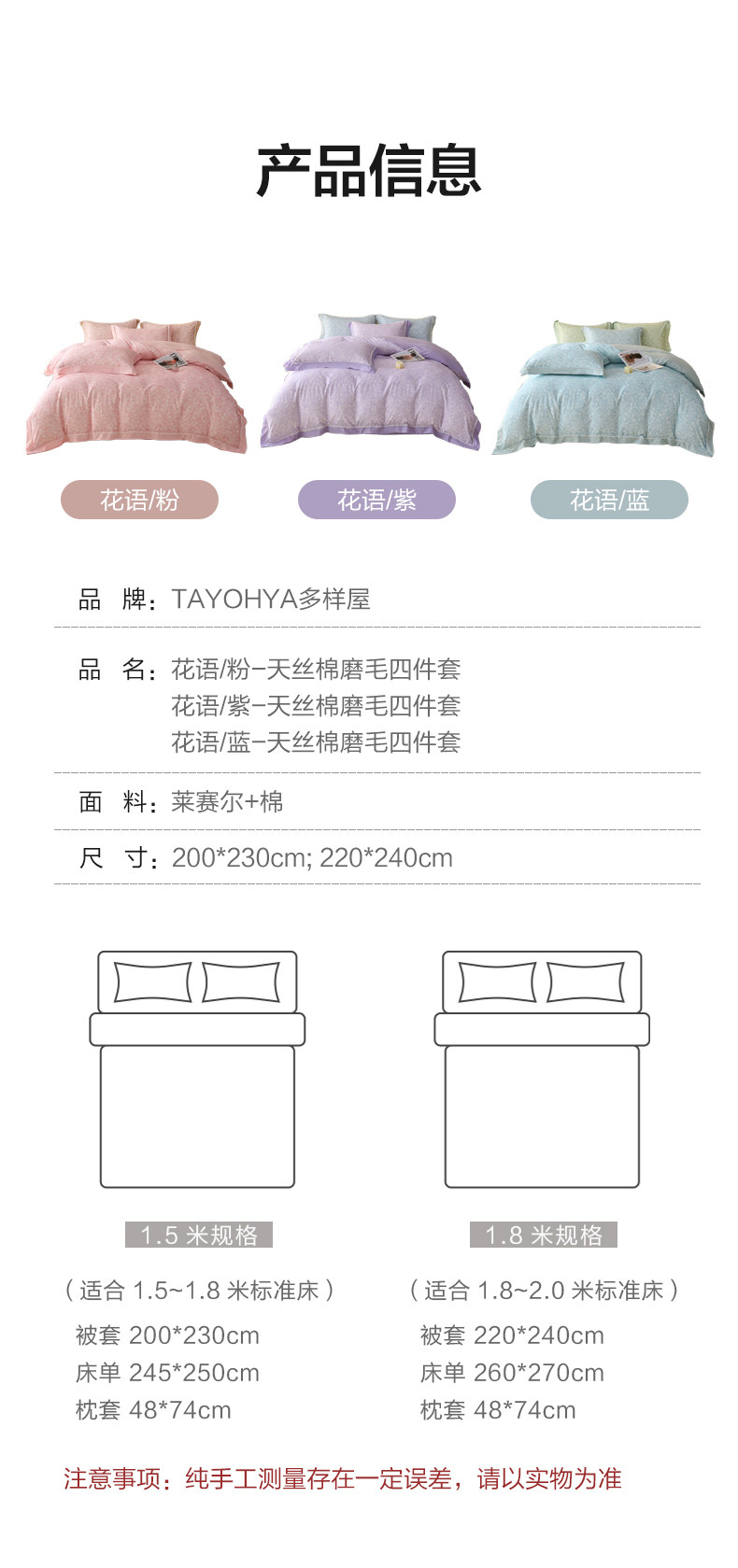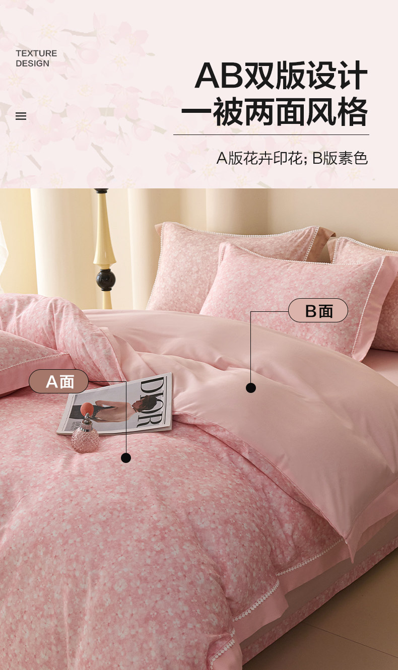 【多样屋专柜】多样屋花语/粉-天丝棉磨毛四件套全棉保暖/200*230cm