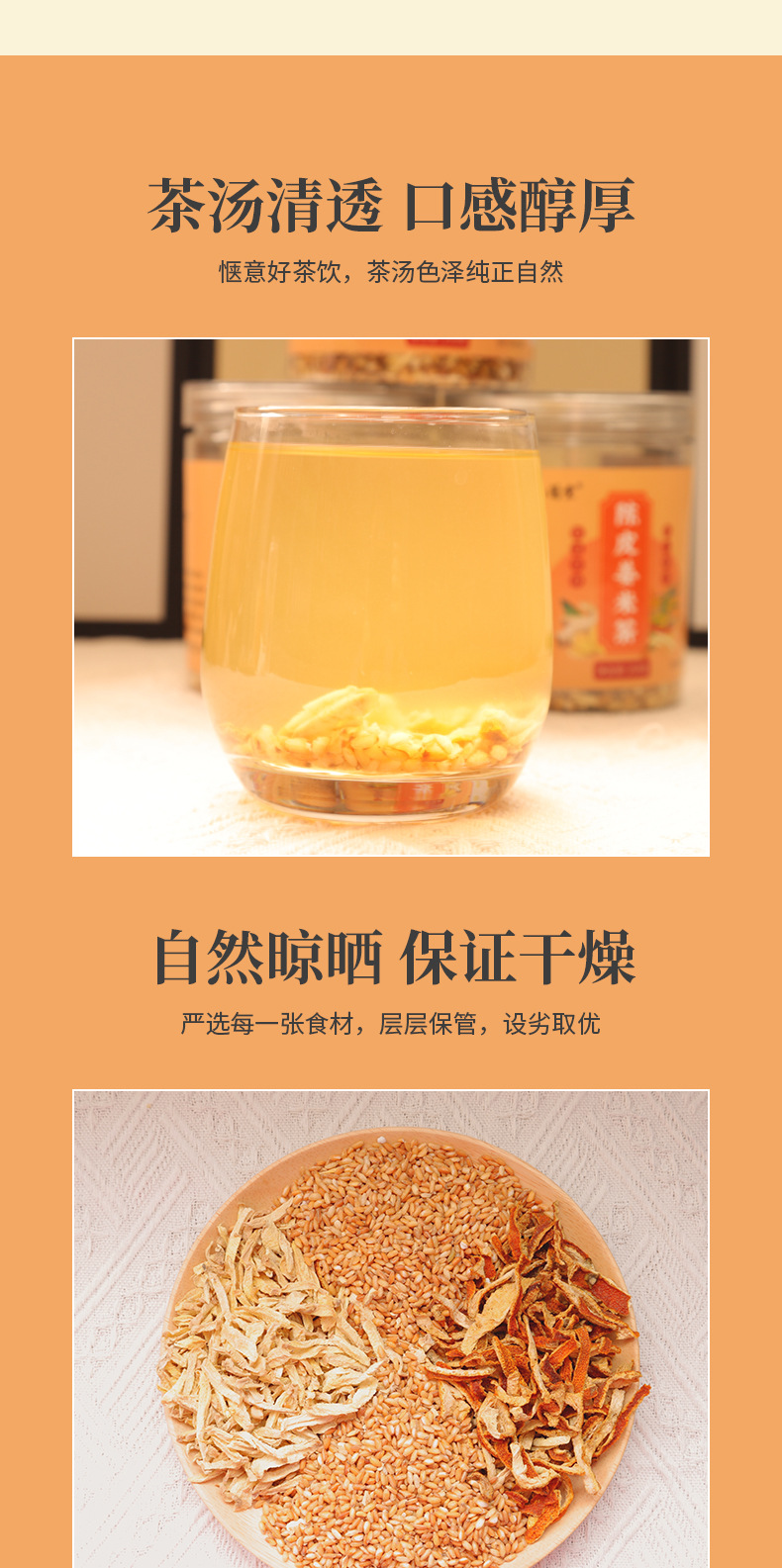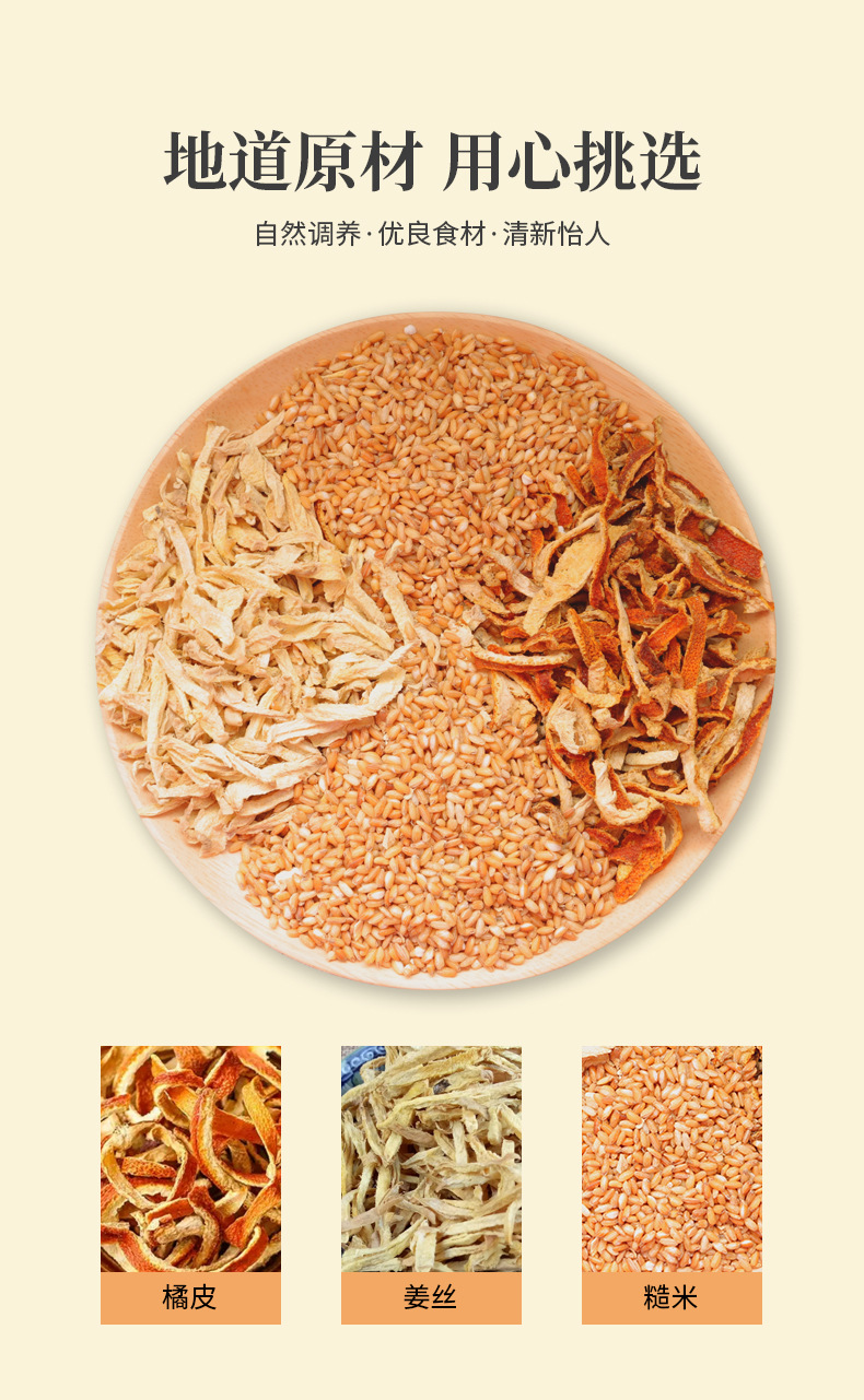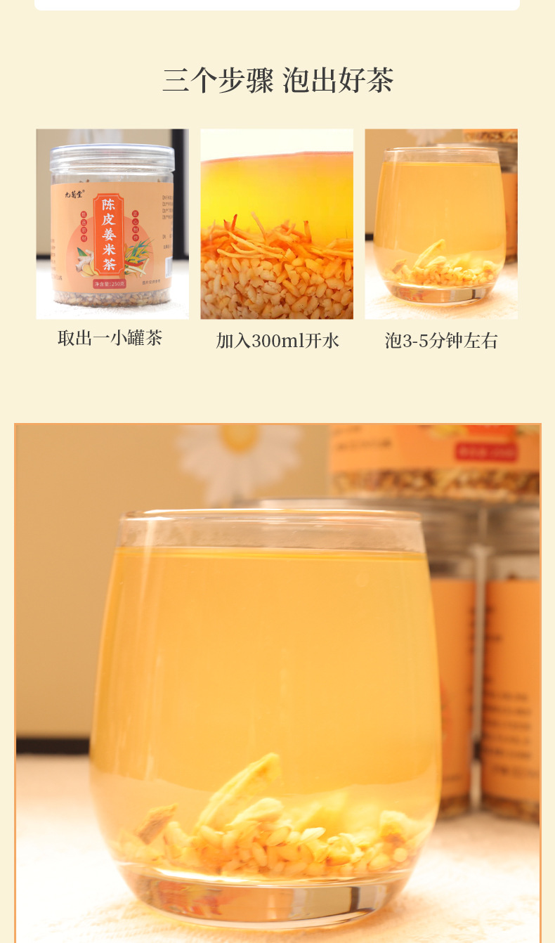健五位陈皮姜米茶配料简单,只有陈皮,姜,米