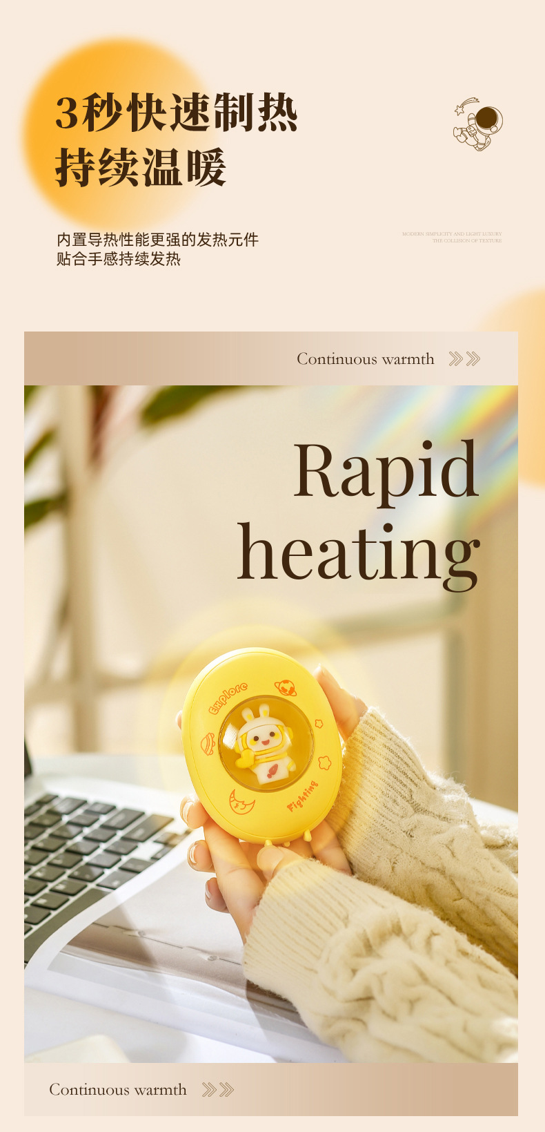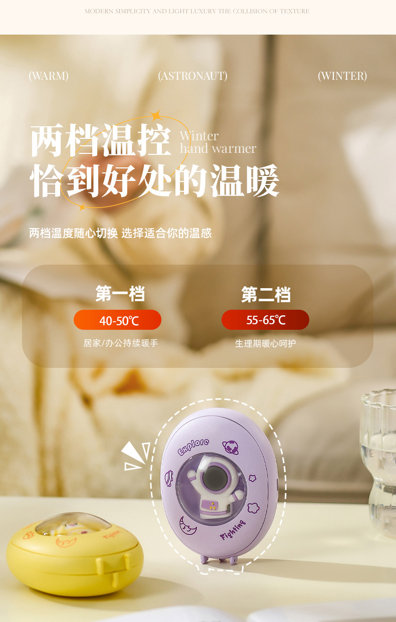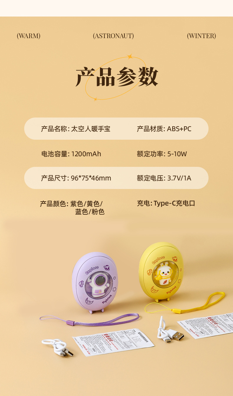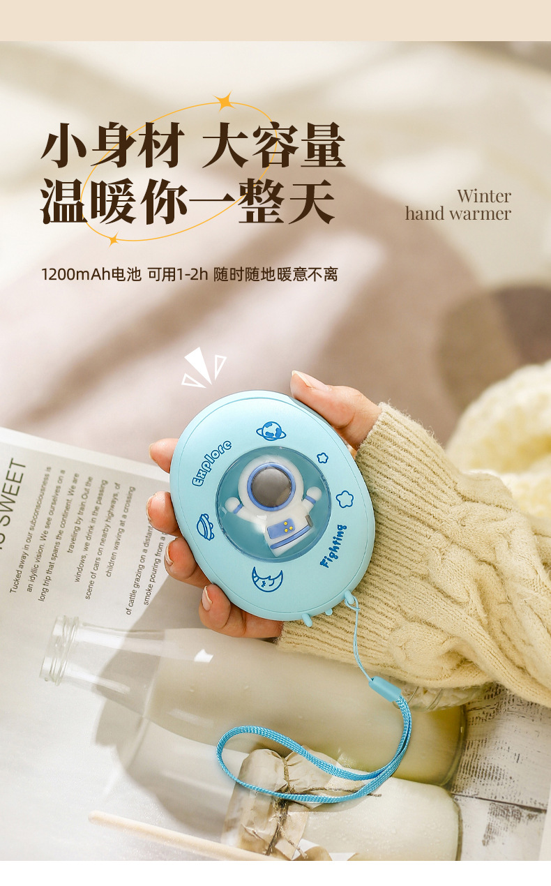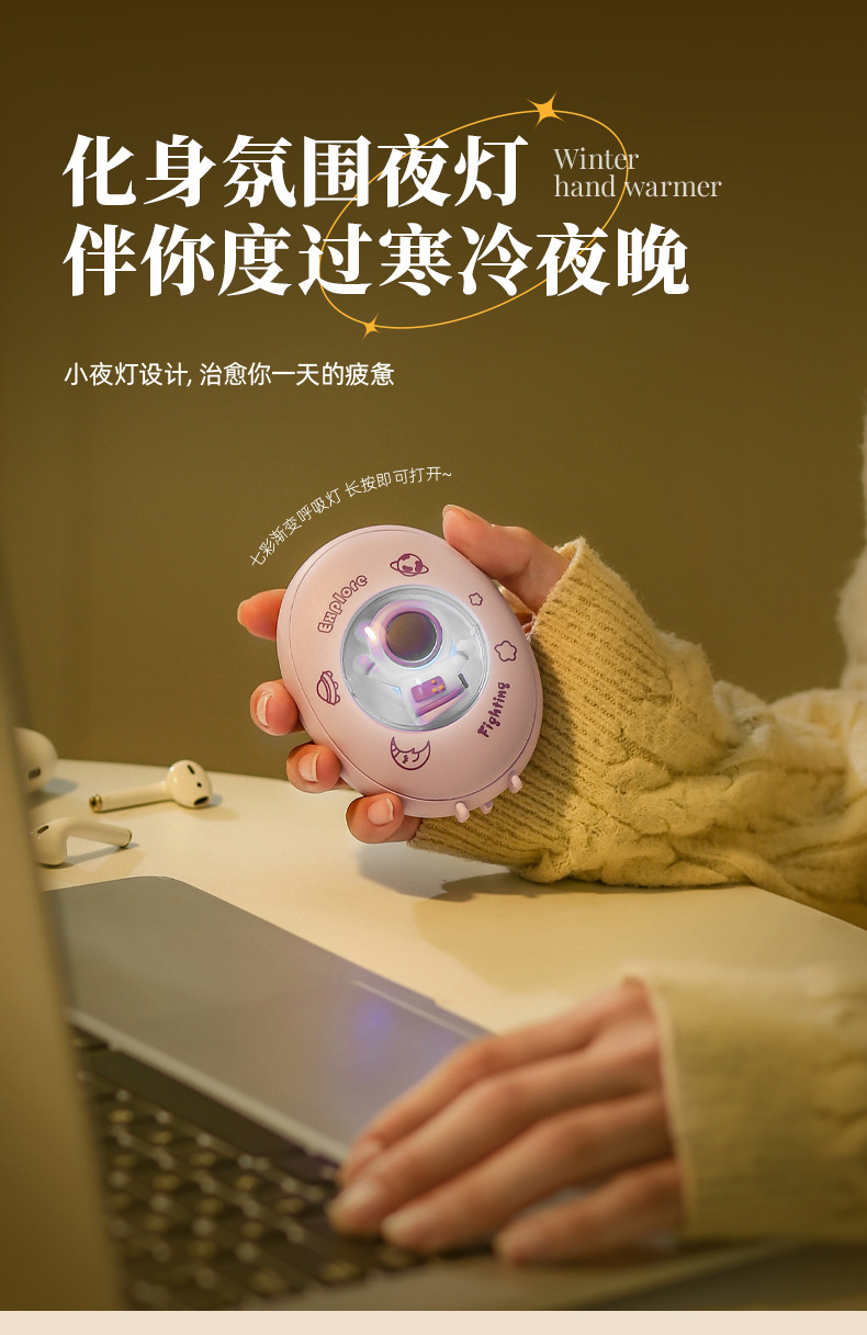 【暖暖的!!!很贴心!】寒冷冬夜,暖手宝伴身边。原创卡通萌宠设计,化身宇航员引领时尚潮流。恒温发热,两档温控恰到好处。姨妈期暖肚,化身小暖男。不仅暖手,还是氛围夜灯。冬日必备,热销畅销爆款!